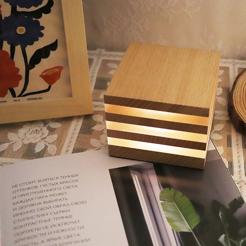 Ins Nordic Girl Heart Shooting Props Wooden Rechargeable LED Night Light