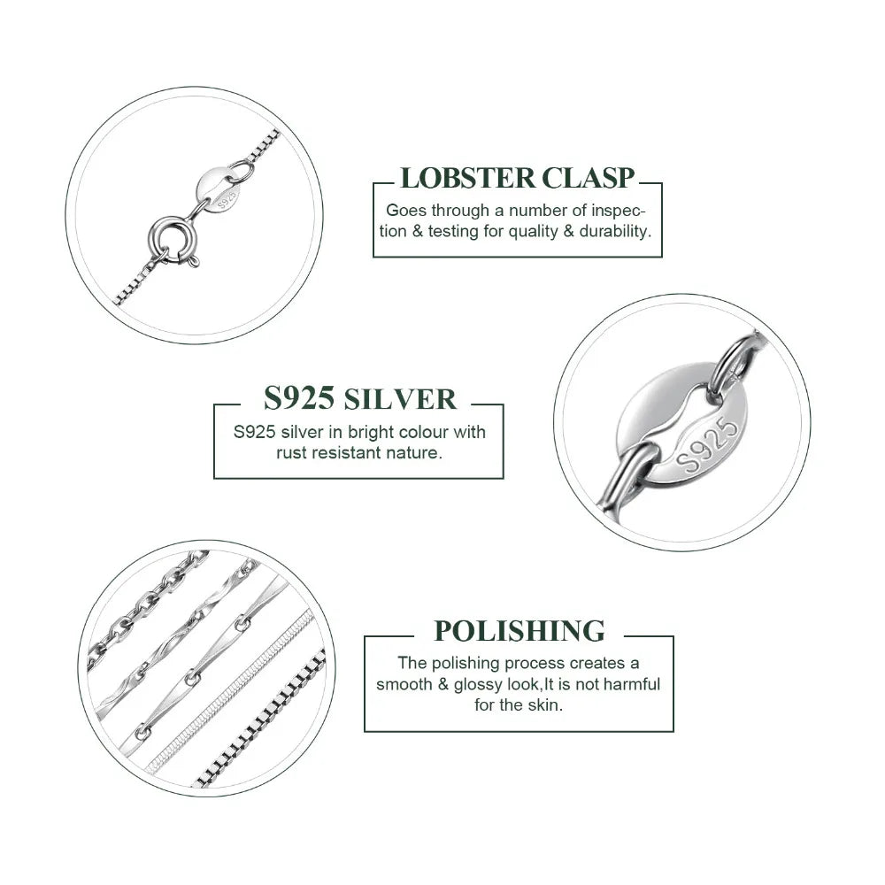 JewelryPalace Genuine 100% 925 Sterling Silver Necklace Ingot Twisted Trace Belcher Snake Bar Singapore Box Chain Necklace Women