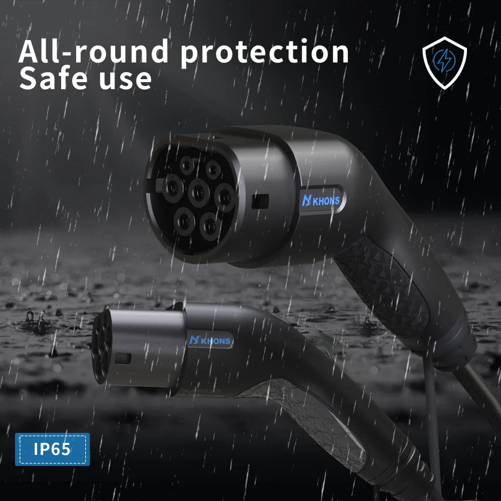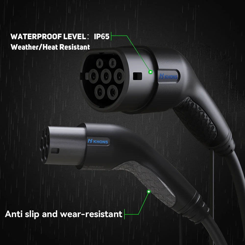 Khons Type2 To Type2 Ev Charging Cable 3Phase 32A Female To Male Plug 5M Cable 22kw IEC62196-2 EVES Charging Stations