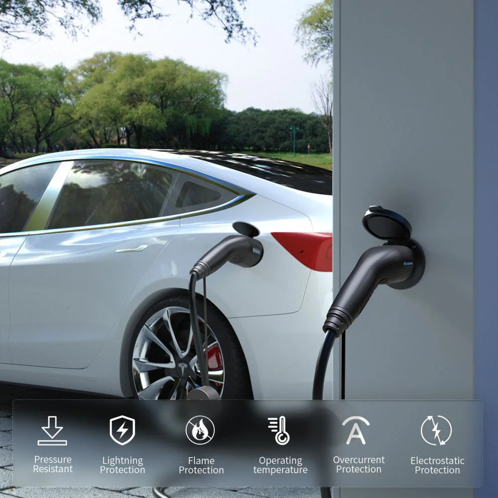 [High safety] :High quality - high-strength ABS material with better quality and longer service life; IP65 waterproof is safer during charging. The cable is made of high-quality pure copper, with good conductivity and faster transmission speed. Internal cables are clean, avoiding potential safety hazards caused by cable interference. Our charging cables have protective measures such as overcurrent protection, overvoltage protection, undervoltage protection, leakage protection, overheating protection, and IP65 waterproof, which can safely charge your car and avoid fire.