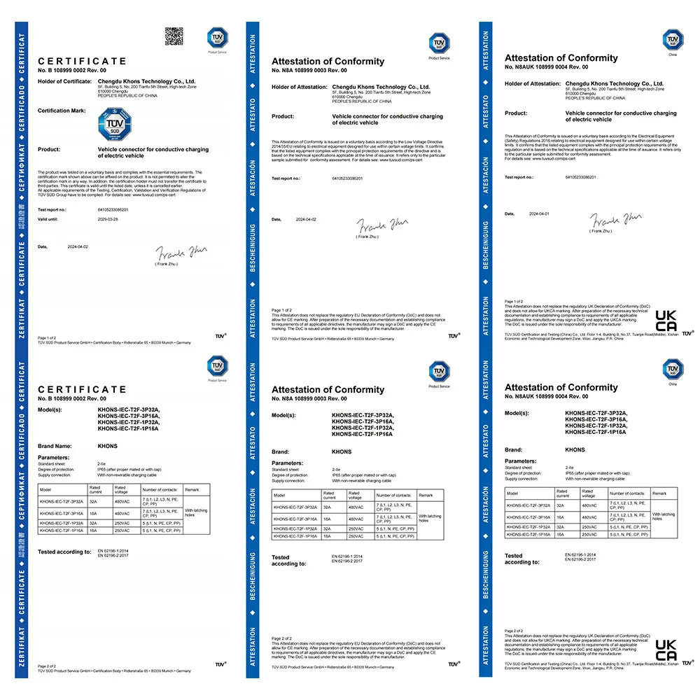 [High compatibility]:The EV charging cable adopts the standard IEC 62196-2 charging protocol, and is compatible with all electric vehicles and plug-in hybrid vehicles. All our products have passed CE certification and TUV certification, with superior quality.