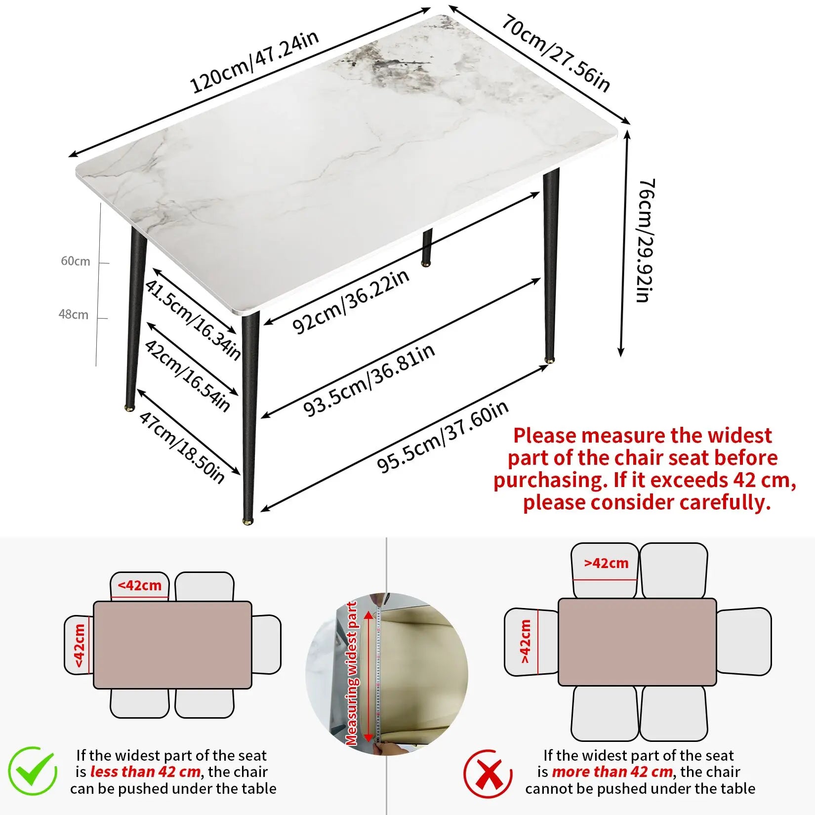 Kitchen Table Rectangle Dining Table Modern Dining Room Table with White Sintered Stone Top and Metal Legs