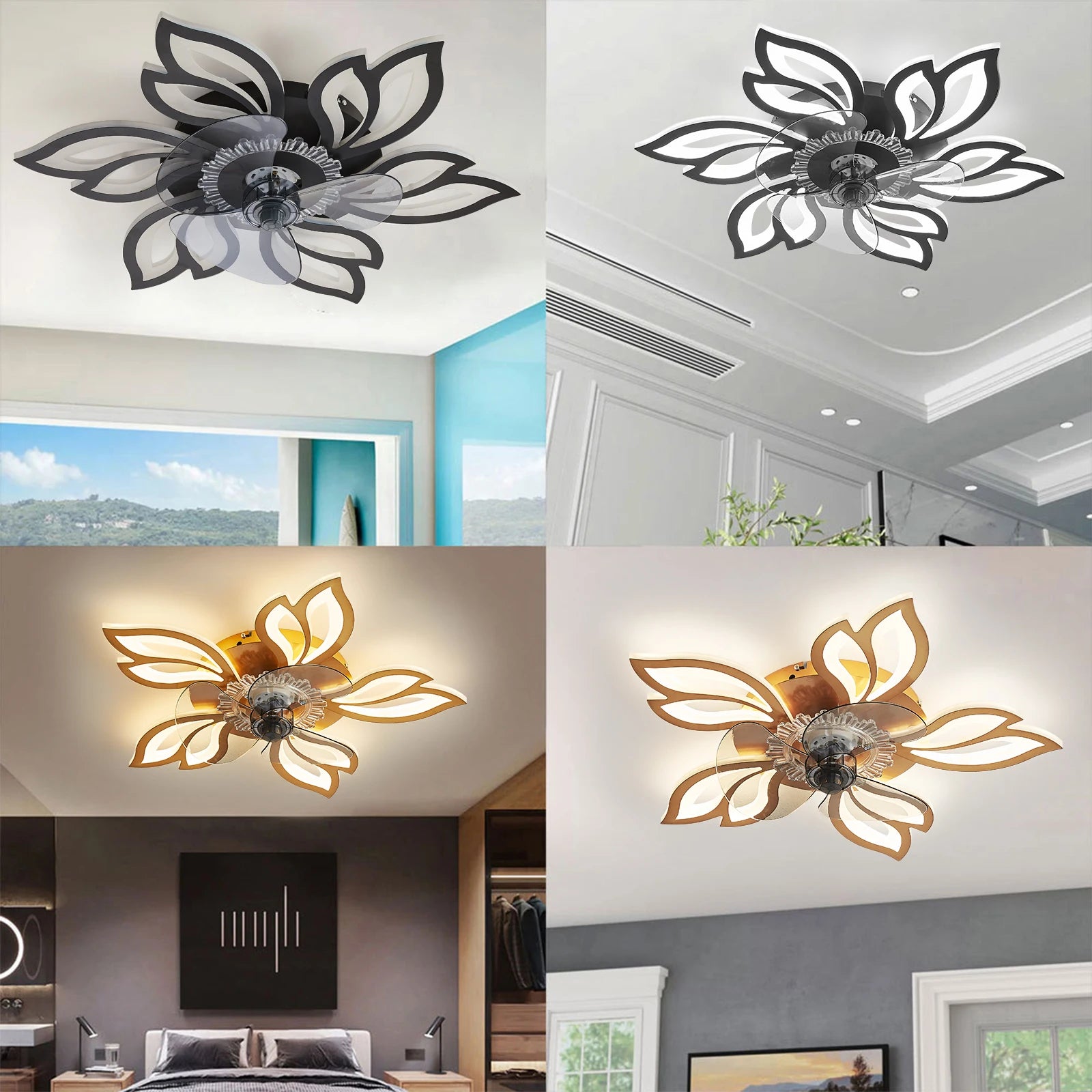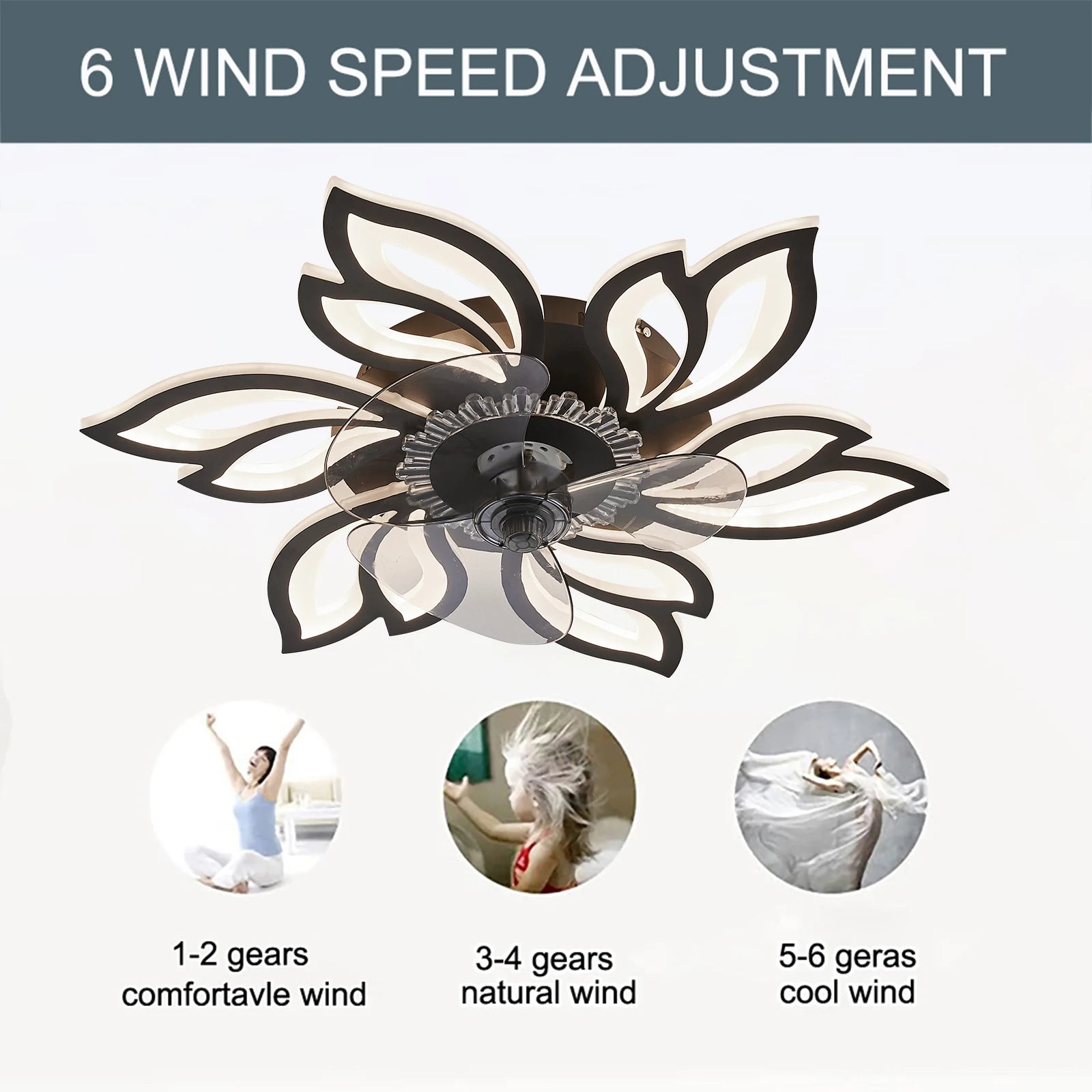 KOMORE Modern Flower Shape Ceiling Fan with Light with 3 Color temperature 6 Speeds for Office, Living Room, Bedroom