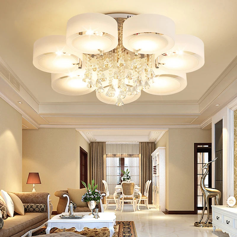 KOMORE Modern Round Acrylic LED Semi Flush Mount with Crystal Accent for Office, Living Room, Bedroom, Kitchen, Hallway, Porch