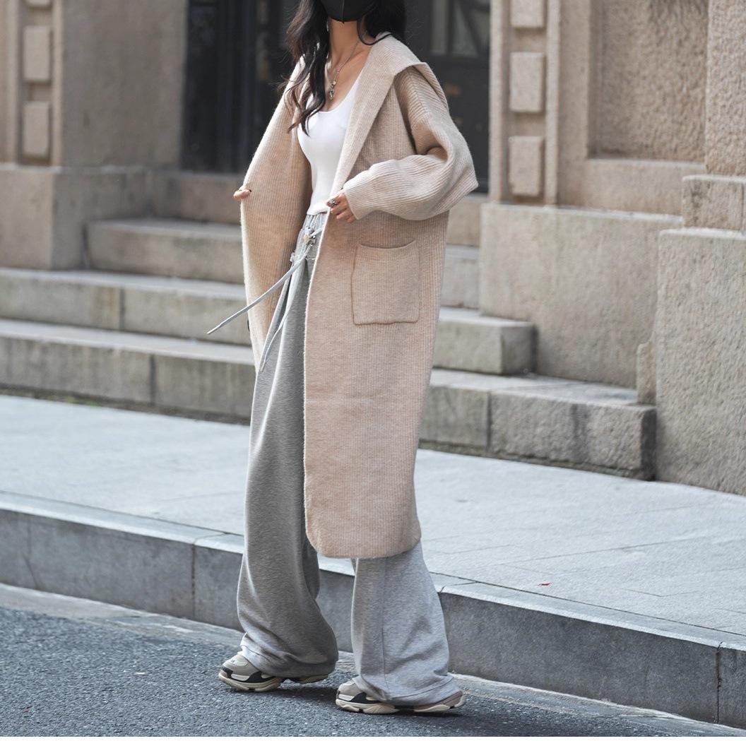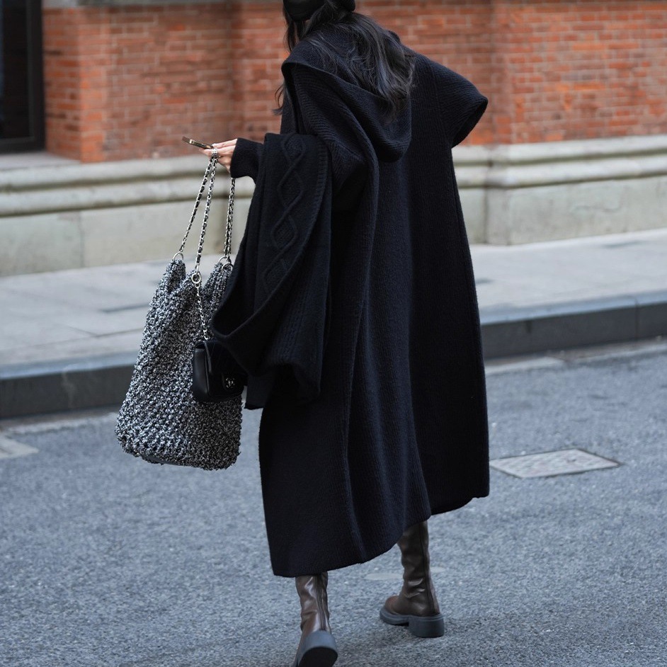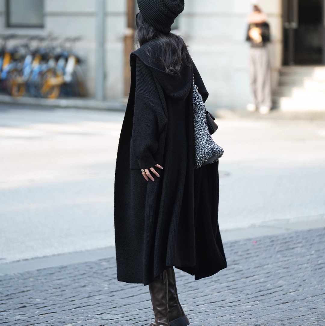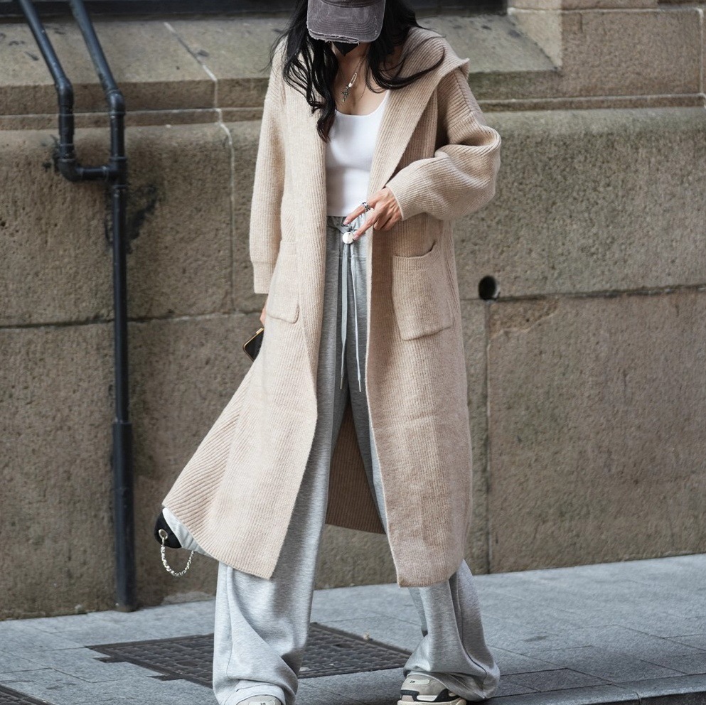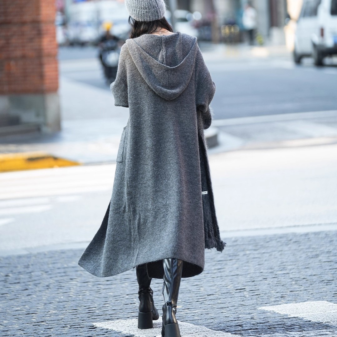 Long Knitted Cardigan Women's Sweater Hooded Trench Coat Coat