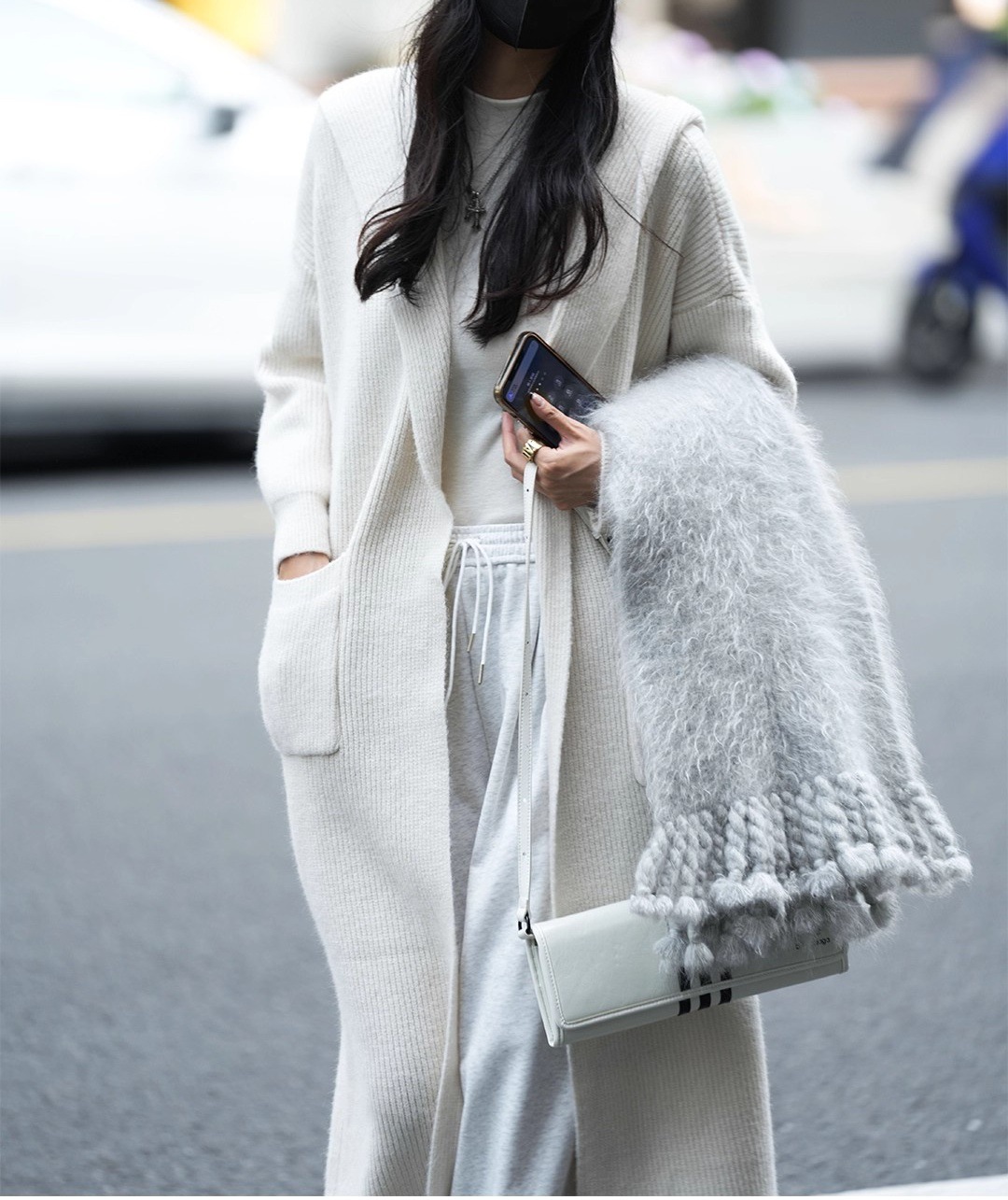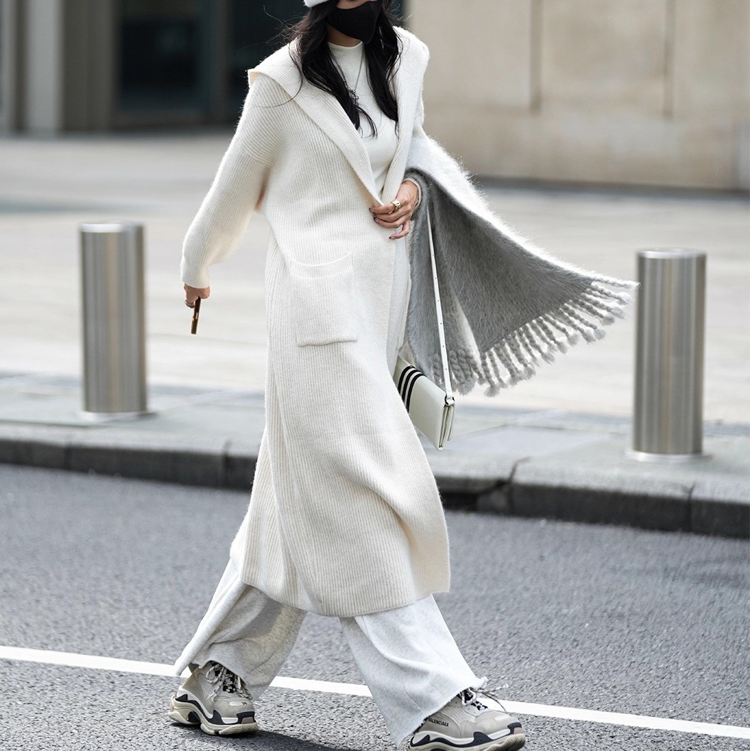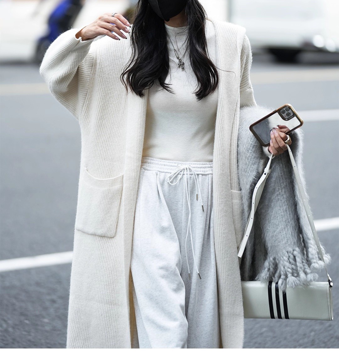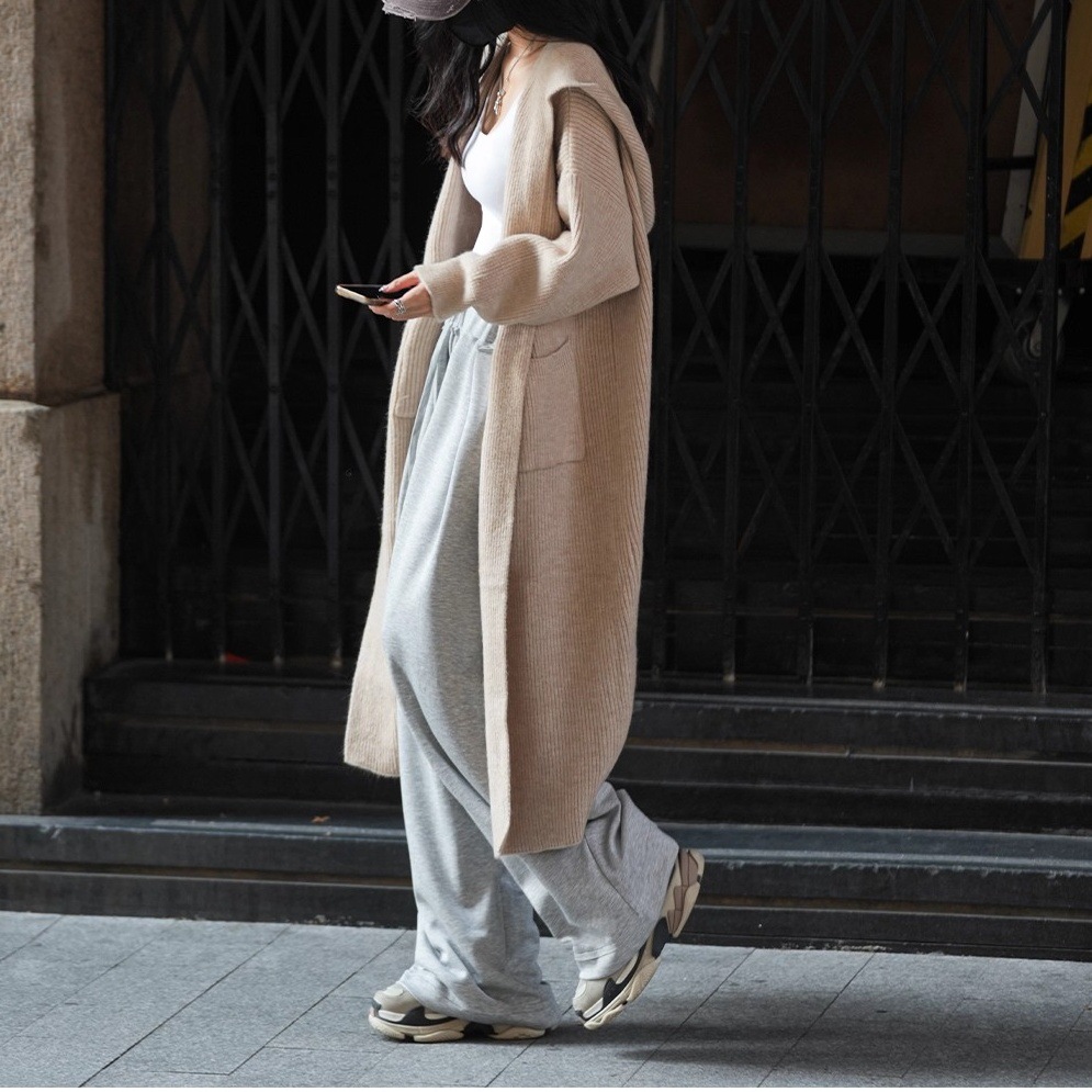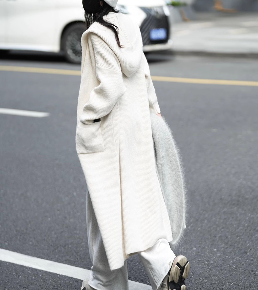 Long Knitted Cardigan Women's Sweater Hooded Trench Coat Coat