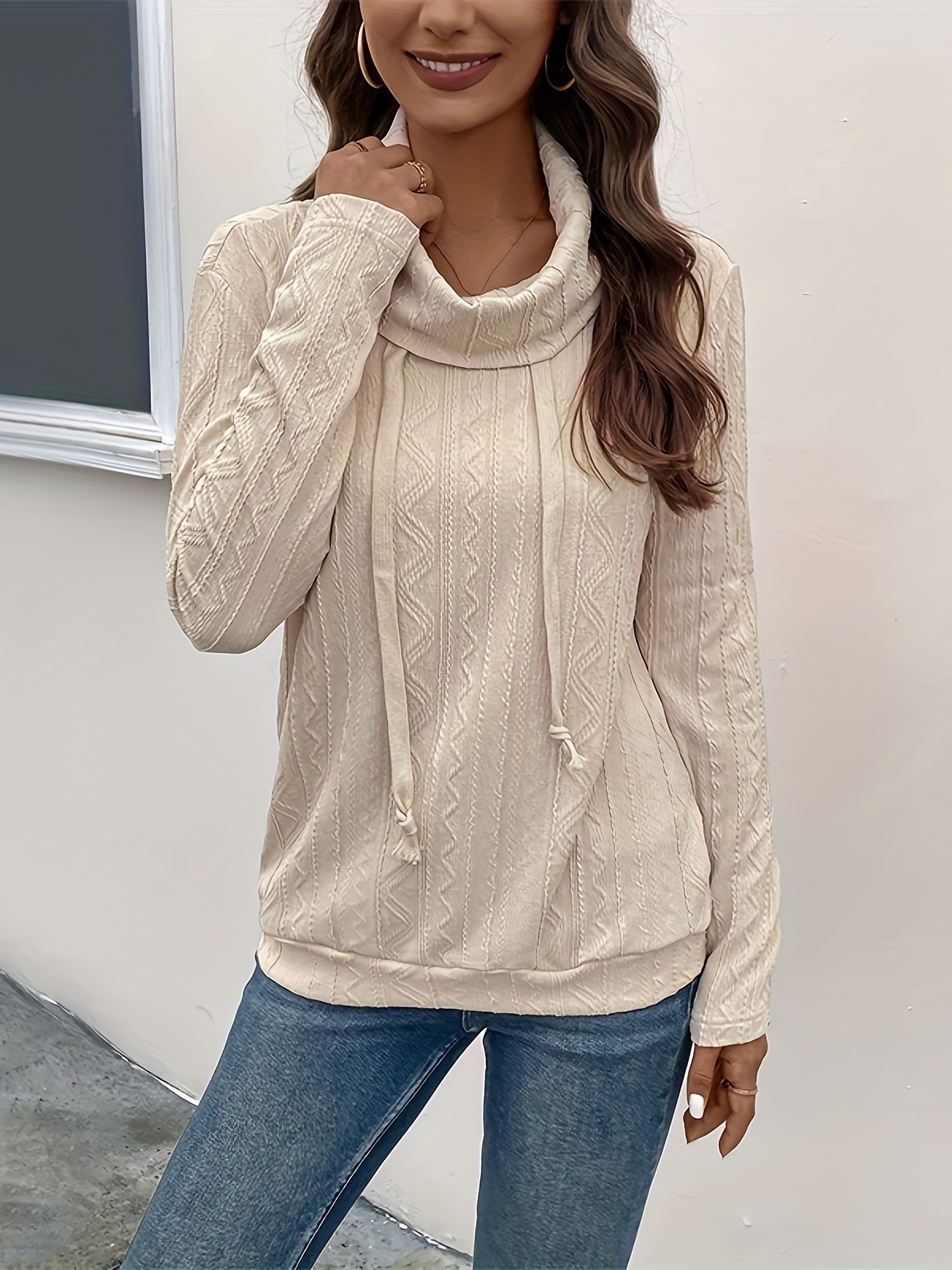 Long Sleeve Hooded Drawstring Pullover Sweater