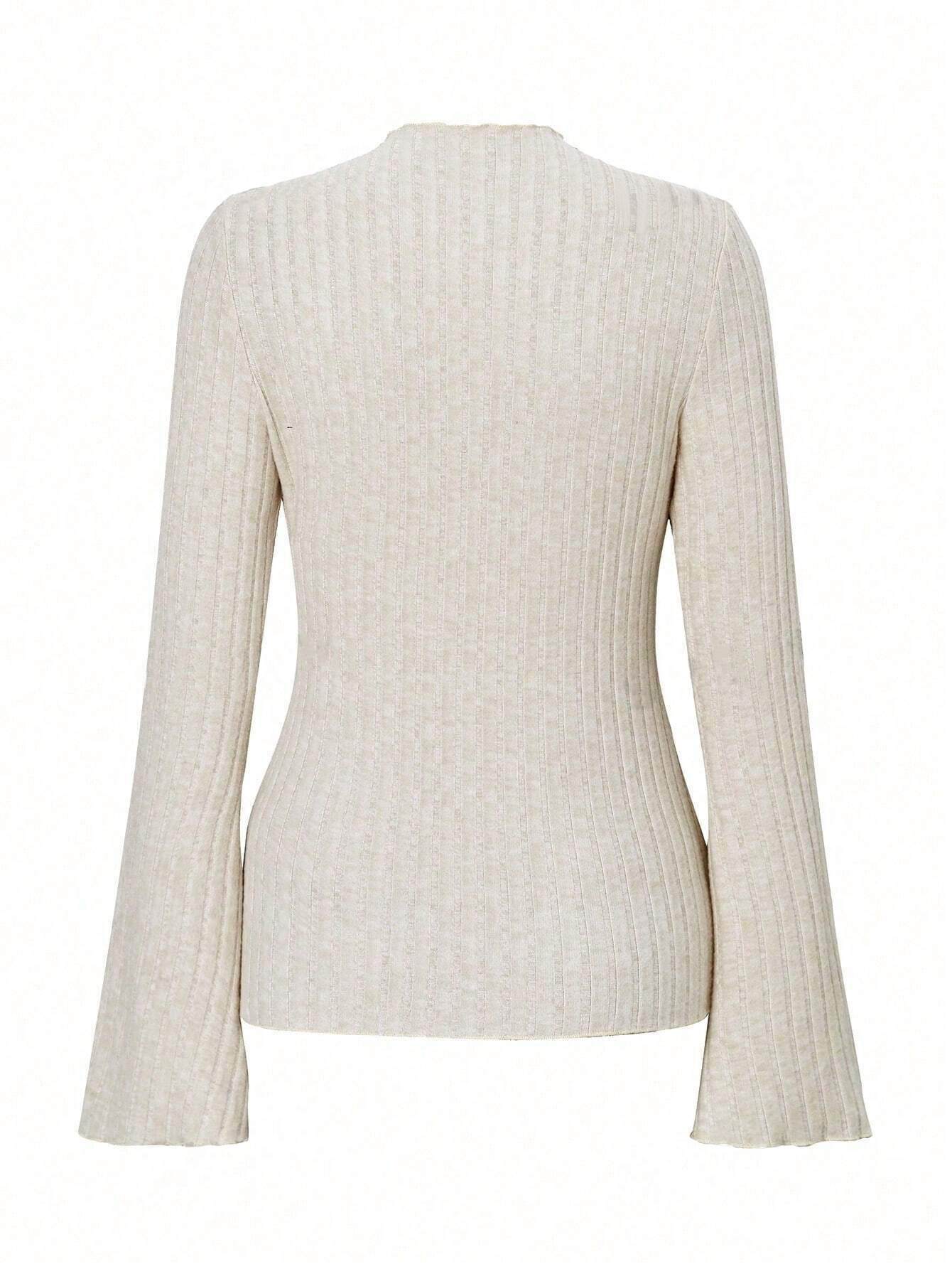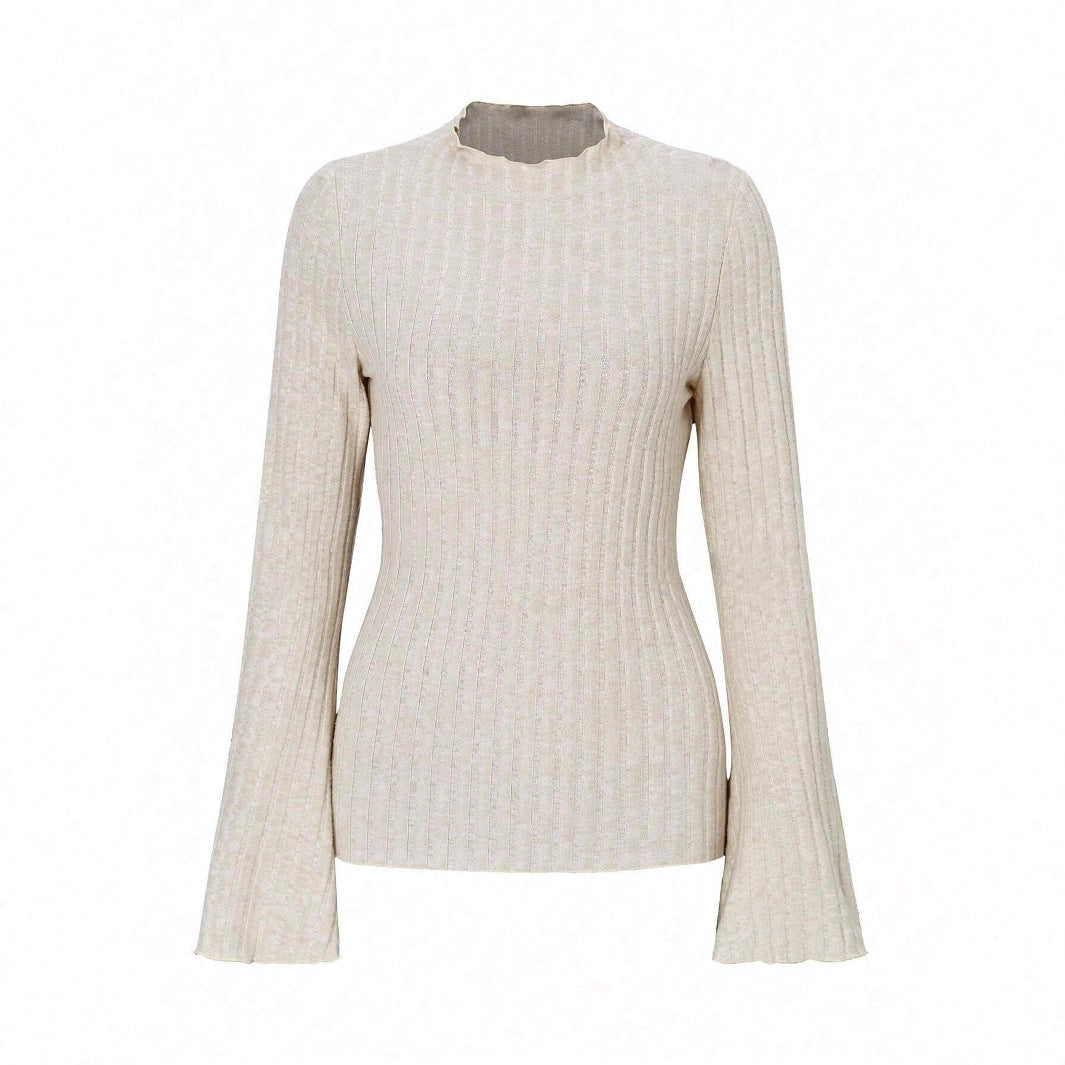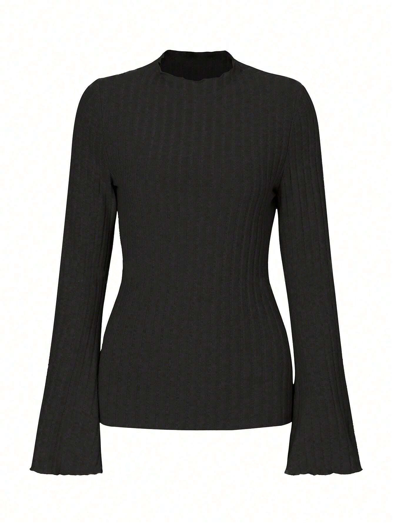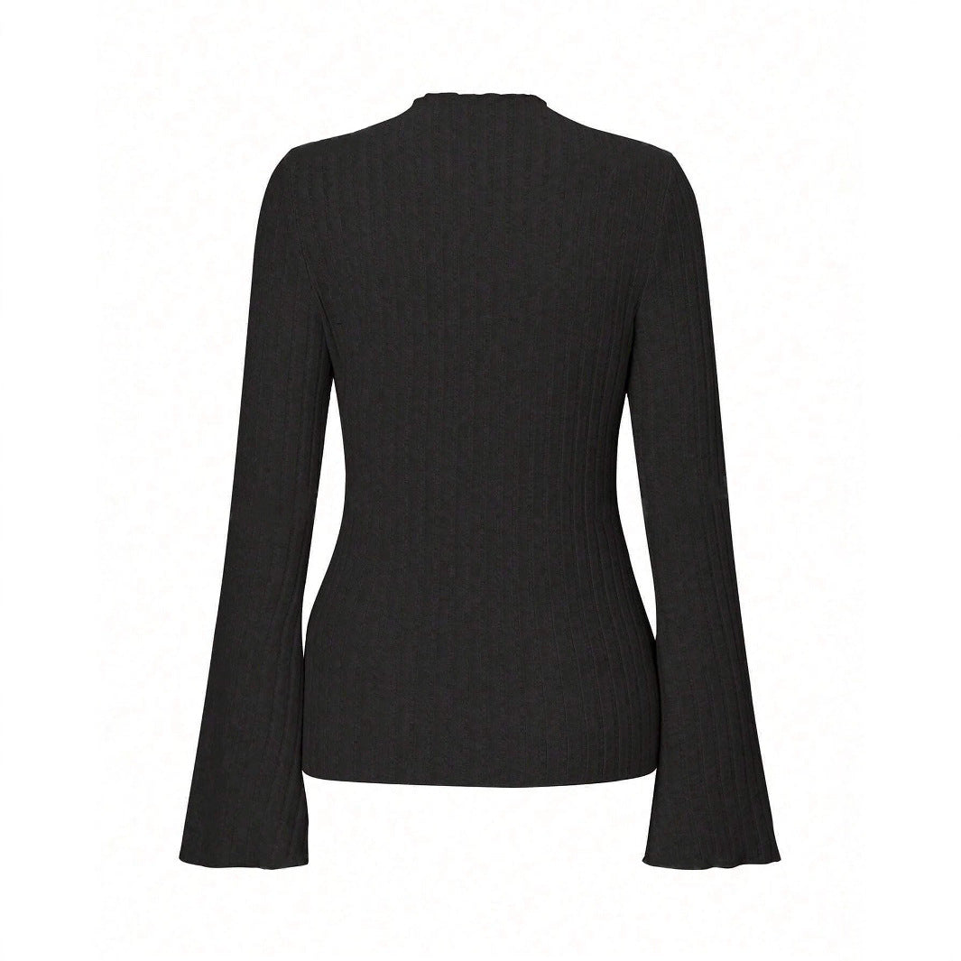 Long Sleeve Round Neck Brushed Sunken Stripe Solid Color Slim Fit Top