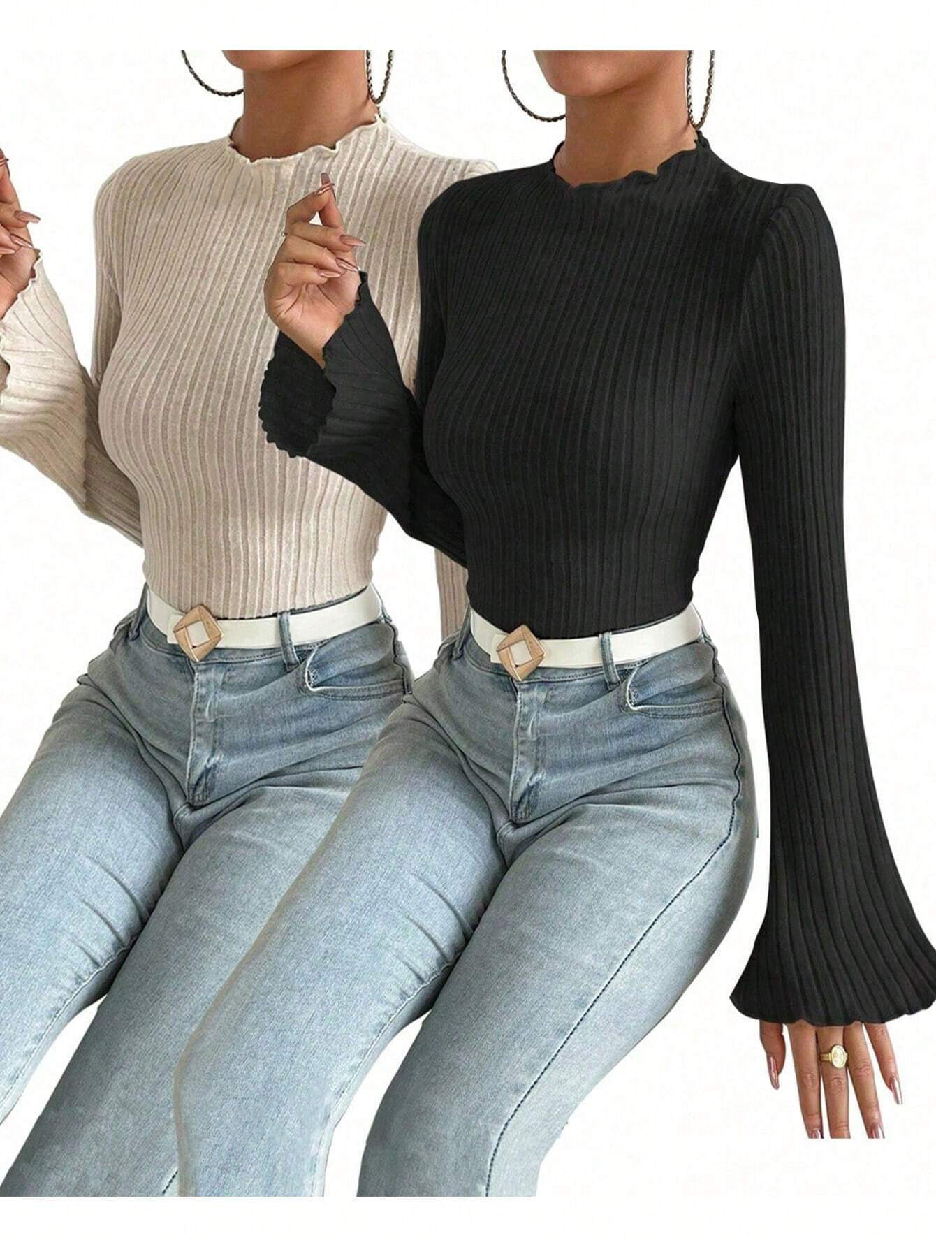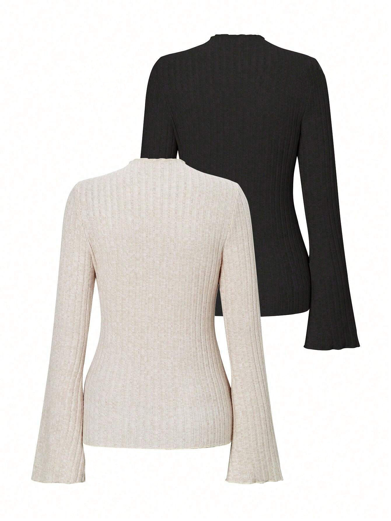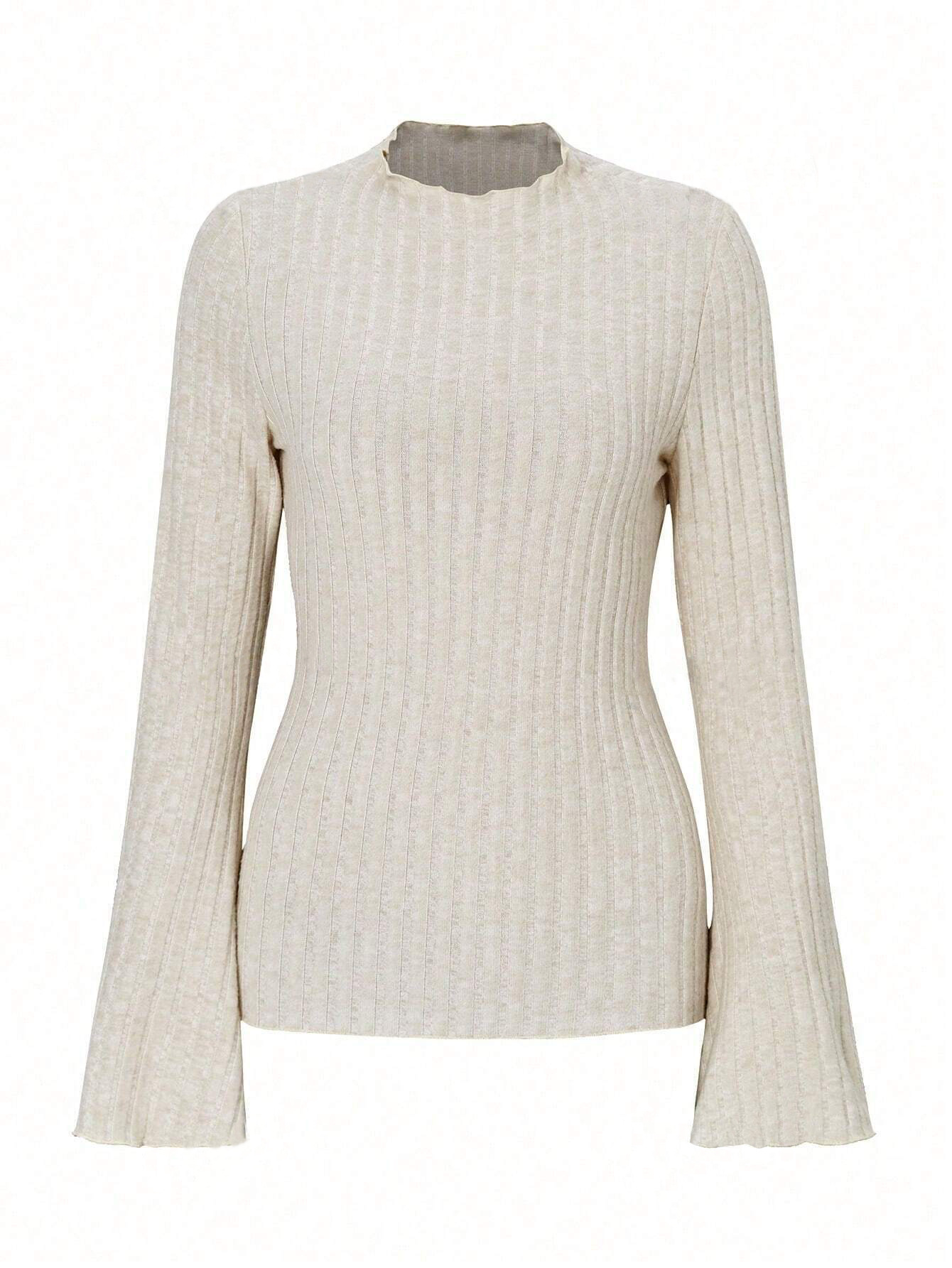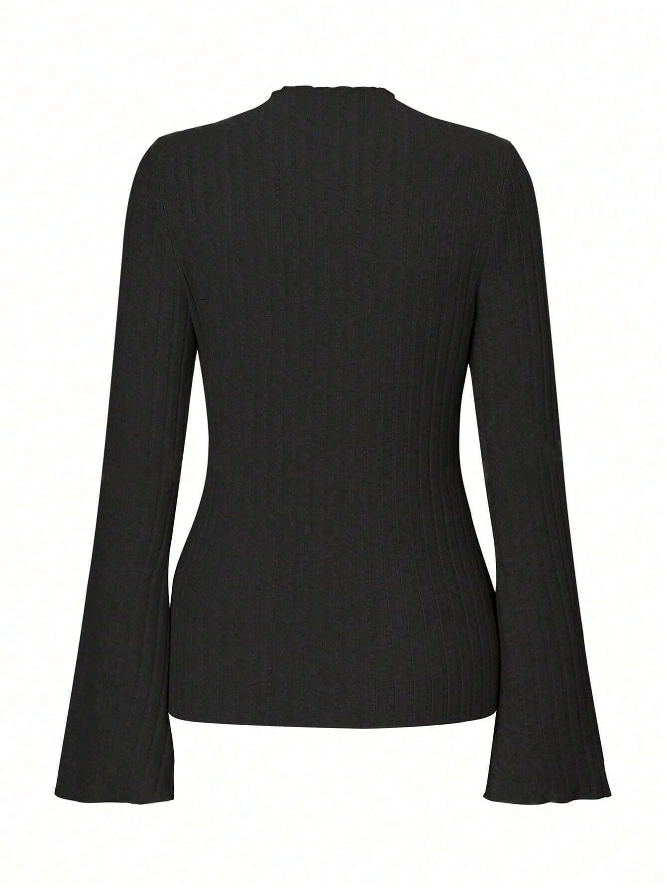 Long Sleeve Round Neck Brushed Sunken Stripe Solid Color Slim Fit Top