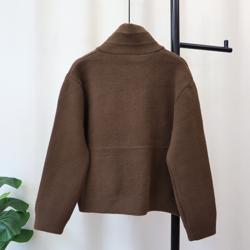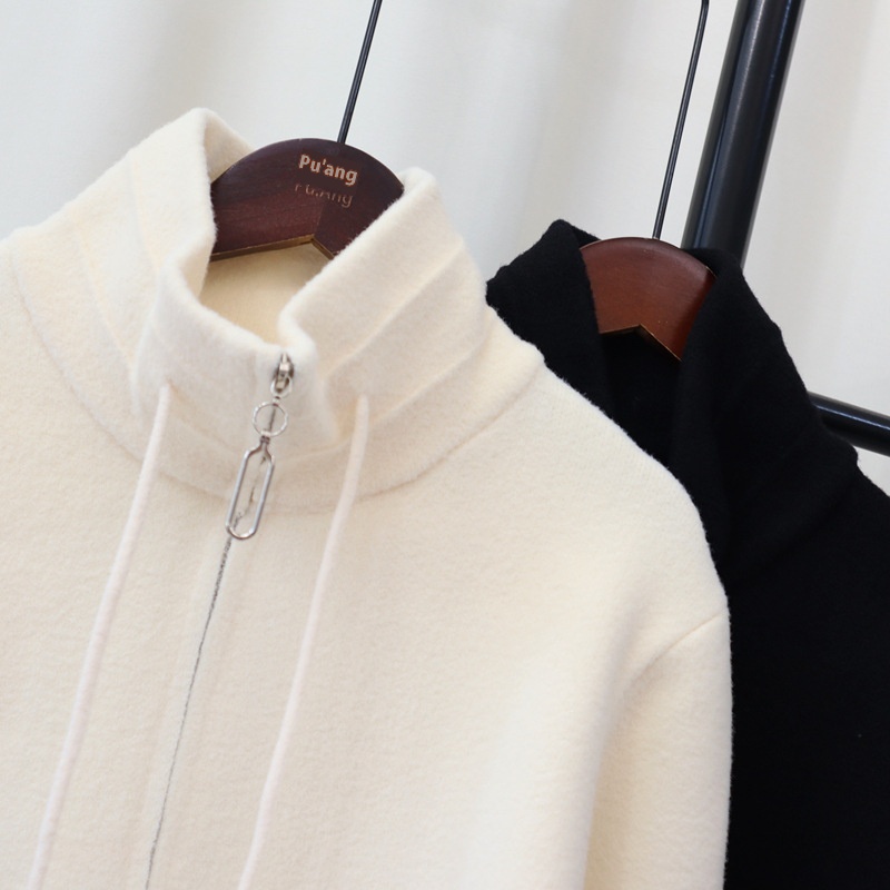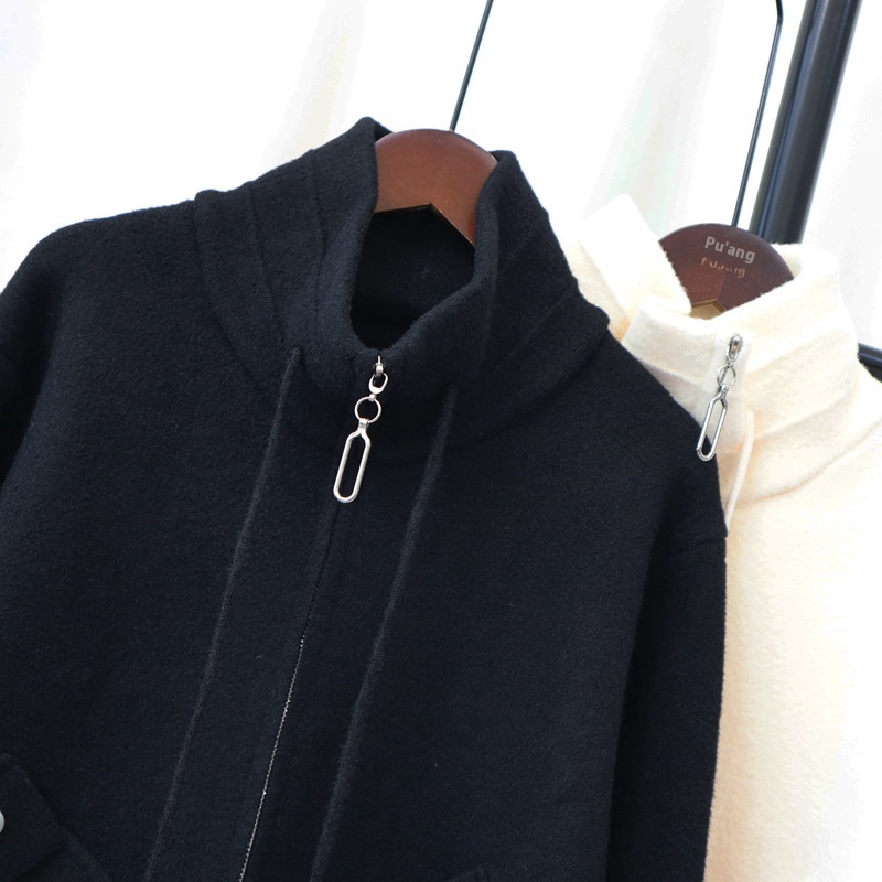 Loose Versatile Zipper Knitted Double-faced Woolen Goods Solid Color Coat For Women