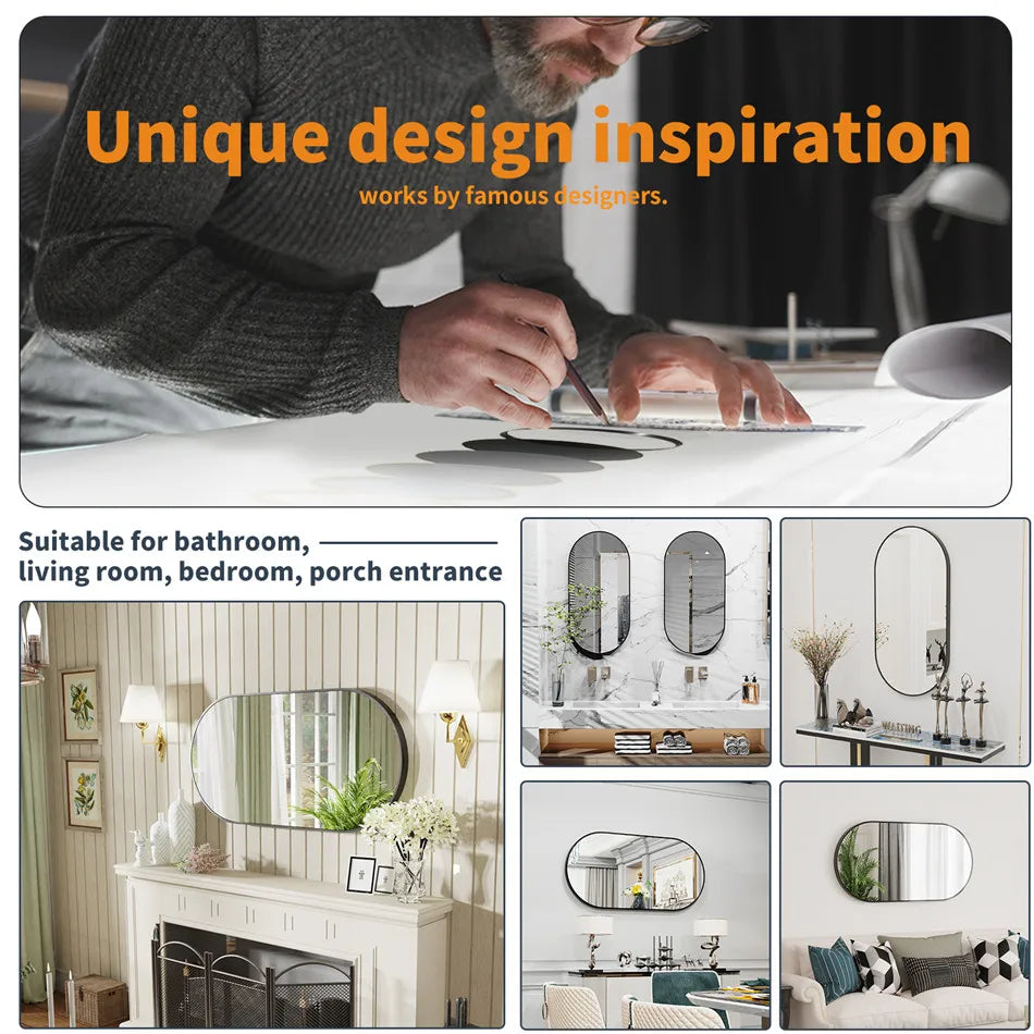 LUVODI Modern Black Metal Framed Dressing Mirror Oval Bathroom Vanity Mirror for Wall