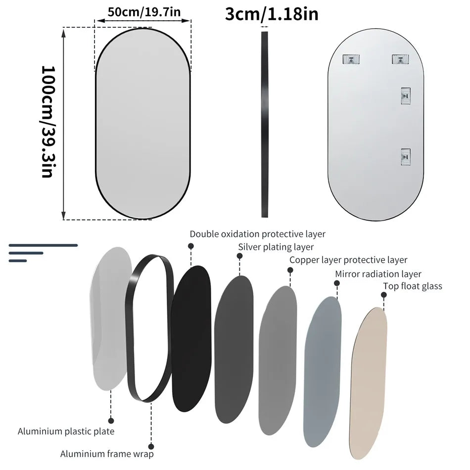 Glass Material: 5mm HD Eco-friendly Silver Mirror