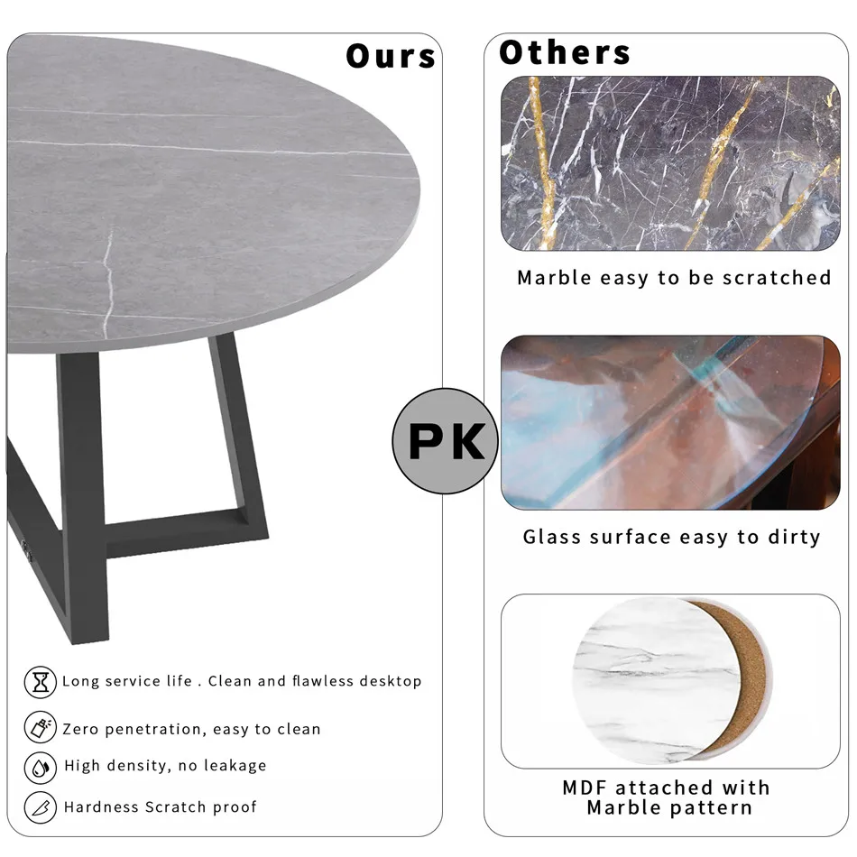ćAffordable Luxury TablećCompared to the marble tables, the tabletop made by new-style but sturdy sintered stone that feature natural texture, more unique pattern than marbles, with higher hardness and toughness than glass, resistant to scratch, wear, high temperature