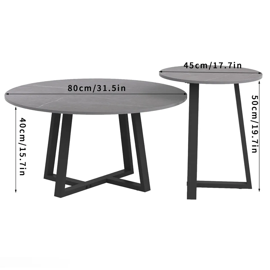 LUVODI Modern Set of 2 Living Room Round Center Table Furniture Marble Sofa Side Nesting Coffee Table with Metal Legs