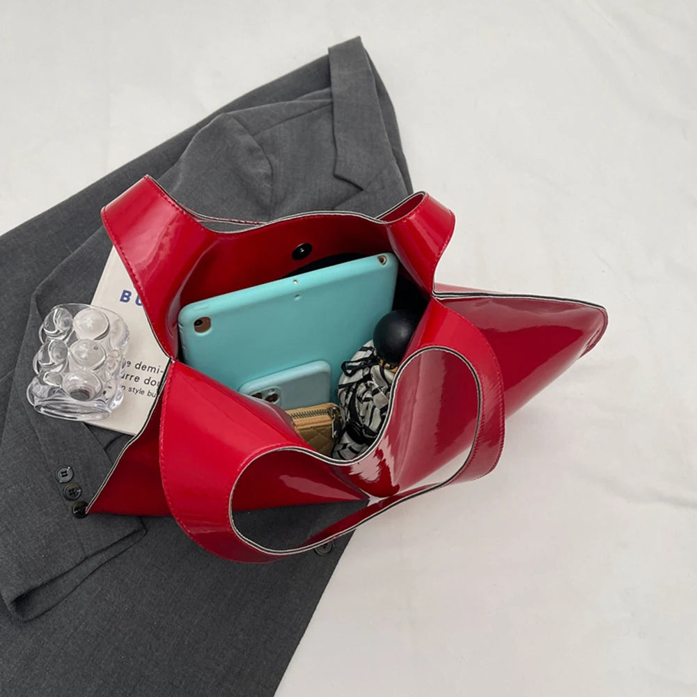Luxury Design Heart Ladies Handbag PU Leather Underarm Bag Solid Color Trendy Tote Bag Summer Top Hand Bag for Women and Girls