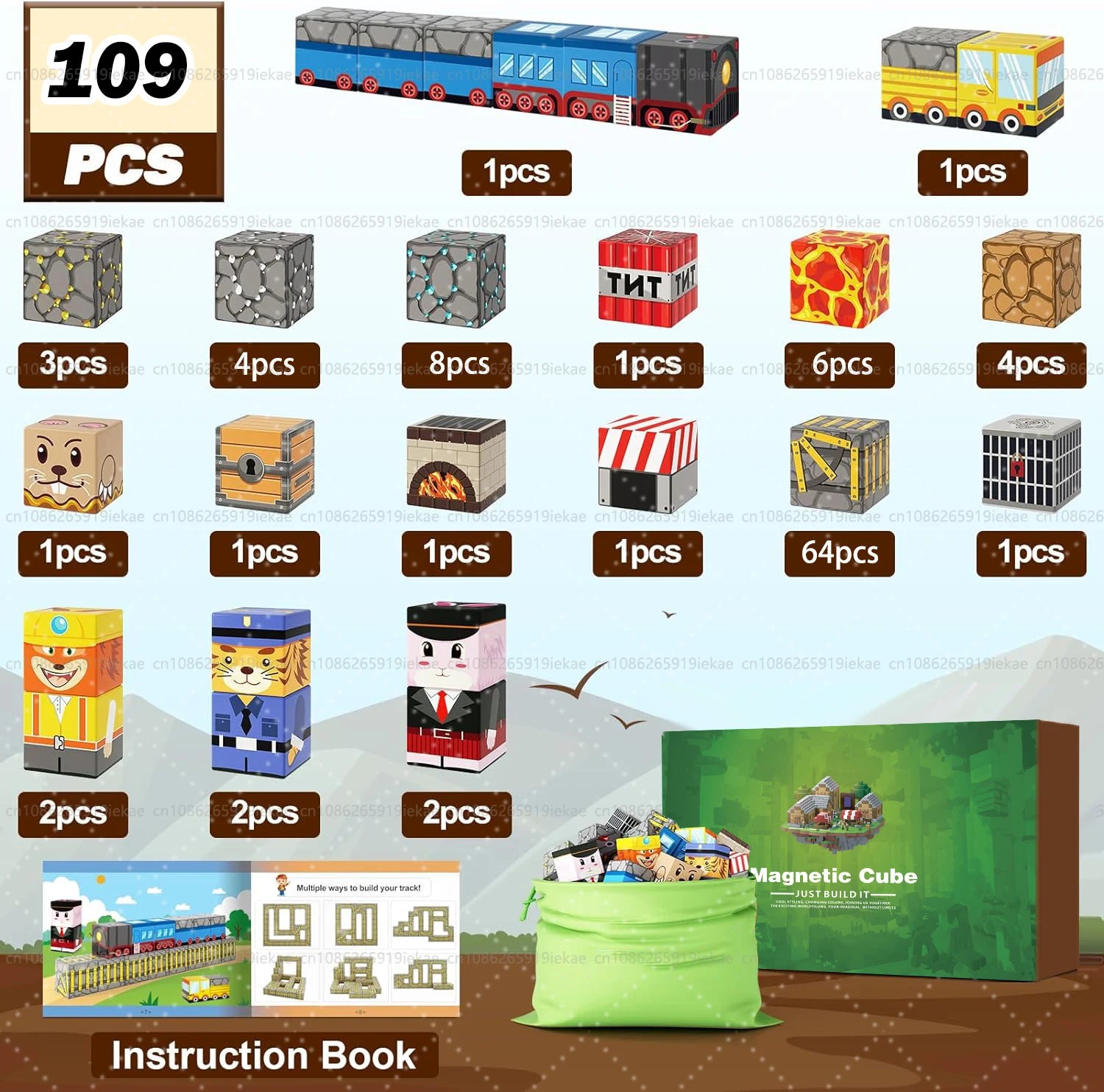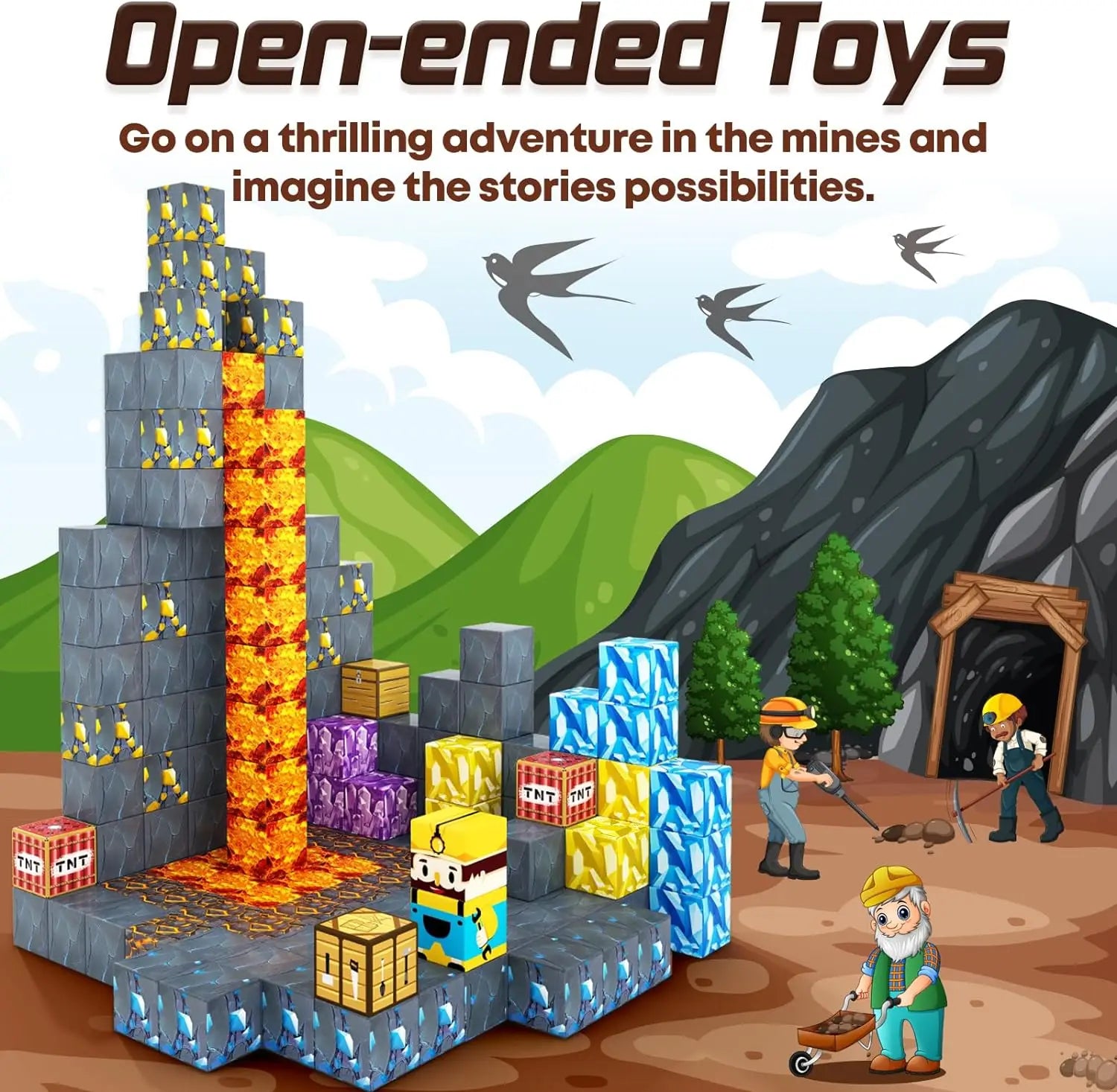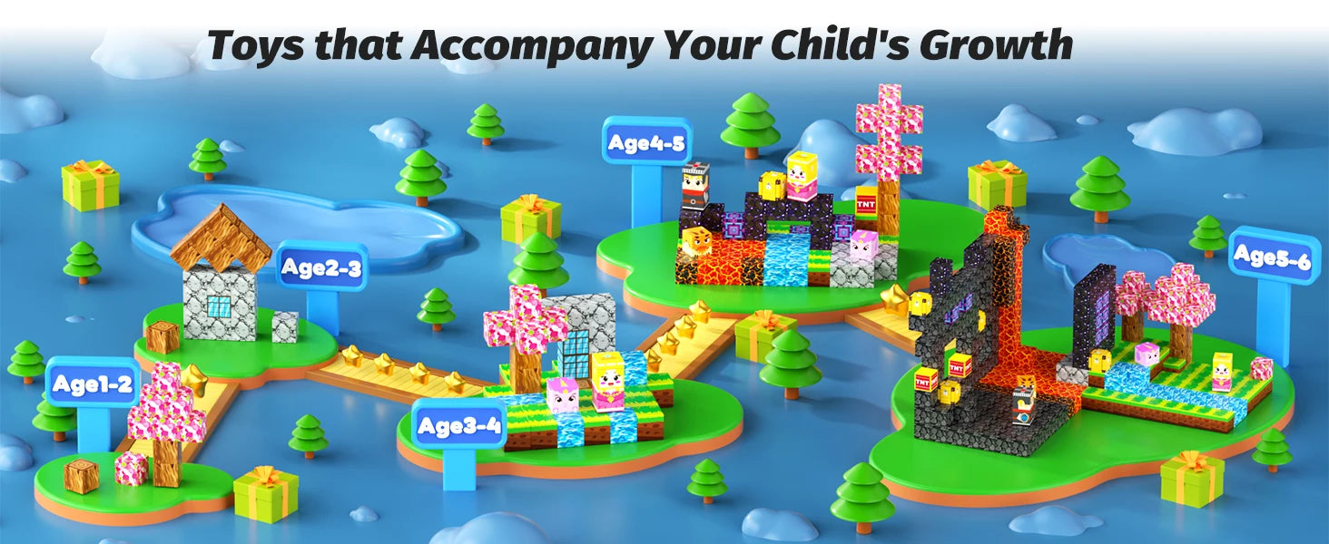 Magnetic Building Blocks Mine World Magnet Cube Set STEM Montessori Sensory Toy for Kids Boys Girls Ages 3+ DIY Model Children