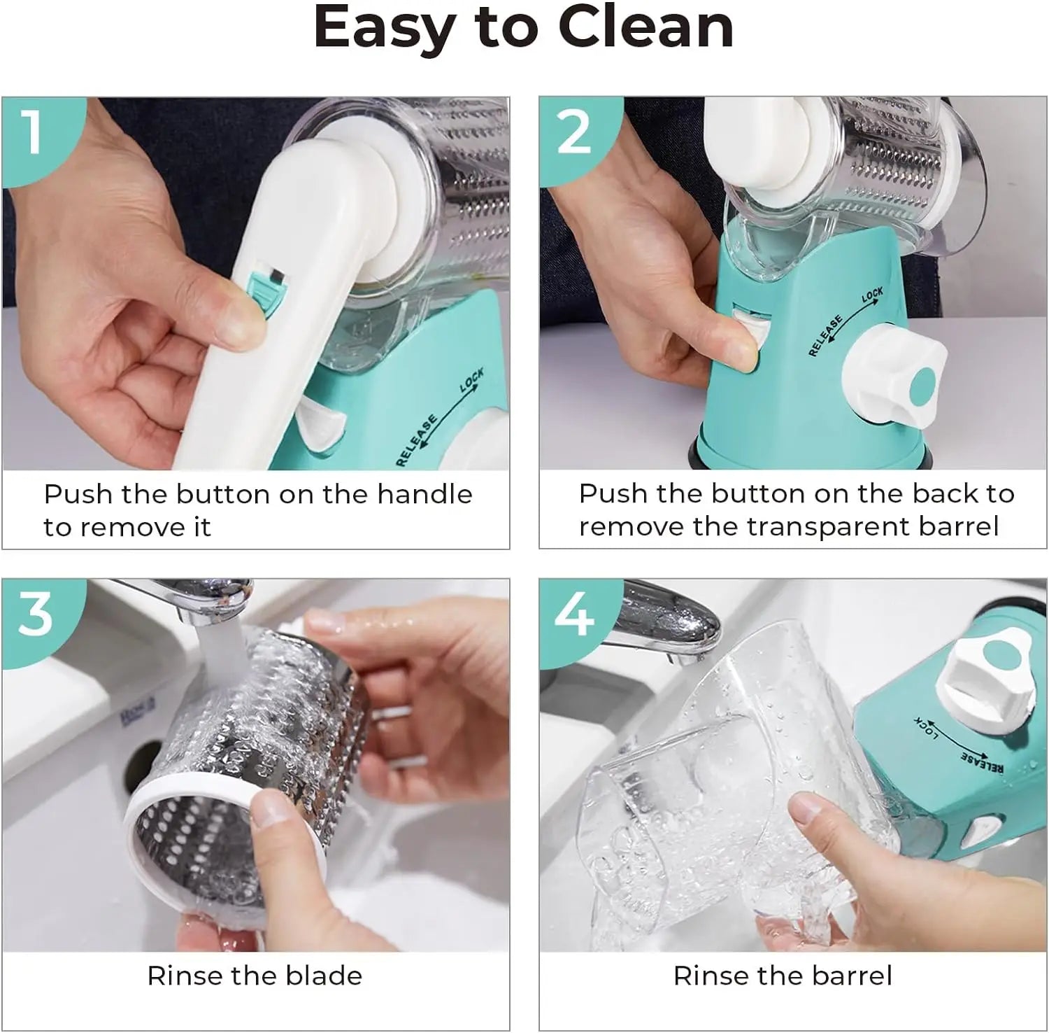 Manual Rotary Cheese Grater Shredder Kitchen Mandoline Vegetable Slicer with 3 Replaceable Stainless Steel Drum Blades YY001