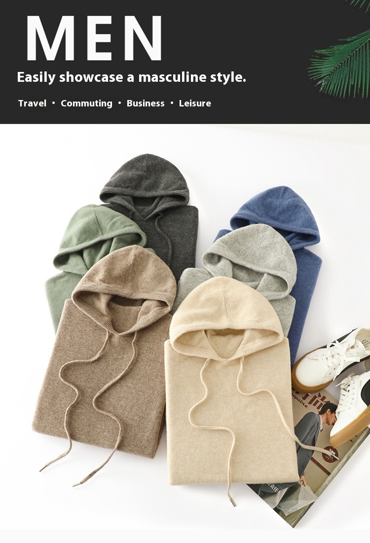Men's Hooded Solid Color Skin-friendly Knitted Warm Hoodie Bottoming Shirt