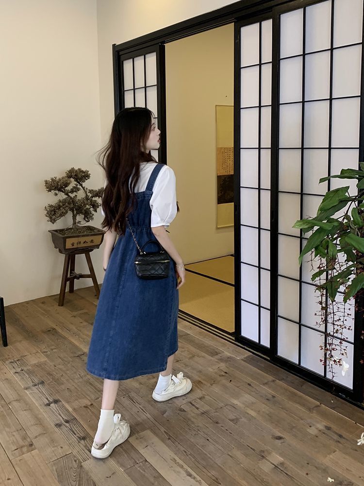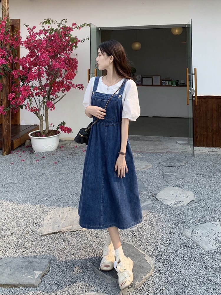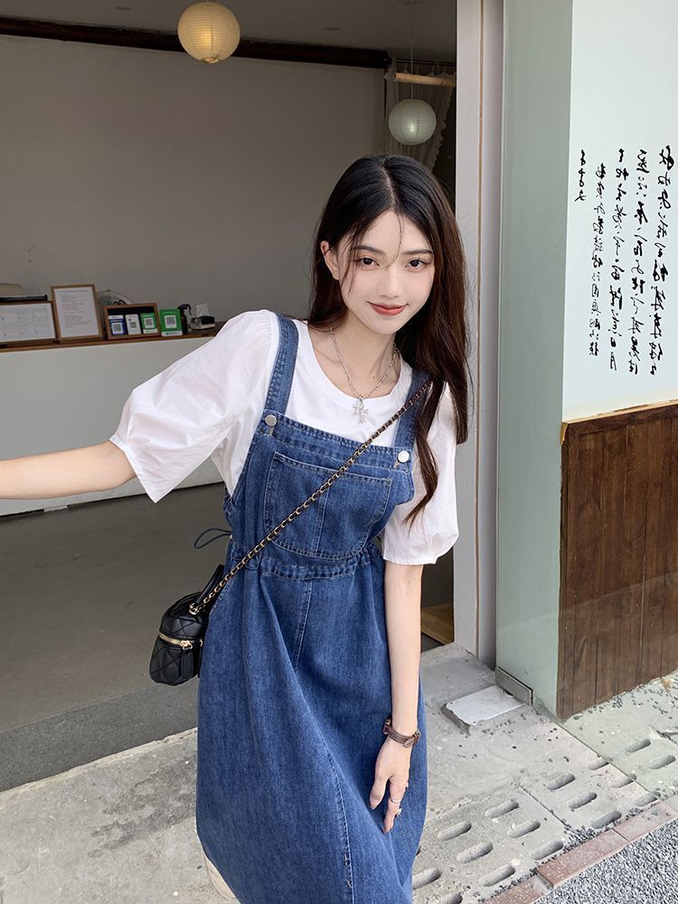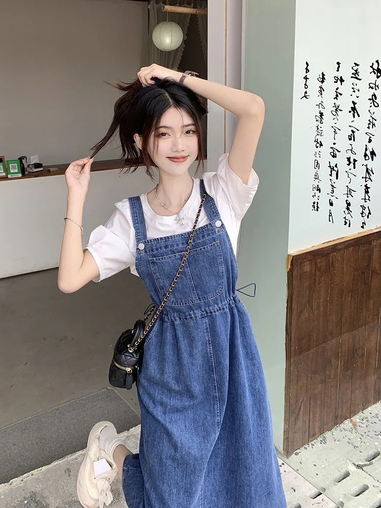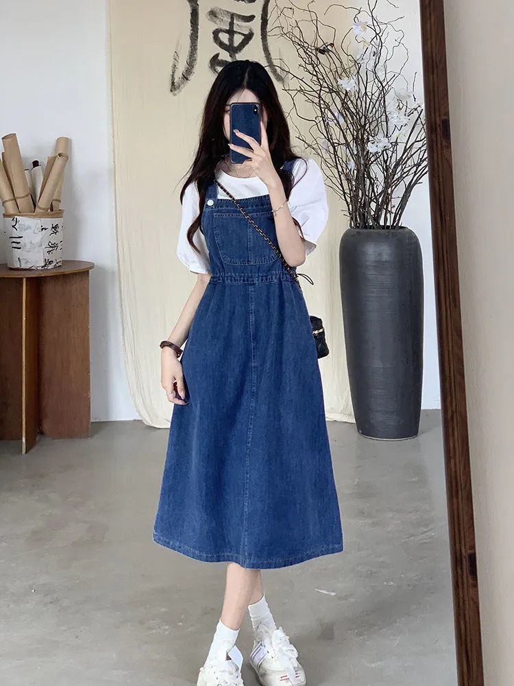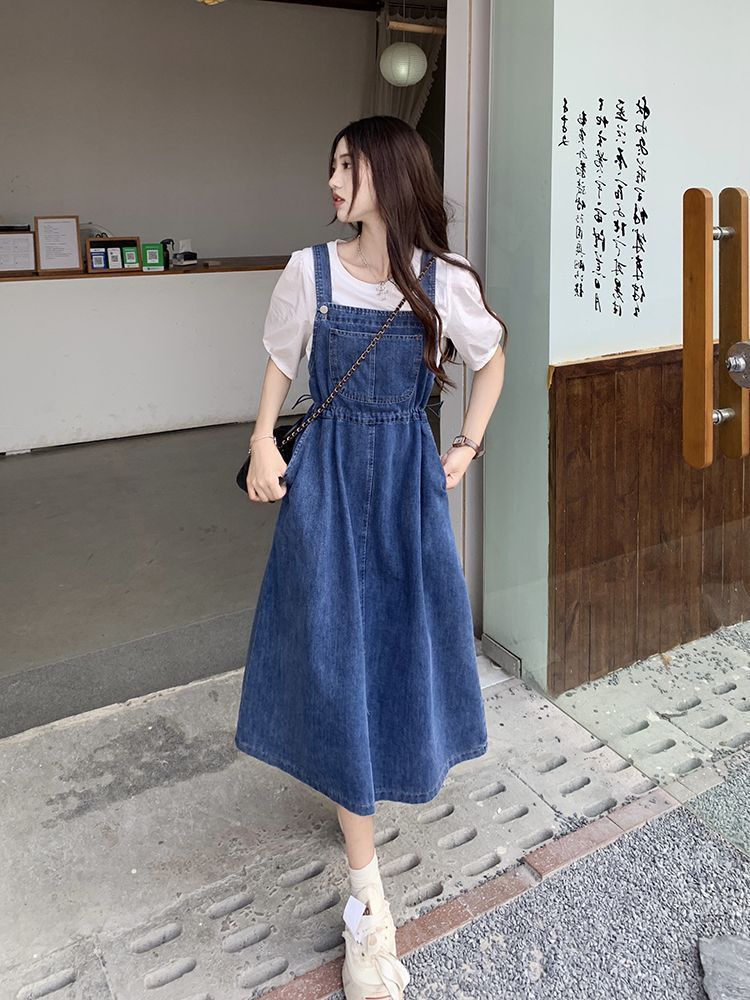 Mid-length Denim Overall Dress For Summer