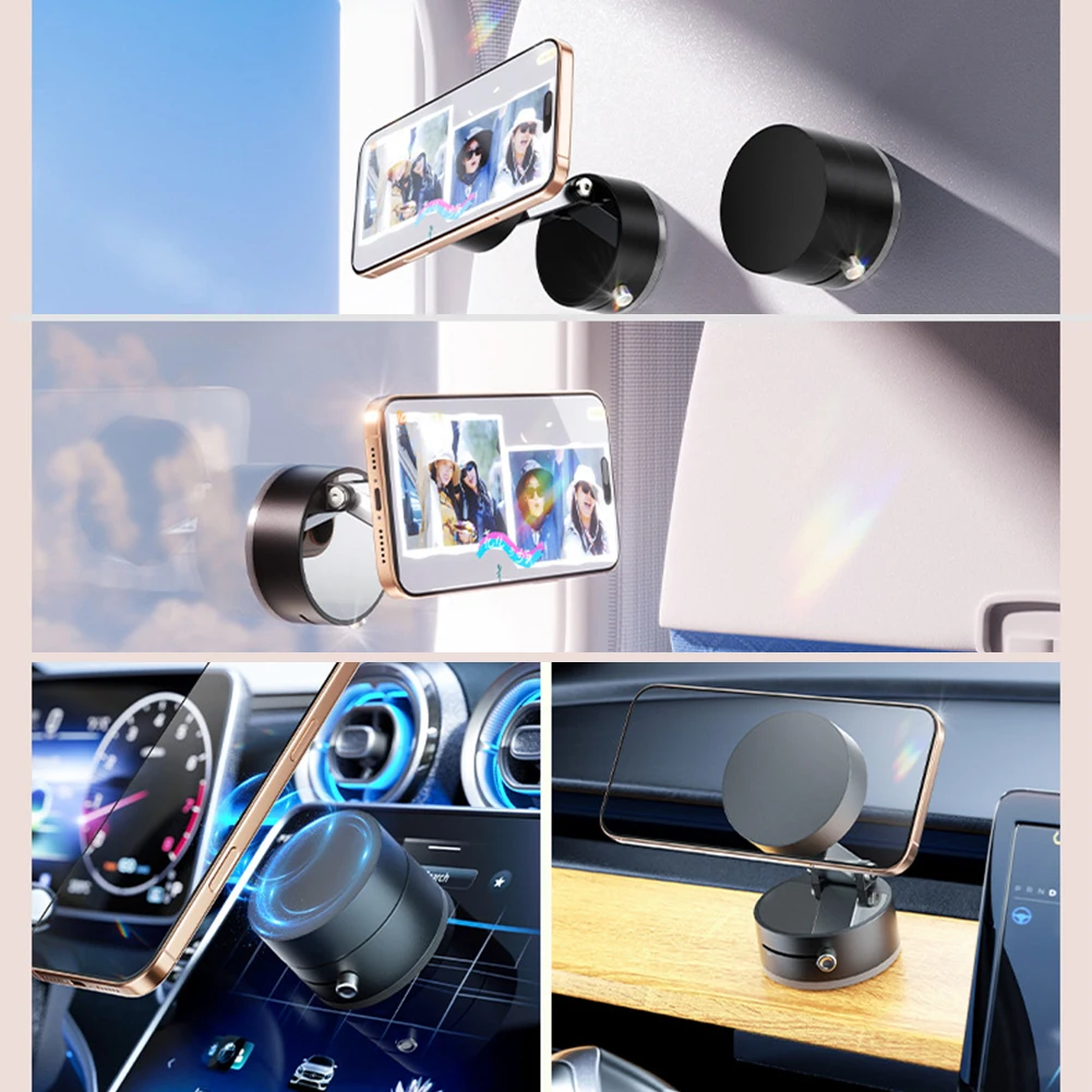 Mini Vacuum Double Side Magnetic Suction Cup Phone Holder Foldable Suction Cup Car Navigation Bracket for iPhone 16 15 Samsung