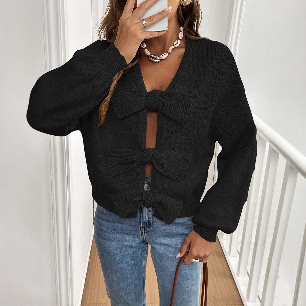 Minimalist Bowknot Matching Niche Knitted Jacket