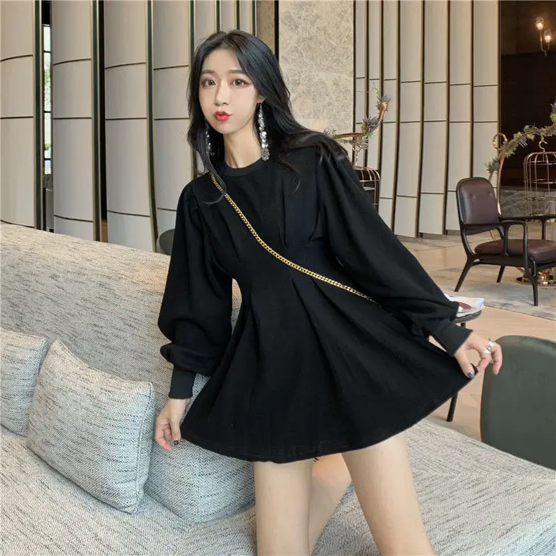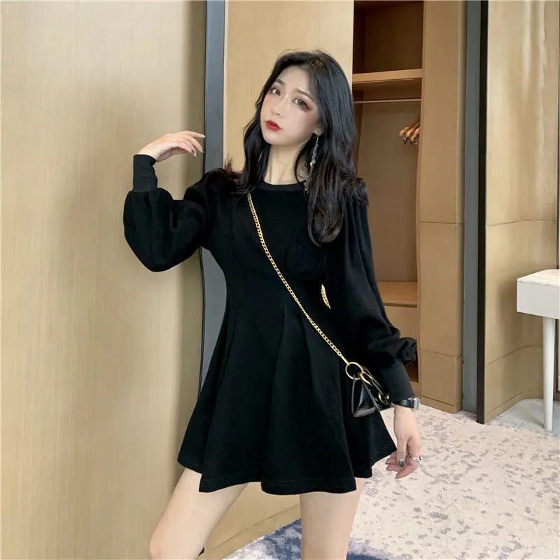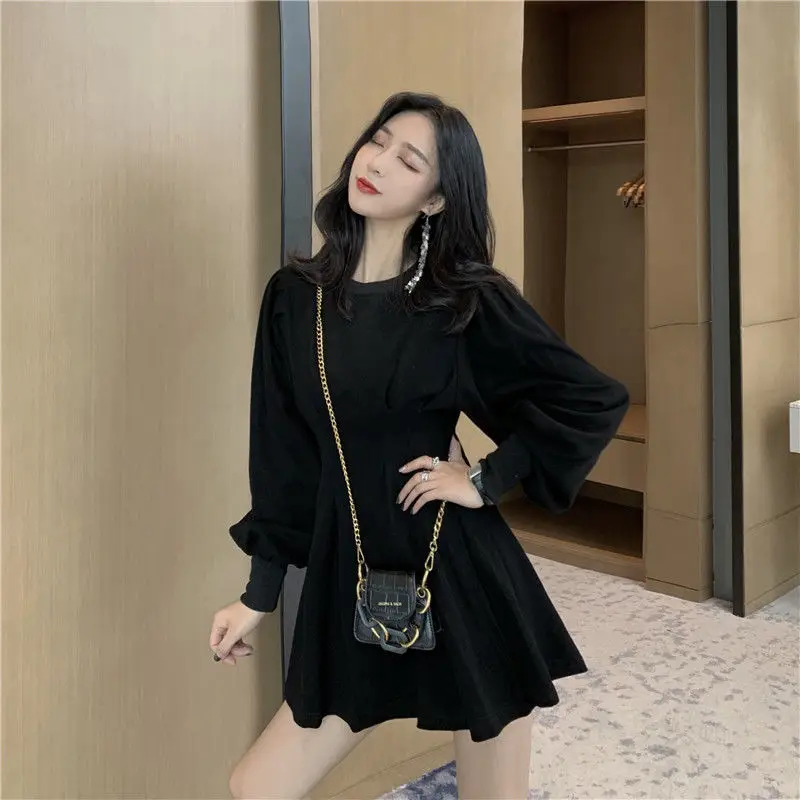 New Autumn Dress, Long-Sleeved Mid-Length A-Line Skirt, Thin And Waist