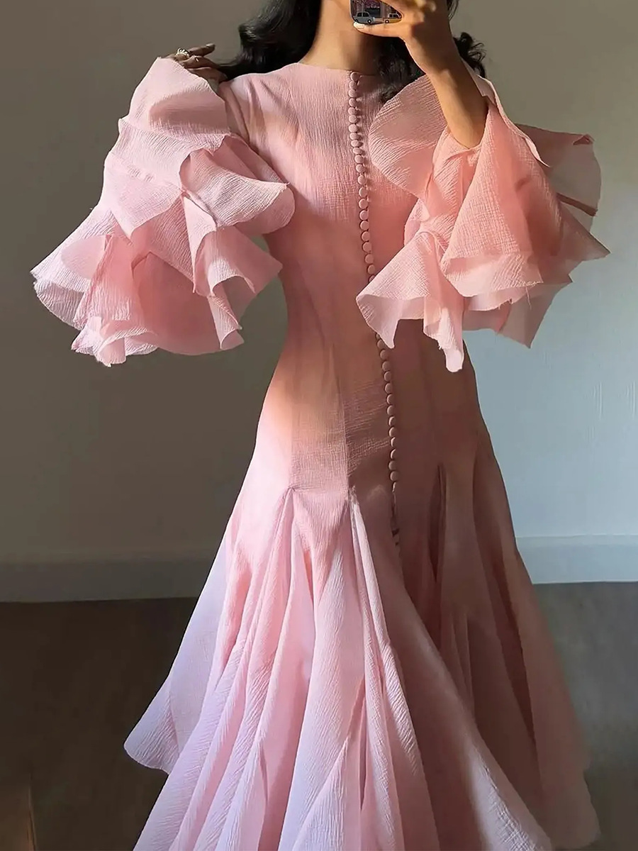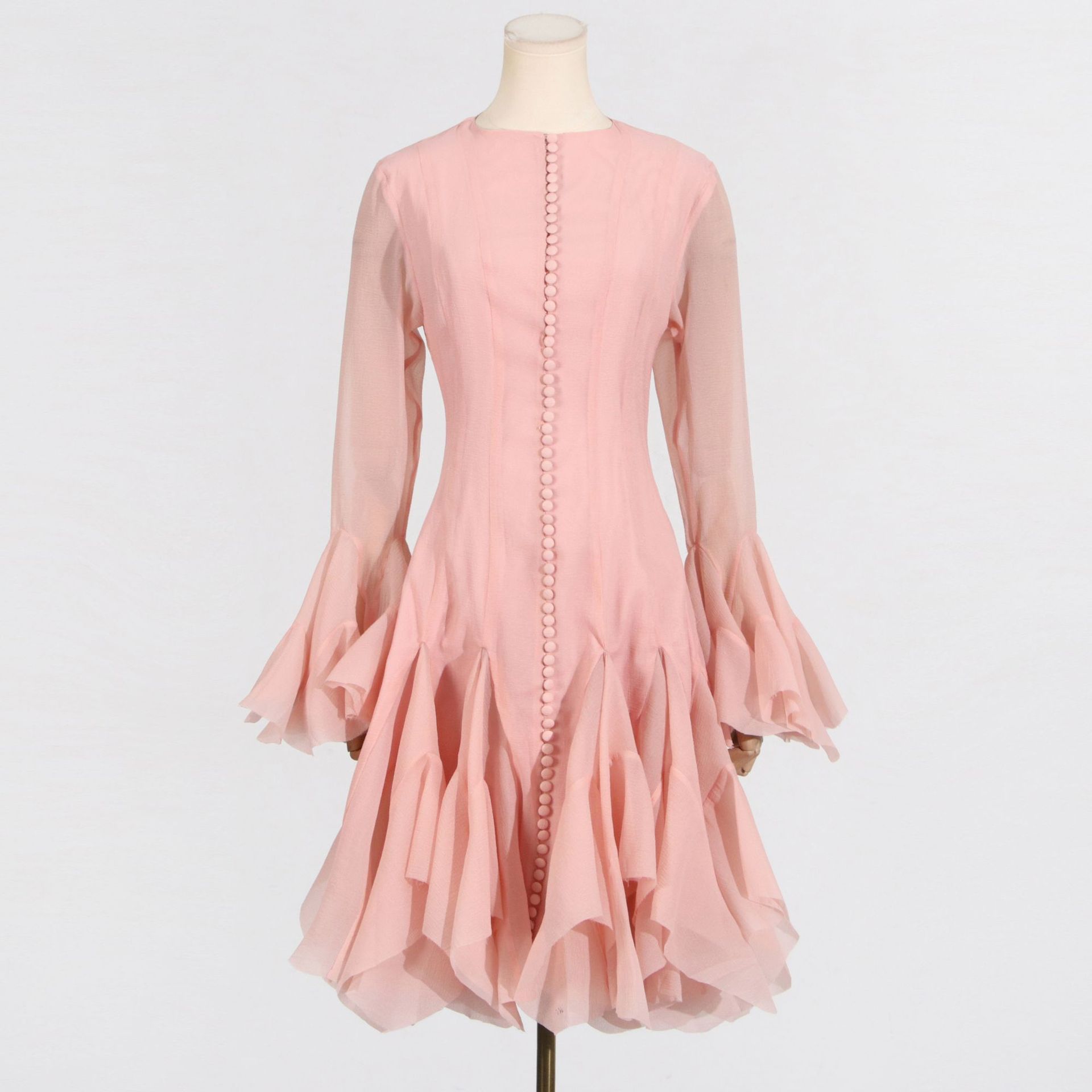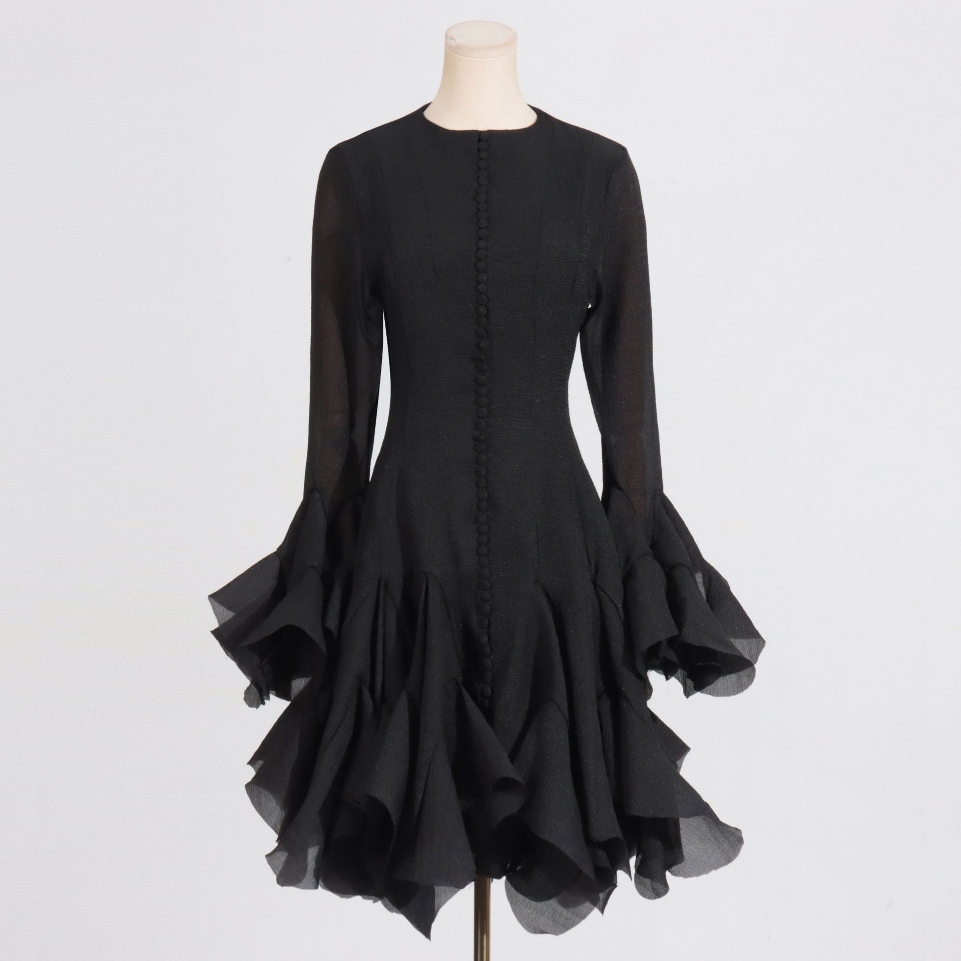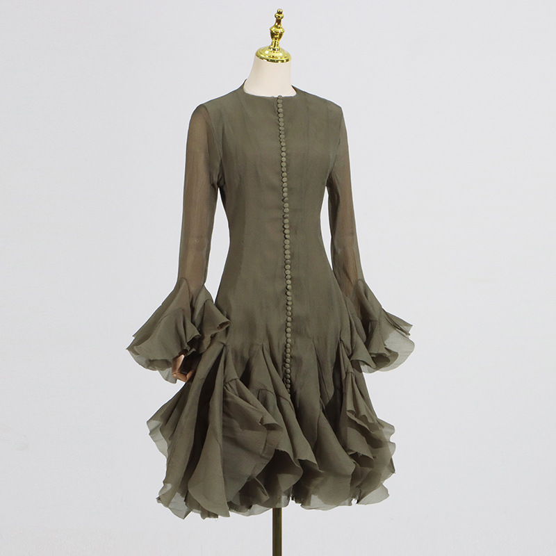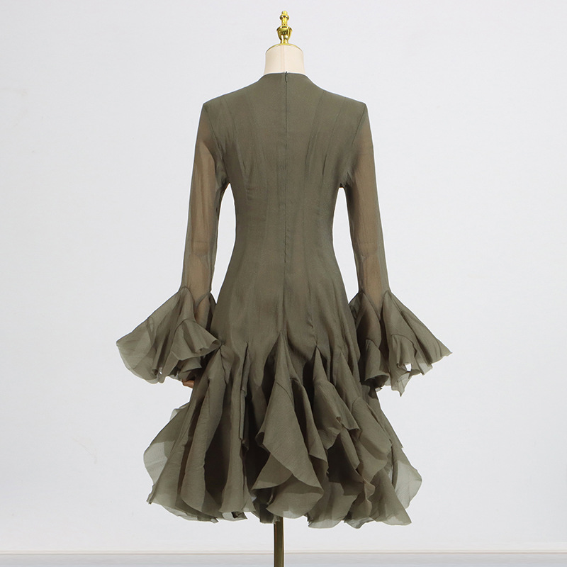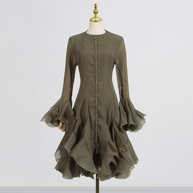 New Fashion High Collar Long Sleeve High Sense Cinched Mid-length Dress
