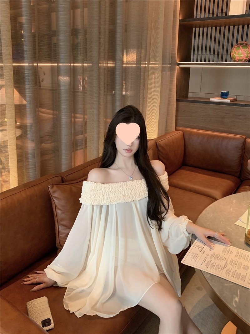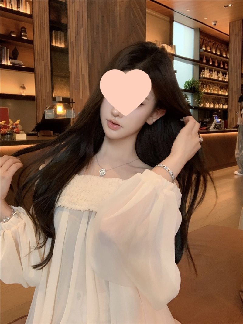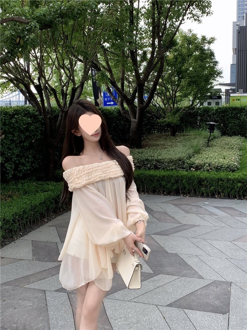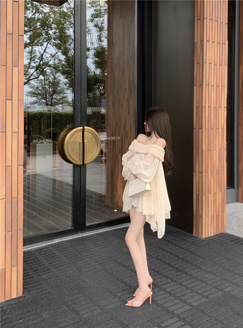 Off-shoulder Long Sleeve Chiffon Shirt Loose Mid-length Thin Top