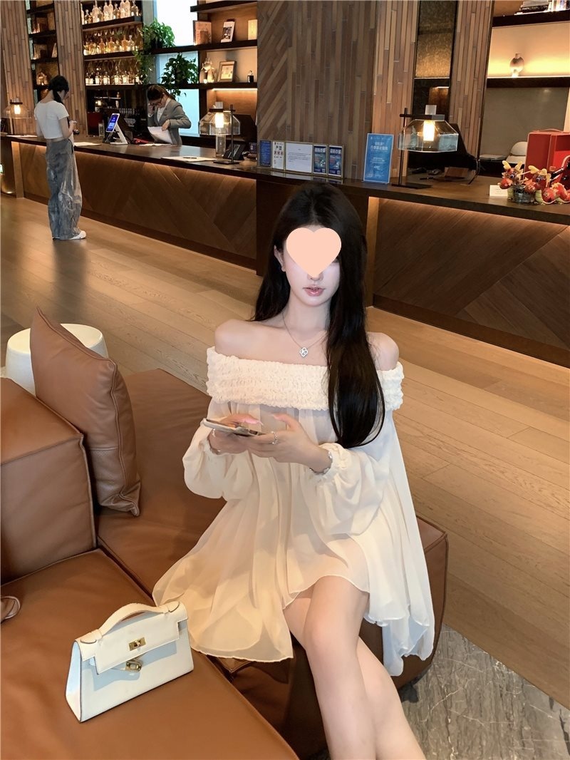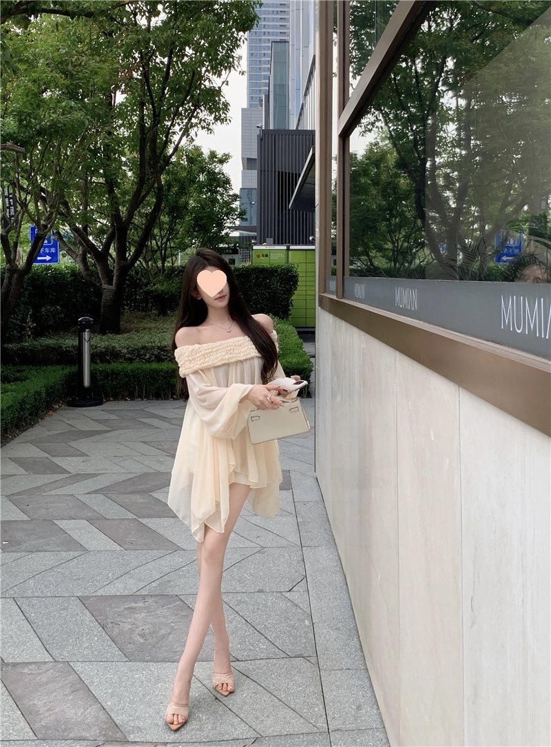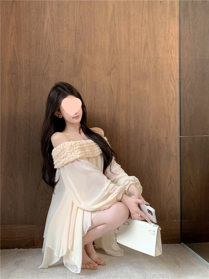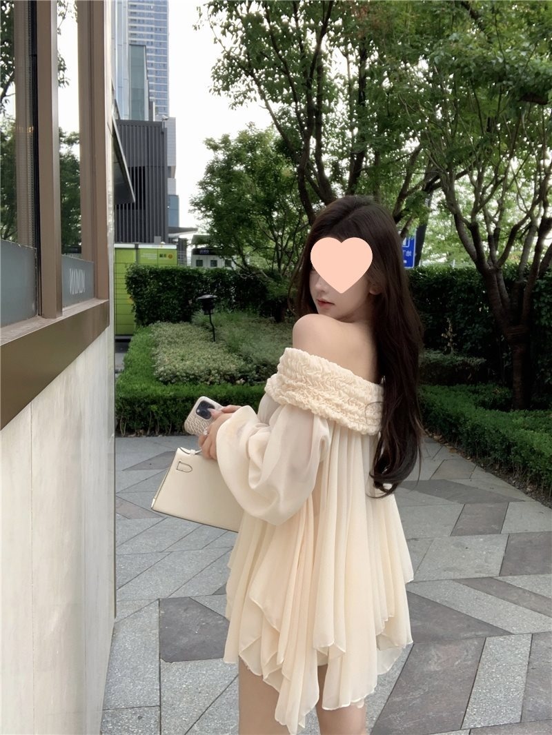 Off-shoulder Long Sleeve Chiffon Shirt Loose Mid-length Thin Top