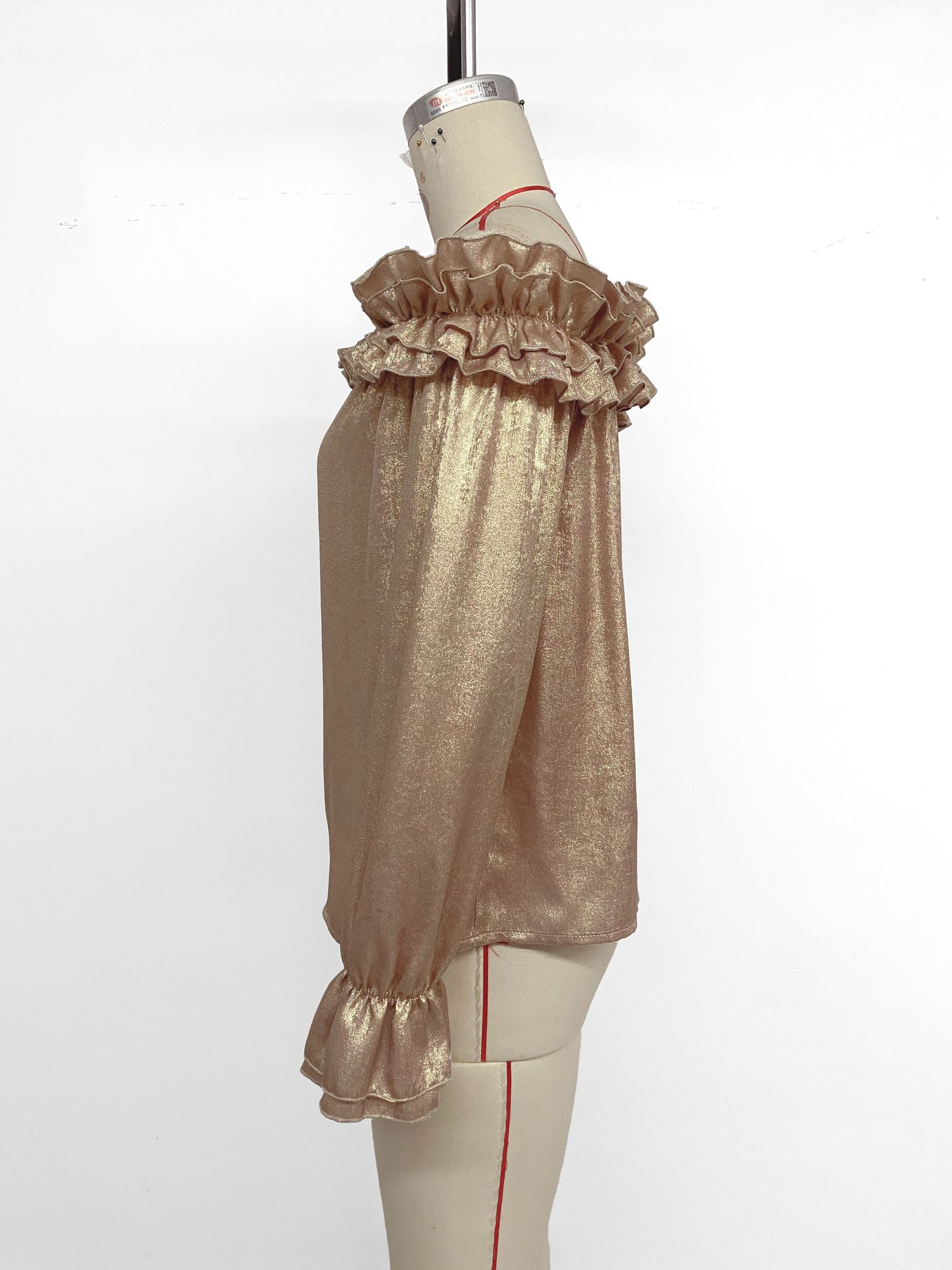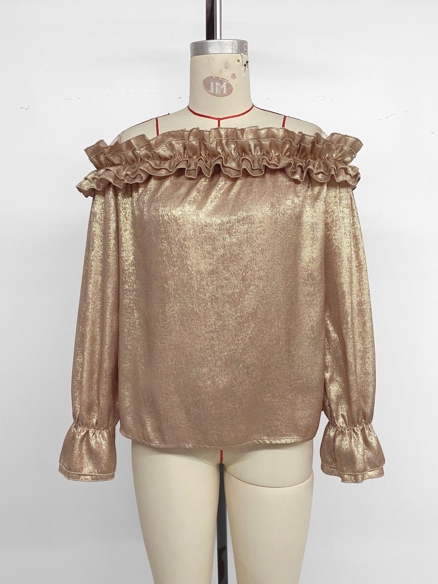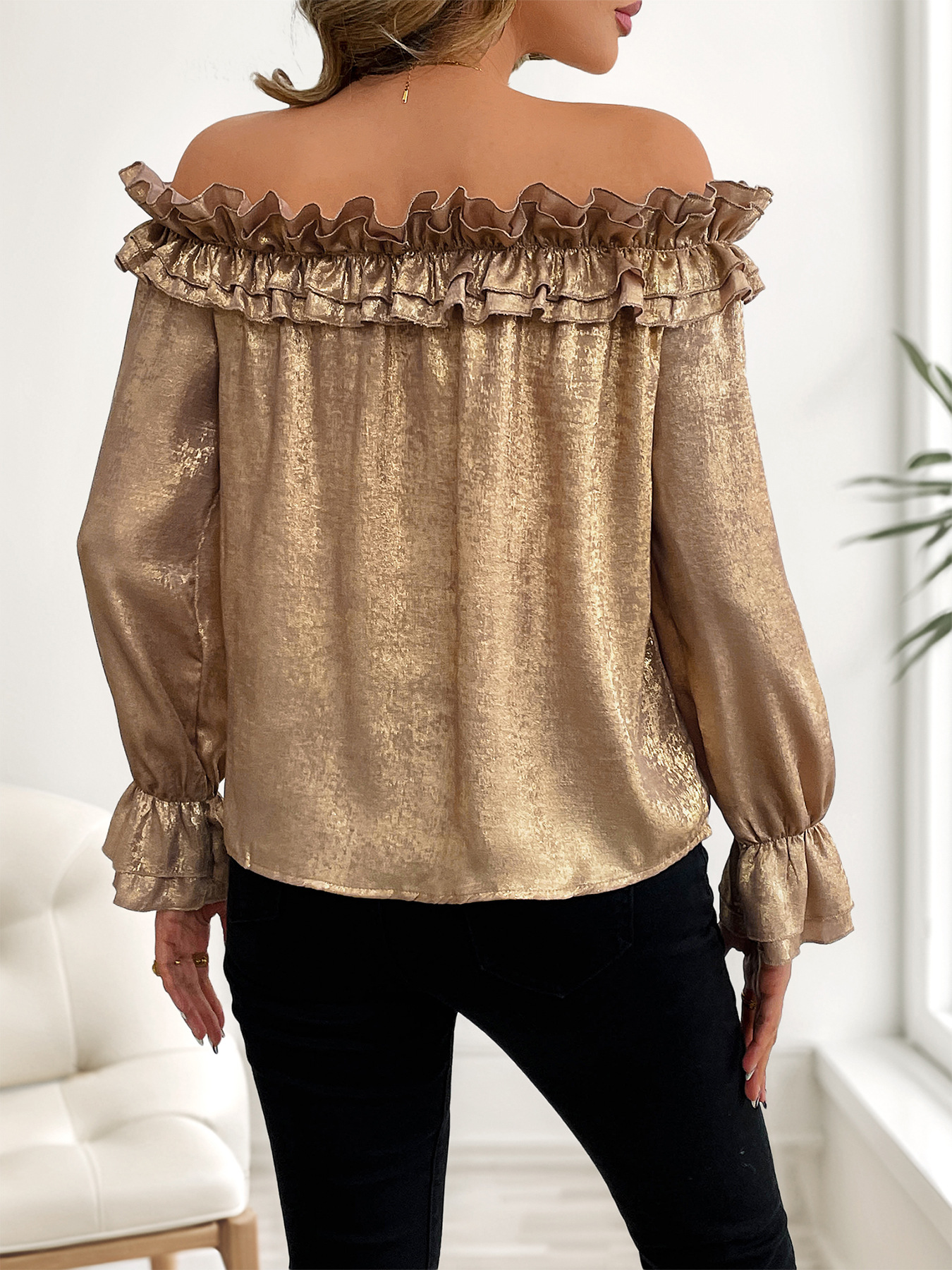 Off-shoulder Long Sleeve Golden Shirt For Women Autumn