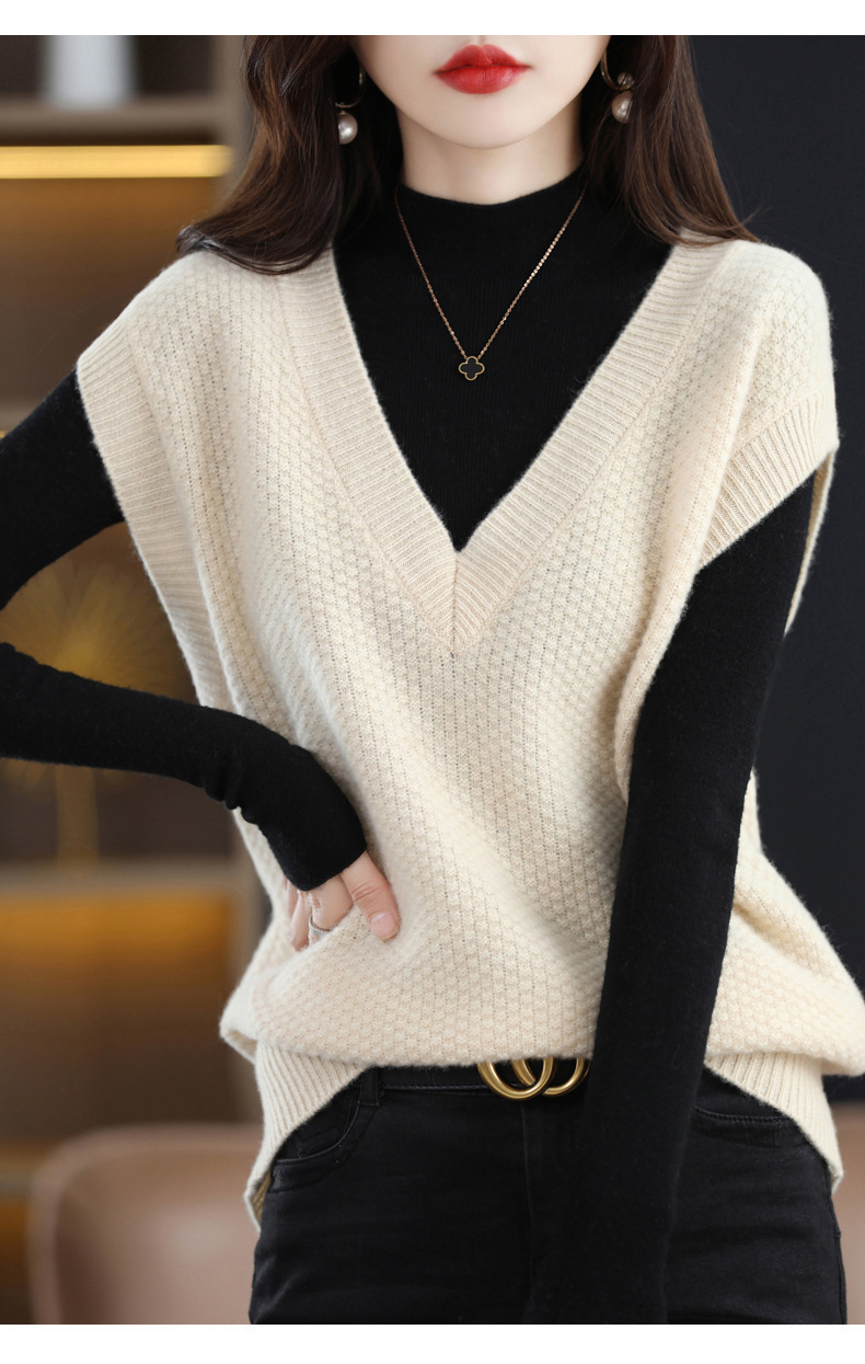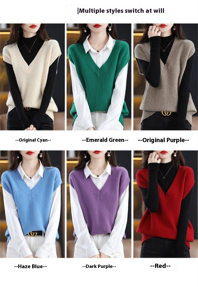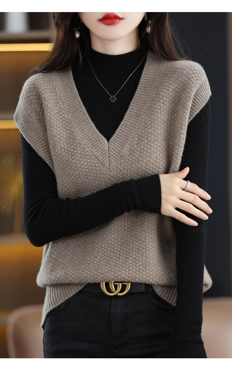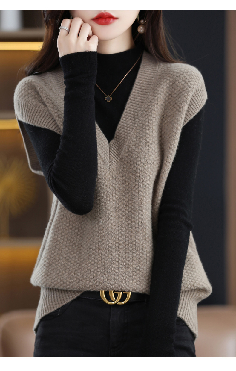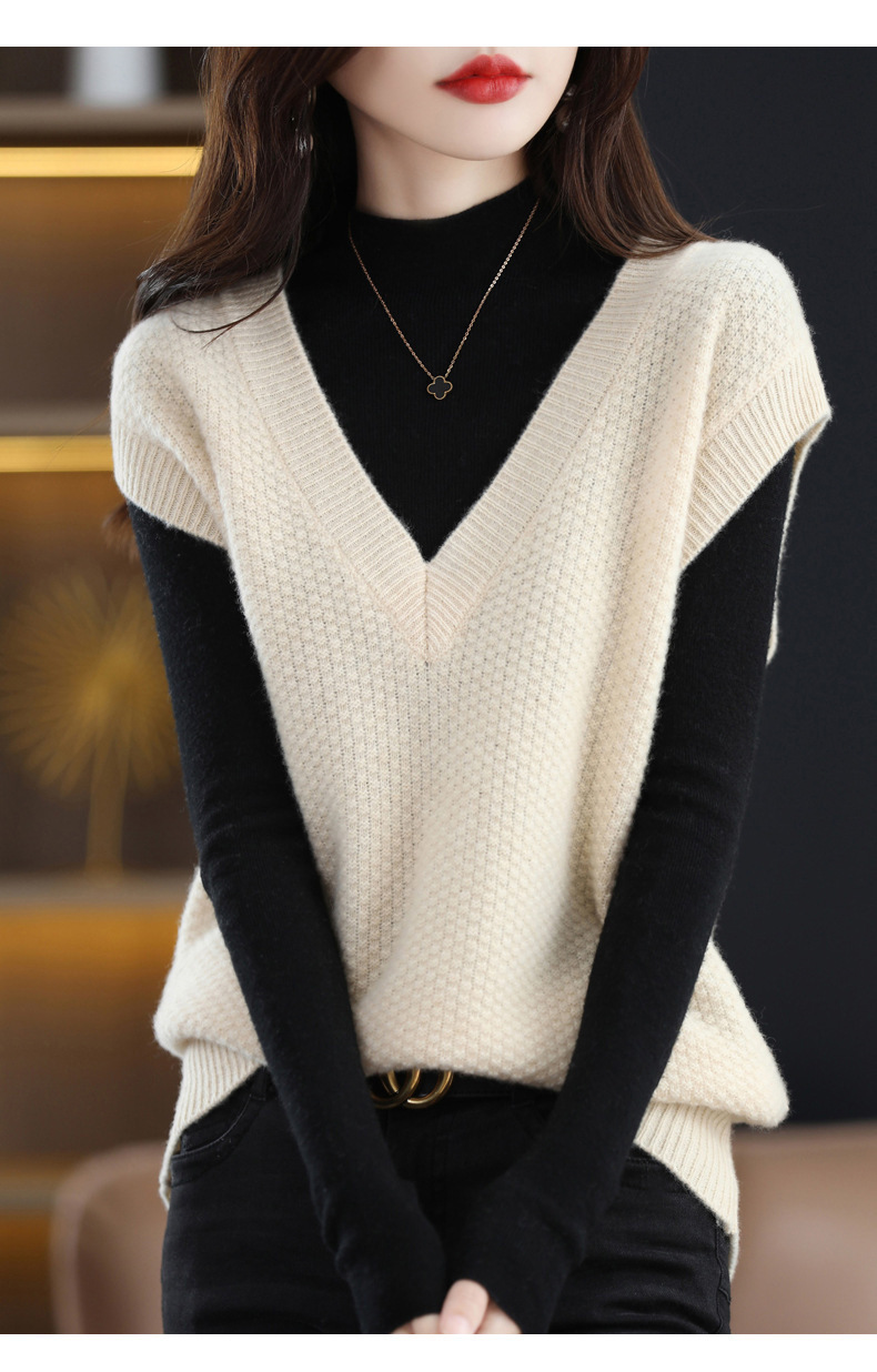 Outer Wear V-neck Sleeveless Pullover Sweater Knitted Outerwear Vest