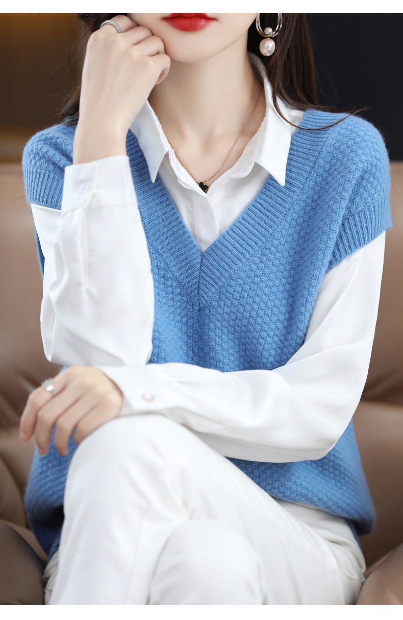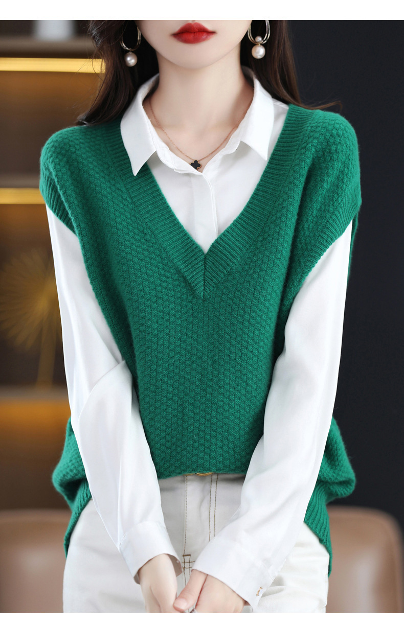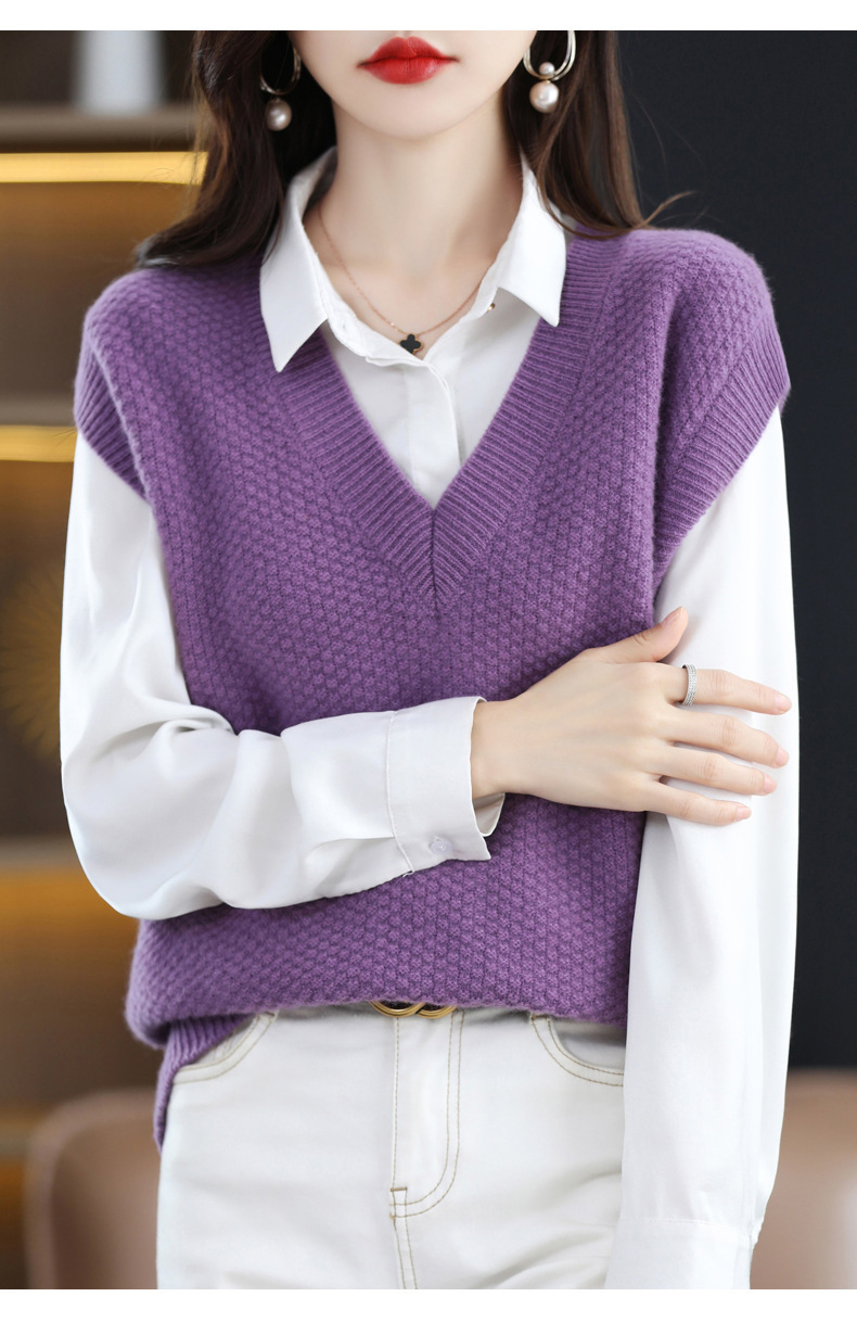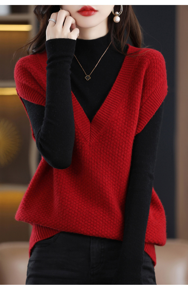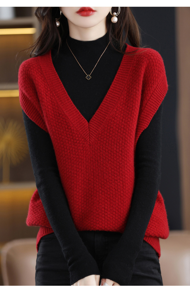 Outer Wear V-neck Sleeveless Pullover Sweater Knitted Outerwear Vest