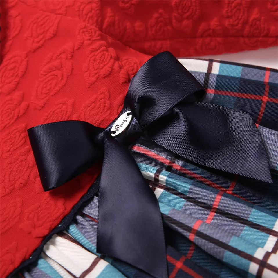 Pettgirl new Winter Kids Red Plaid Christmas Dresses for Girl Birthday and Party Clothes Age 2-12Y 1BAG=1PCS