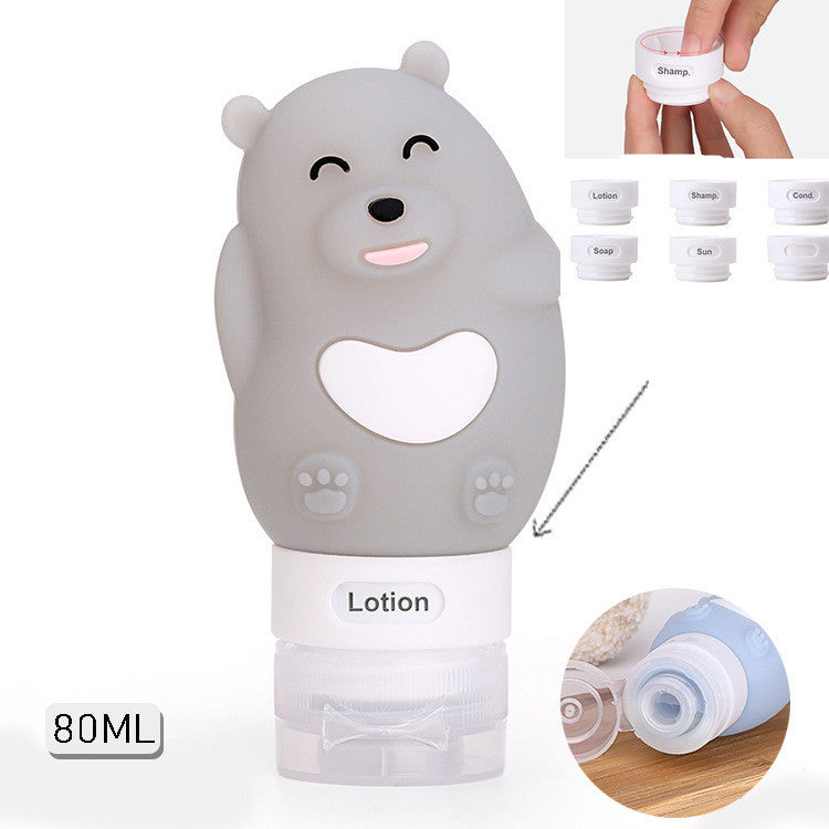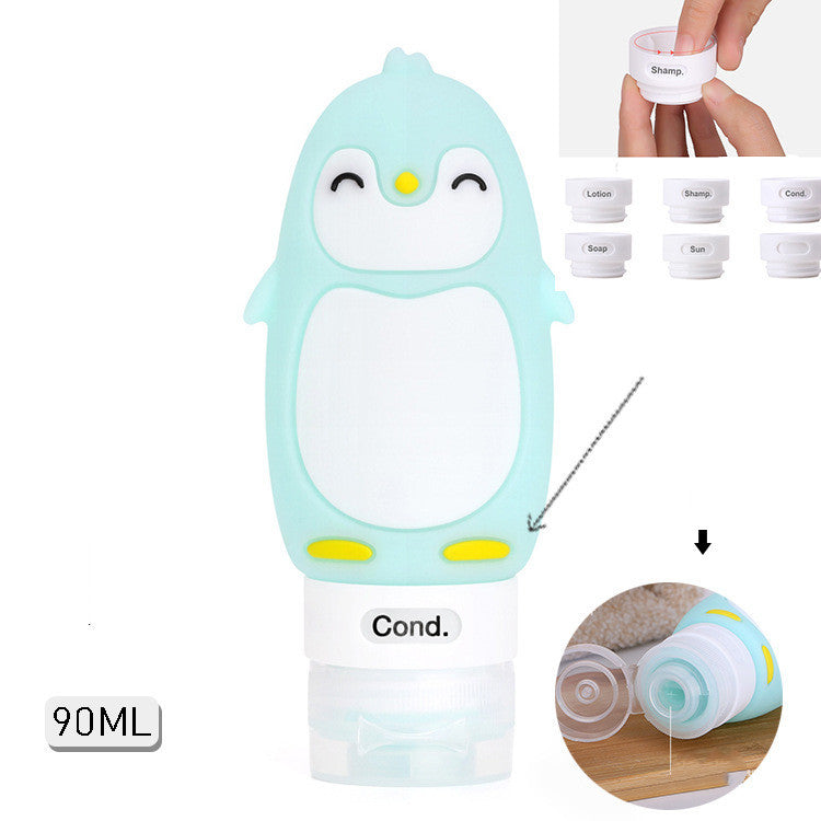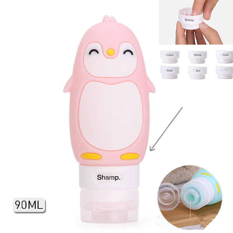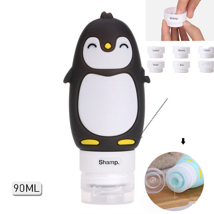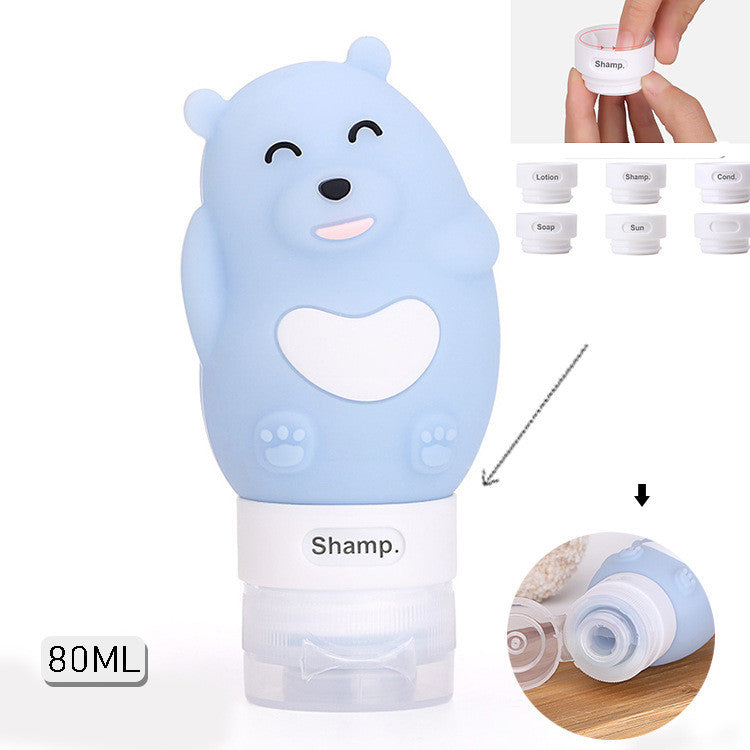 Portable Cute Cartoon Bear Penguin Animal Silicone Travel Case Organizer Shampoo Shower Gel Lotion Storage Refillable Bottle