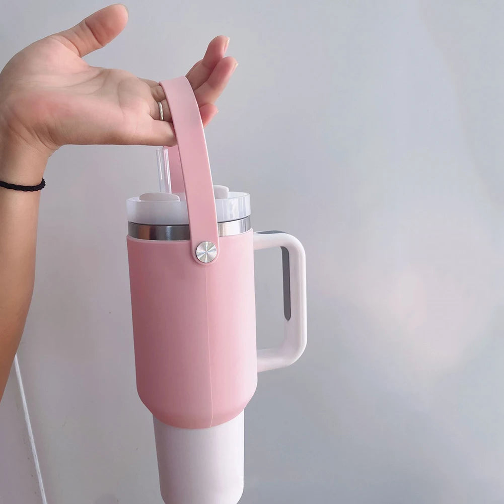 Portable Water Bottle Sleeve Bag Reusable Silicone Base Cup Cover for Stanley Cup 40oz Water Bottle Carrier Pouch with Handle