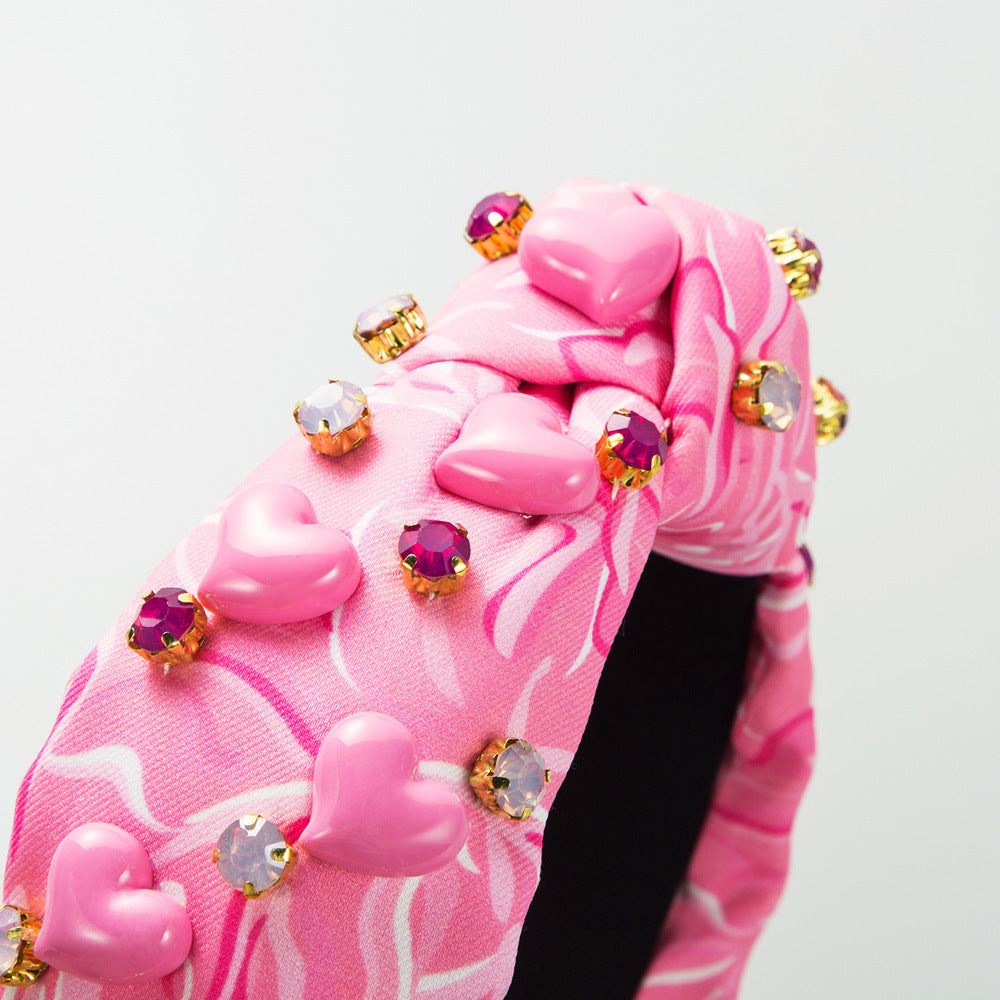 Printed Fabric Valentine's Day Headband Female Hand-stitched Gem Inlaid Love Accessories