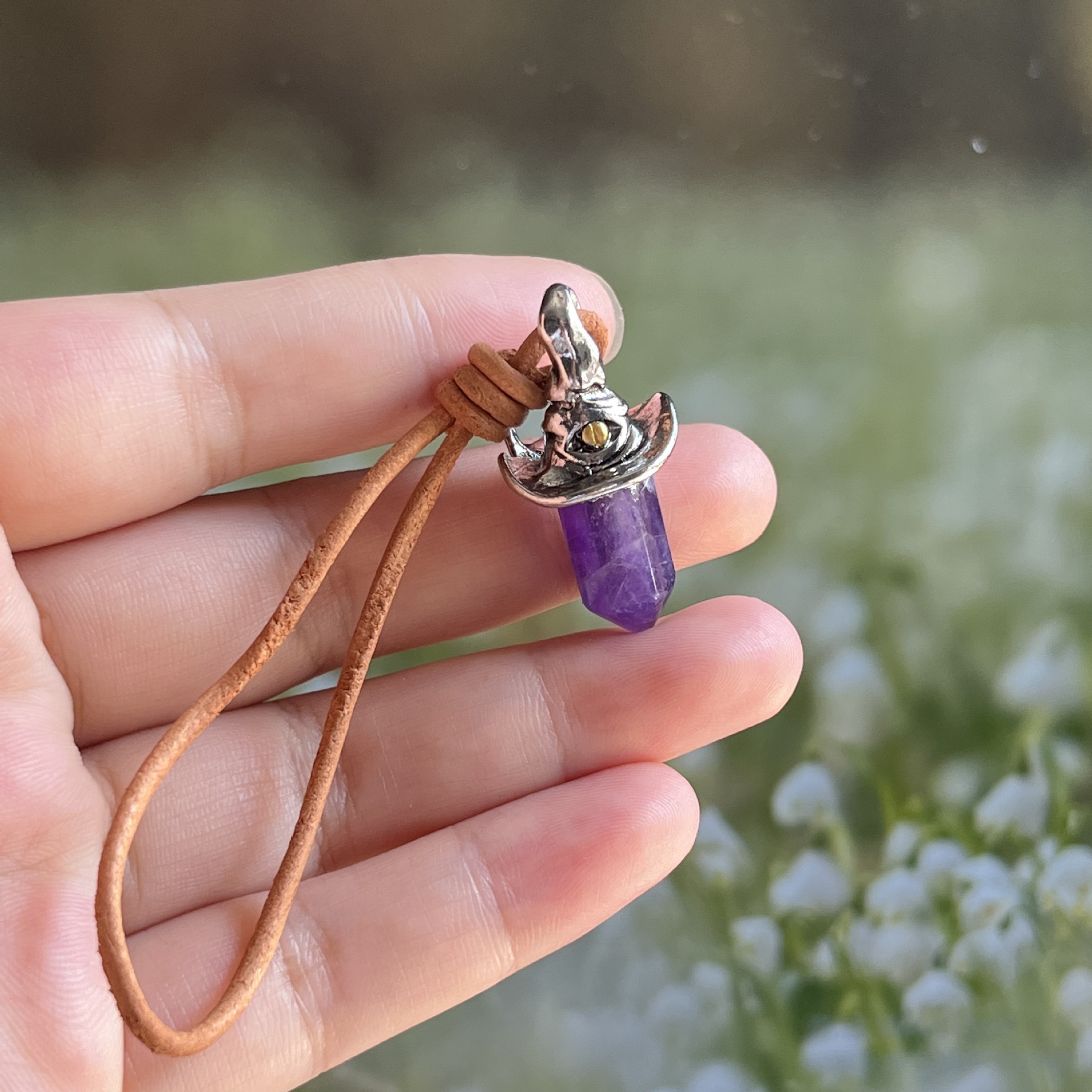Color: Witch's Crystal Pendant (Cowhide Rope), Witch's Crystal Pendant (Black Rope), Witch's Crystal Pendant (Keychain), Non-Natural (Random Color), Cowhide Rope Keychain, Little Witch Necklace