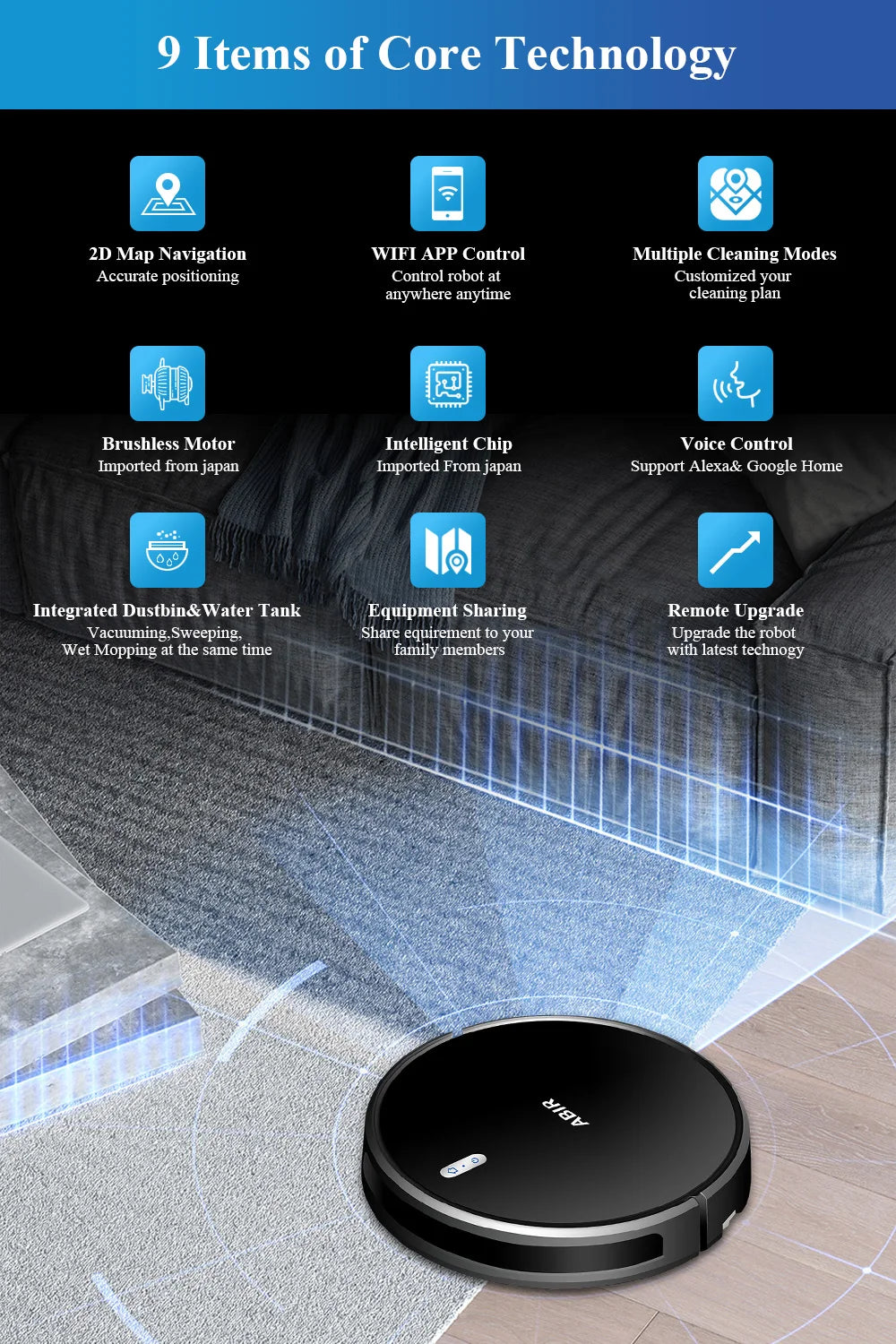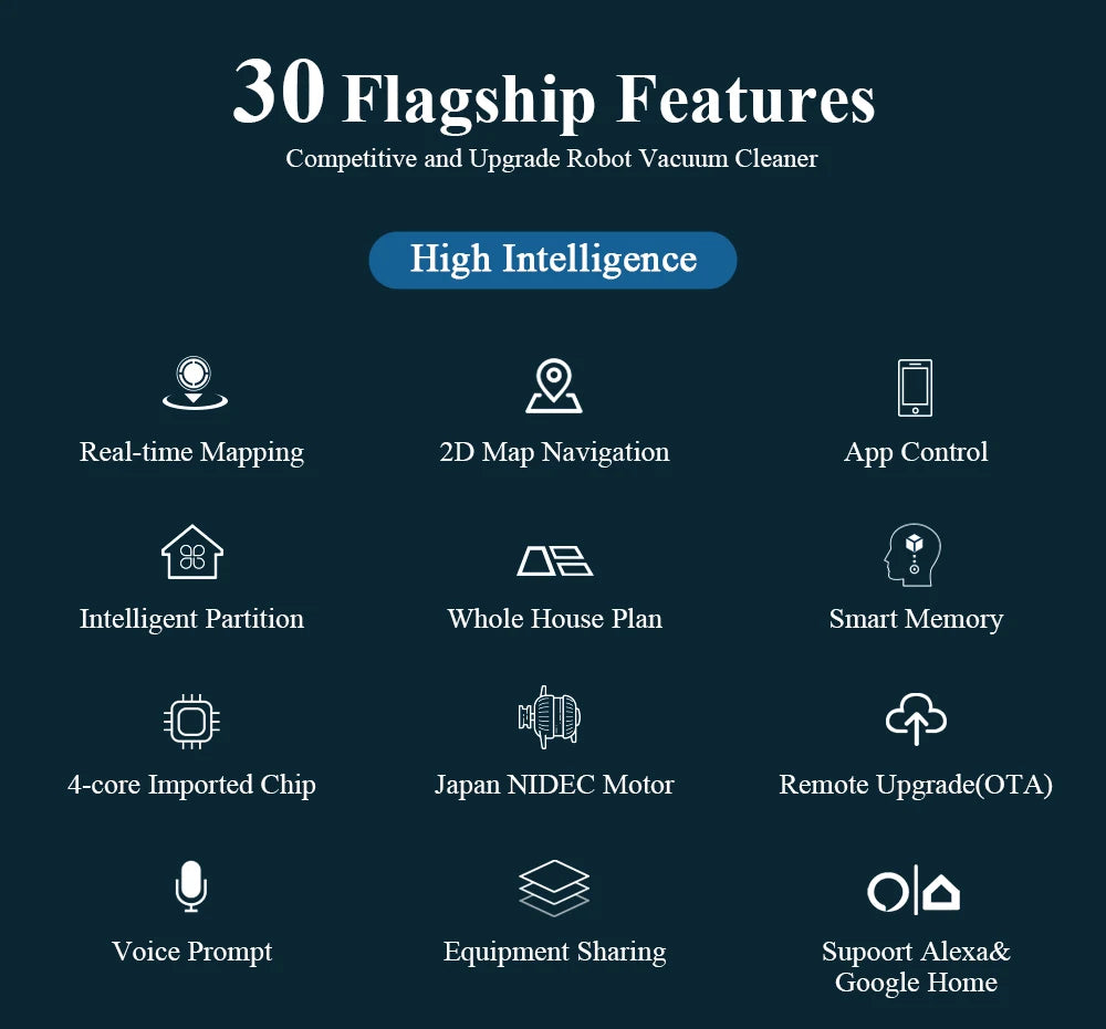 Cleaning Mode: Auto/Boarder/Spot/ Time Schedule/ Quite Cleaning/ Max Mode