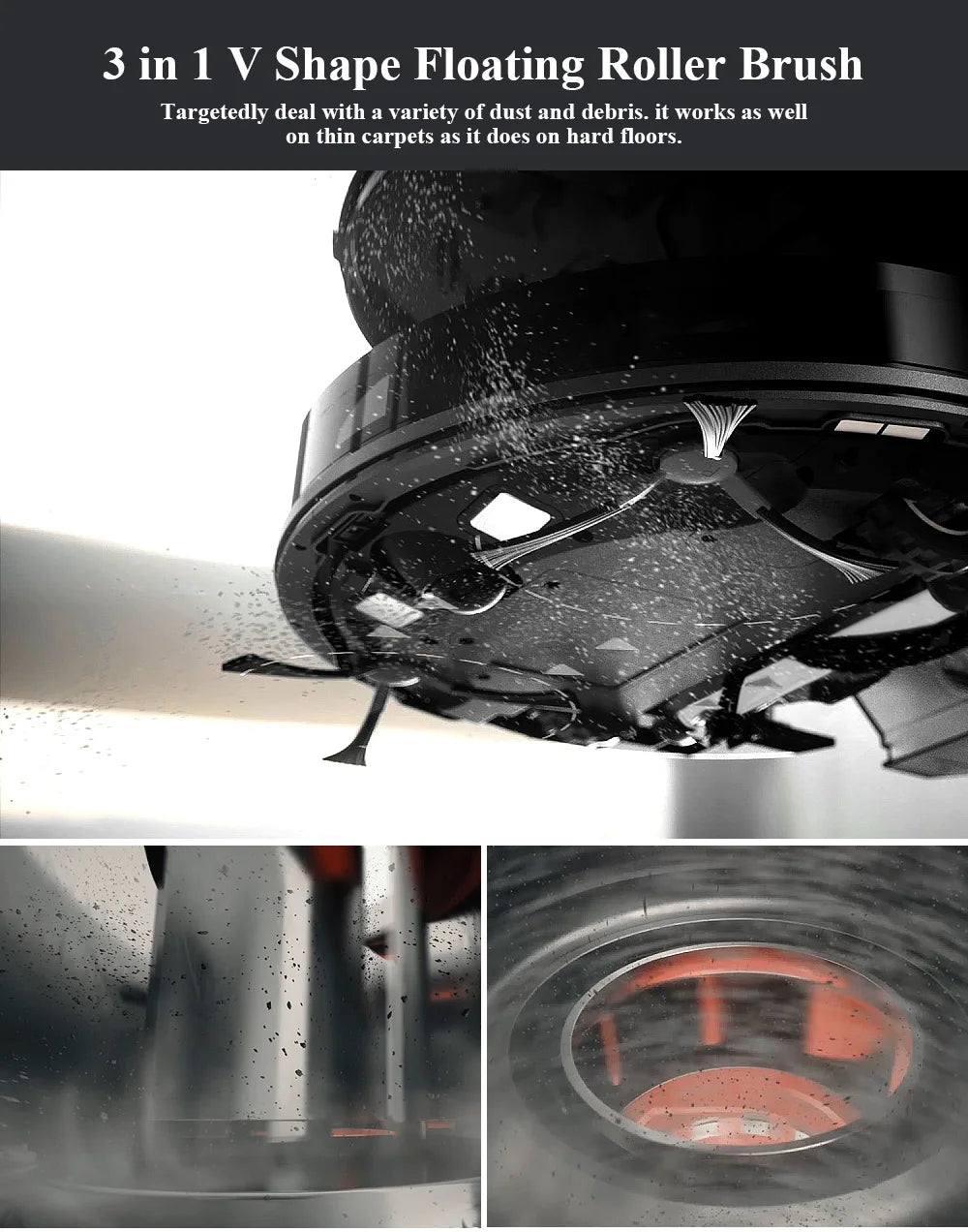 Main Roller Brush: Anti-winding V shape