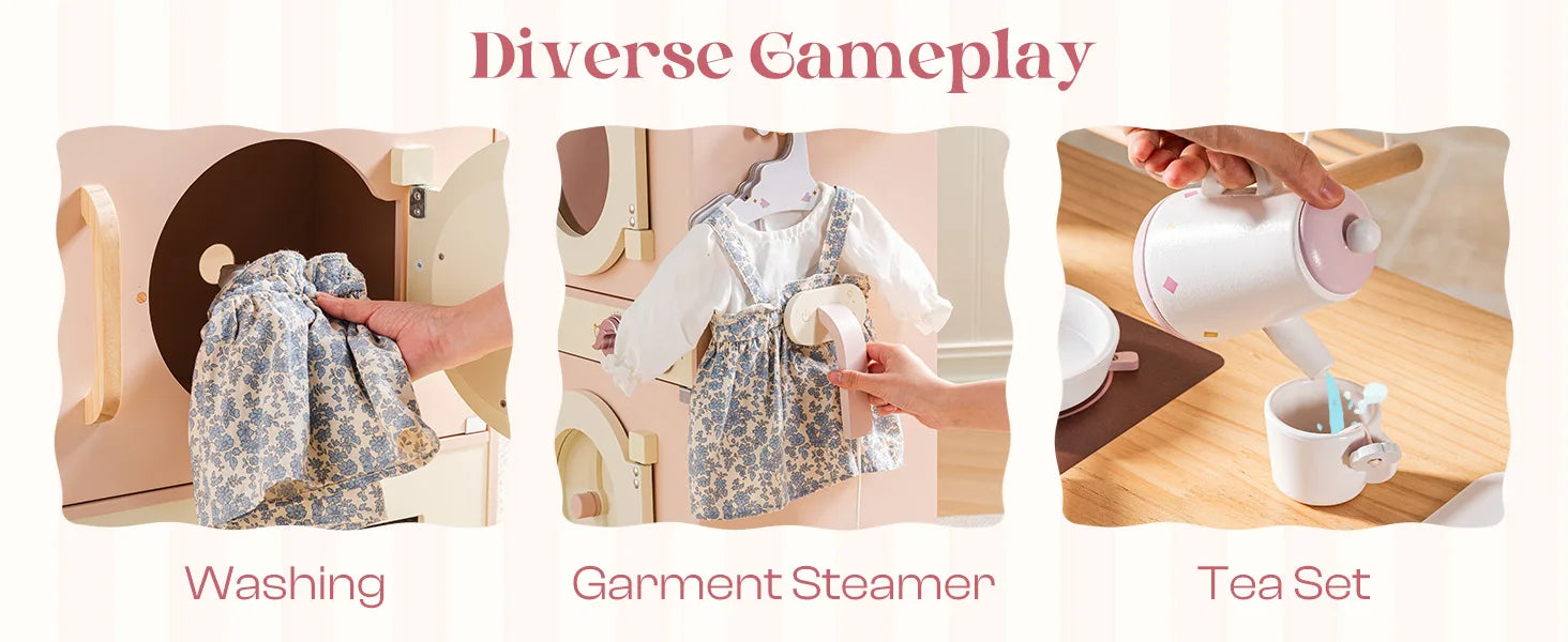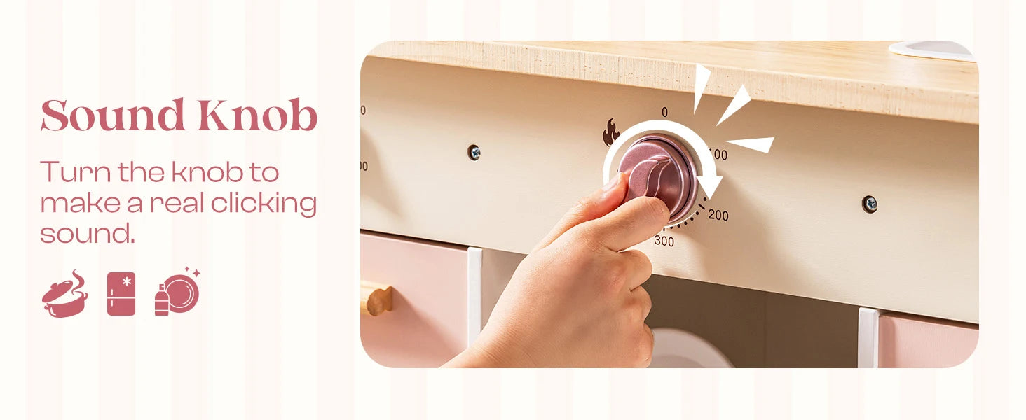 Robotime Robud Kids Corner Kitchen Playset Wooden Play Kitchen Set with Realistic Sound Pretend Play Gift for Boys Girls Pink