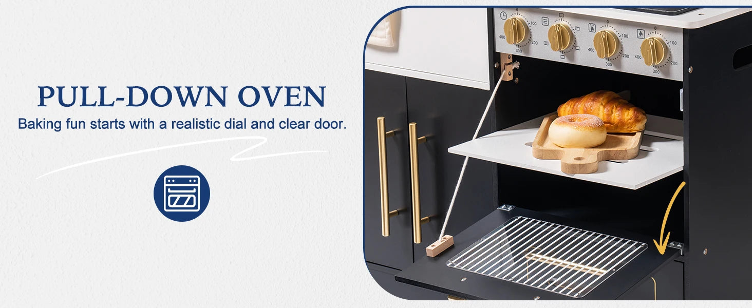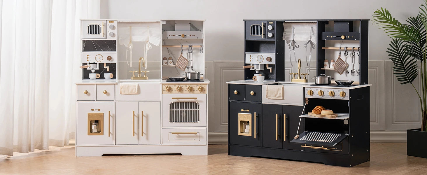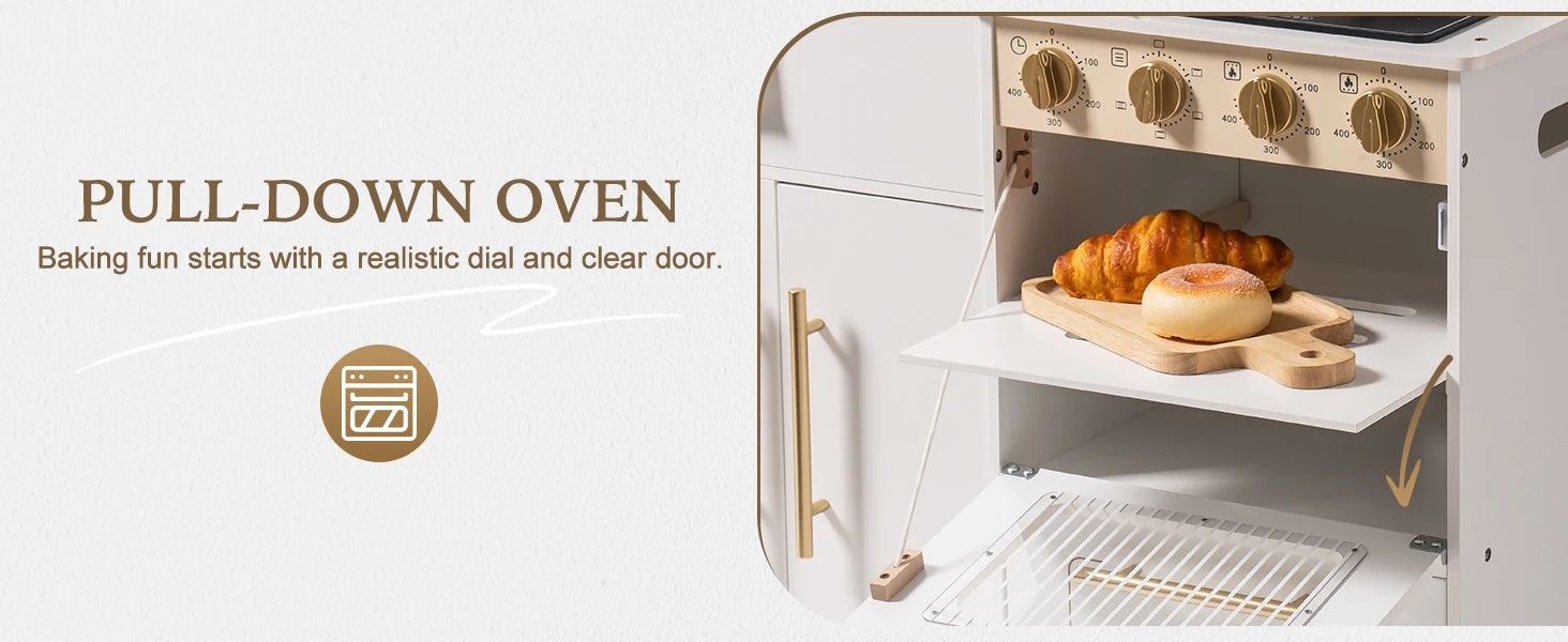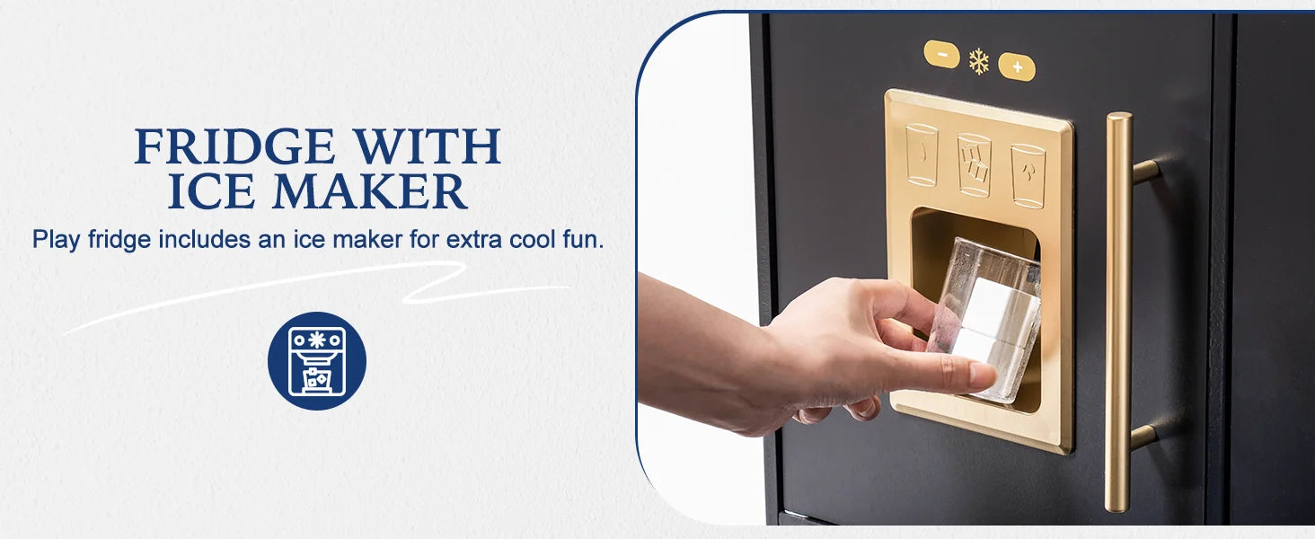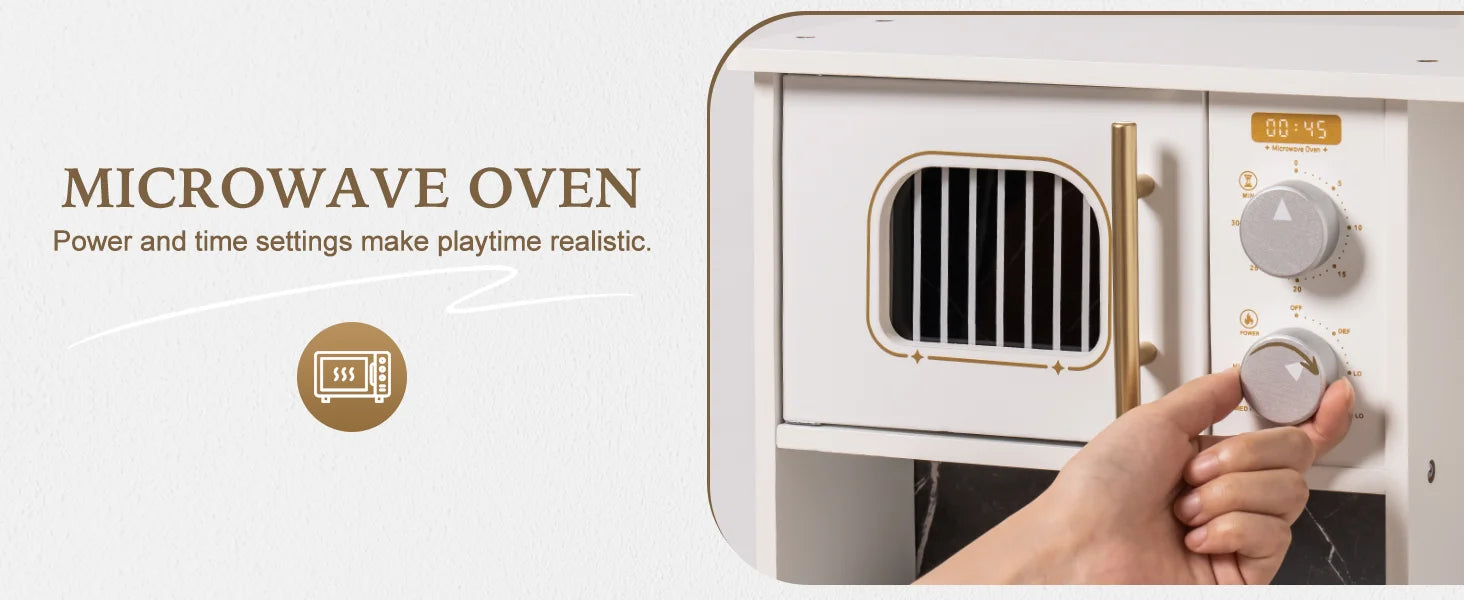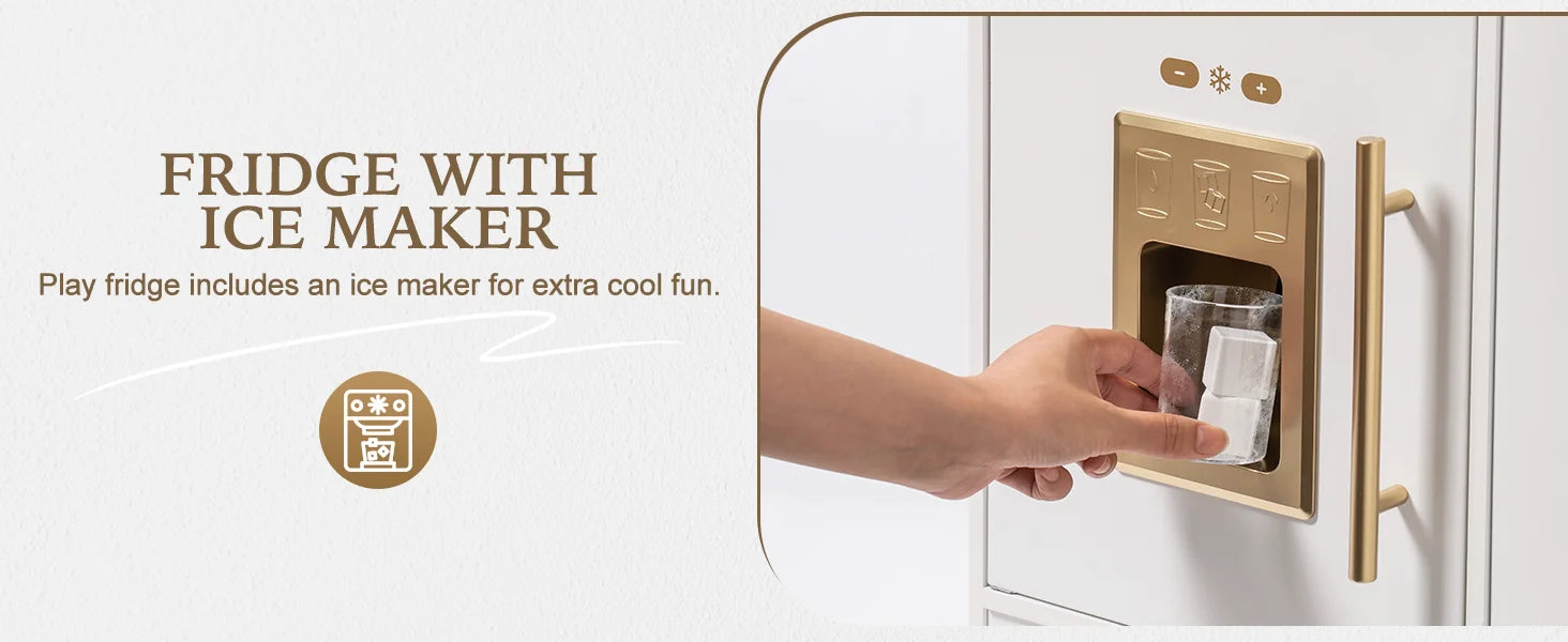 ROBOTIME Wooden Play Kitchen Toy Kitchen Set with Ice Maker and Coffee Machine Realistic Kitchen Set Gift for Toddlers