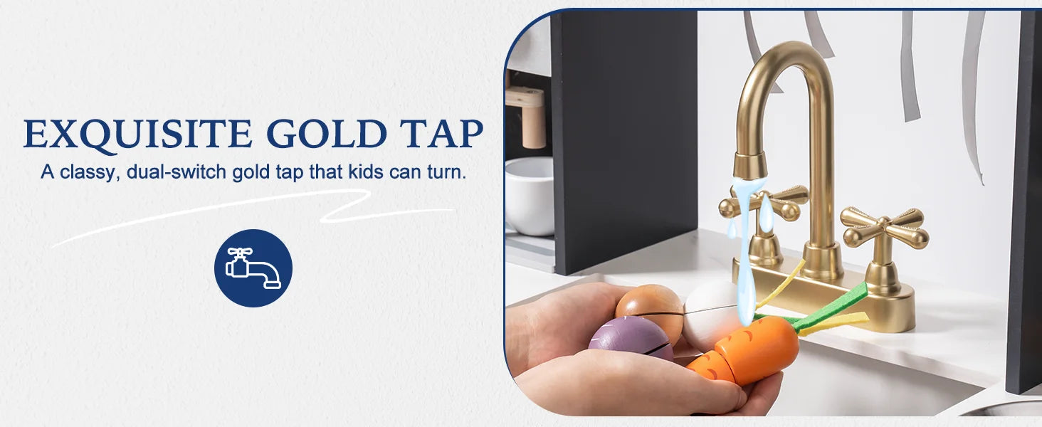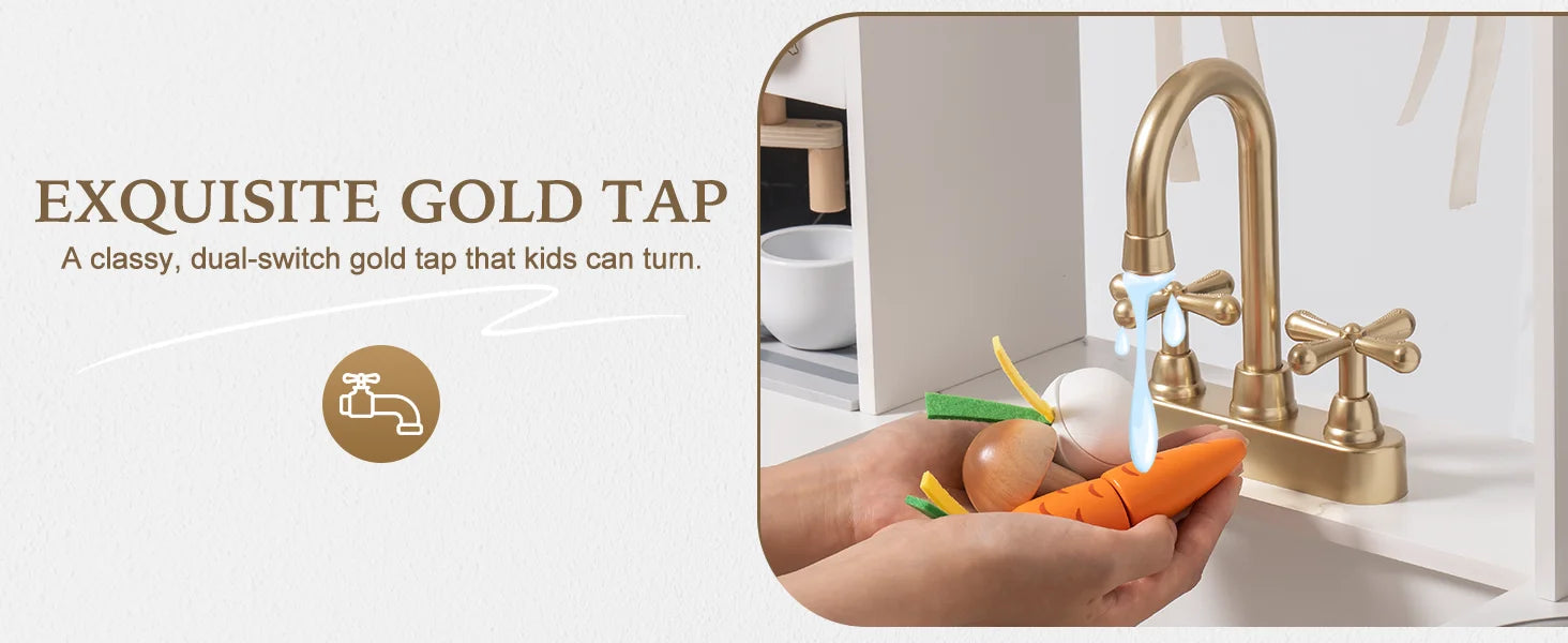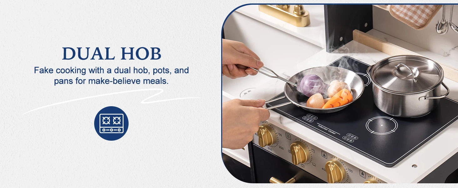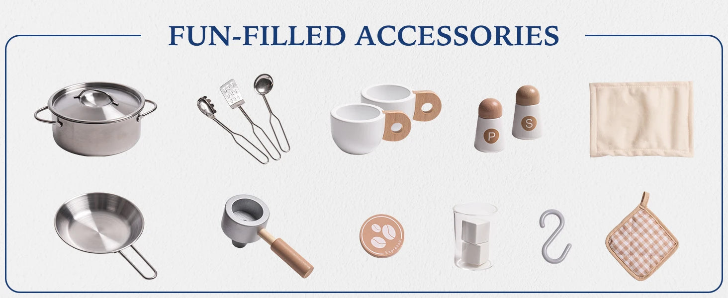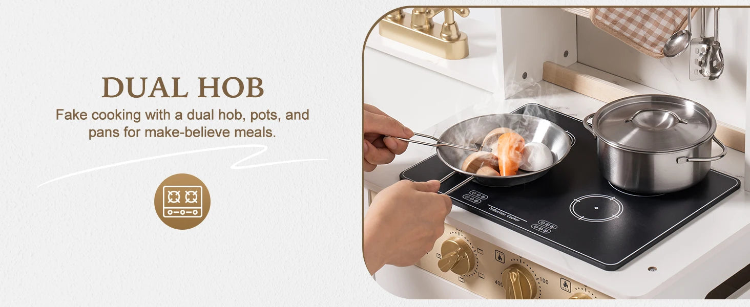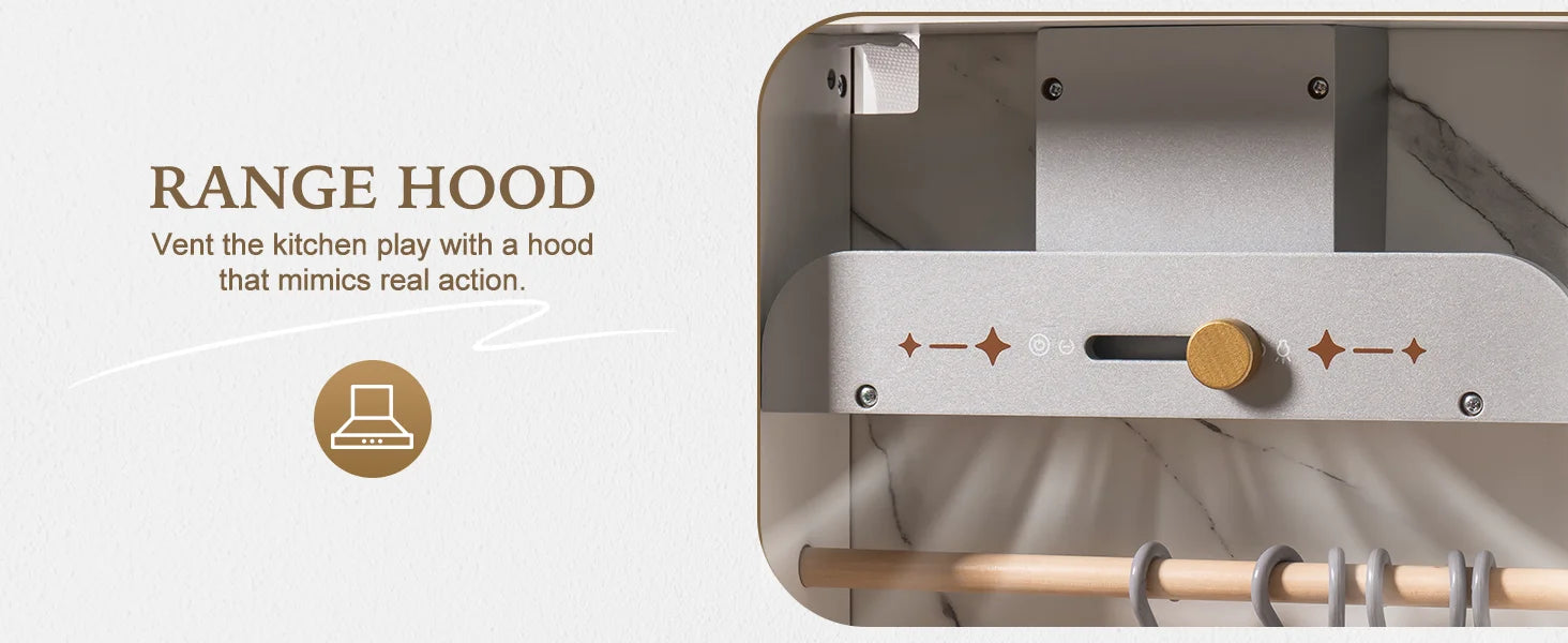 ROBOTIME Wooden Play Kitchen Toy Kitchen Set with Ice Maker and Coffee Machine Realistic Kitchen Set Gift for Toddlers