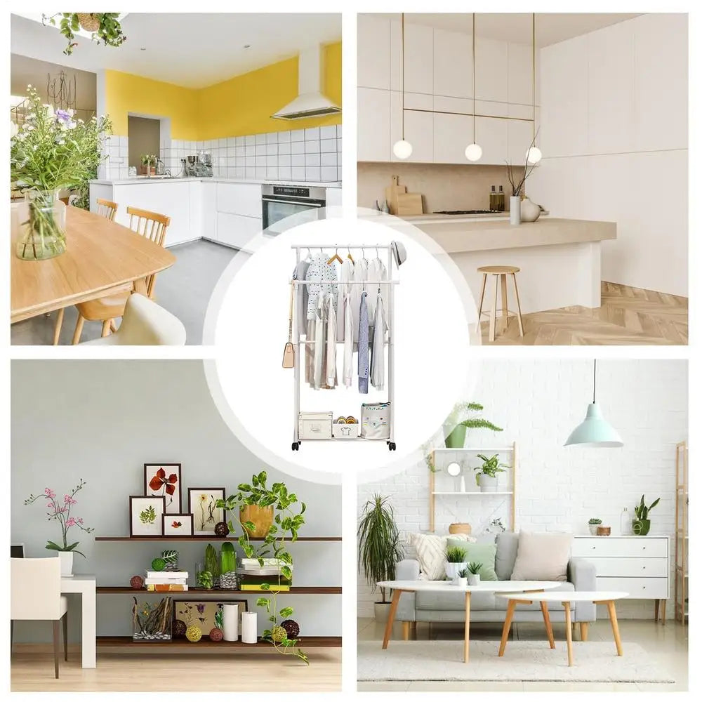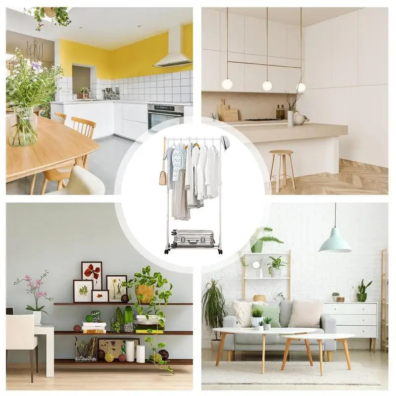 Rolling Garment Rack Metal Clothes Rack On Wheels Closet Organizers And Storage Multi-Functional Wardrobe Space Saver For