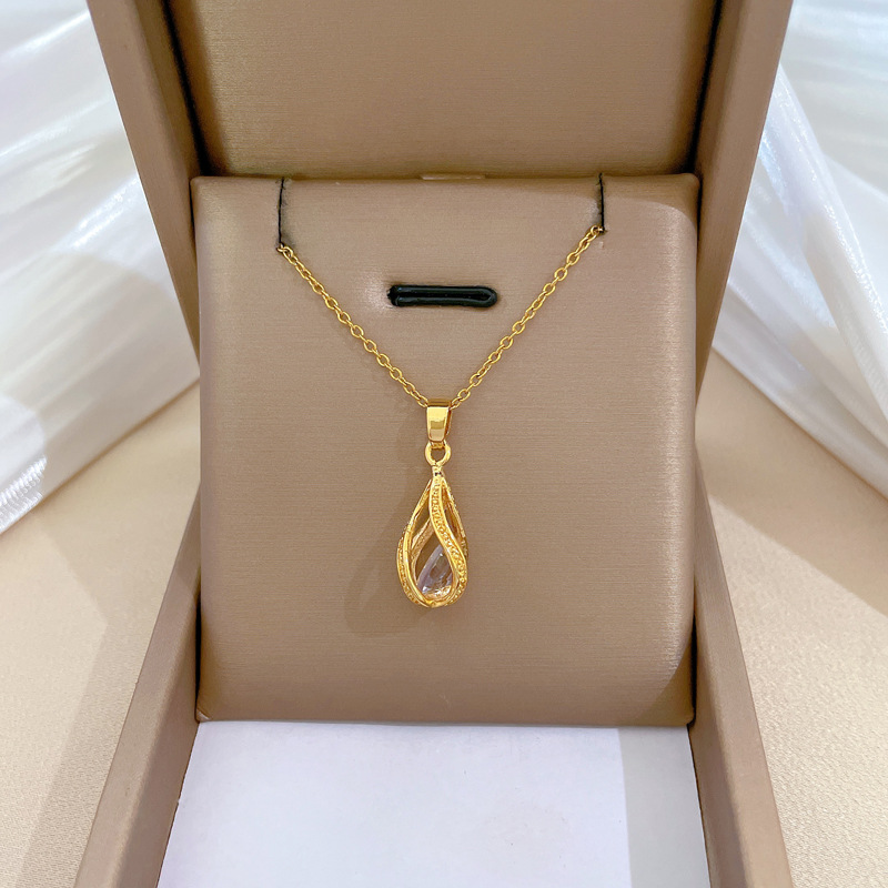 Color: C107 Titanium-Steel Chain with Copper Micro-Inlay Pendant