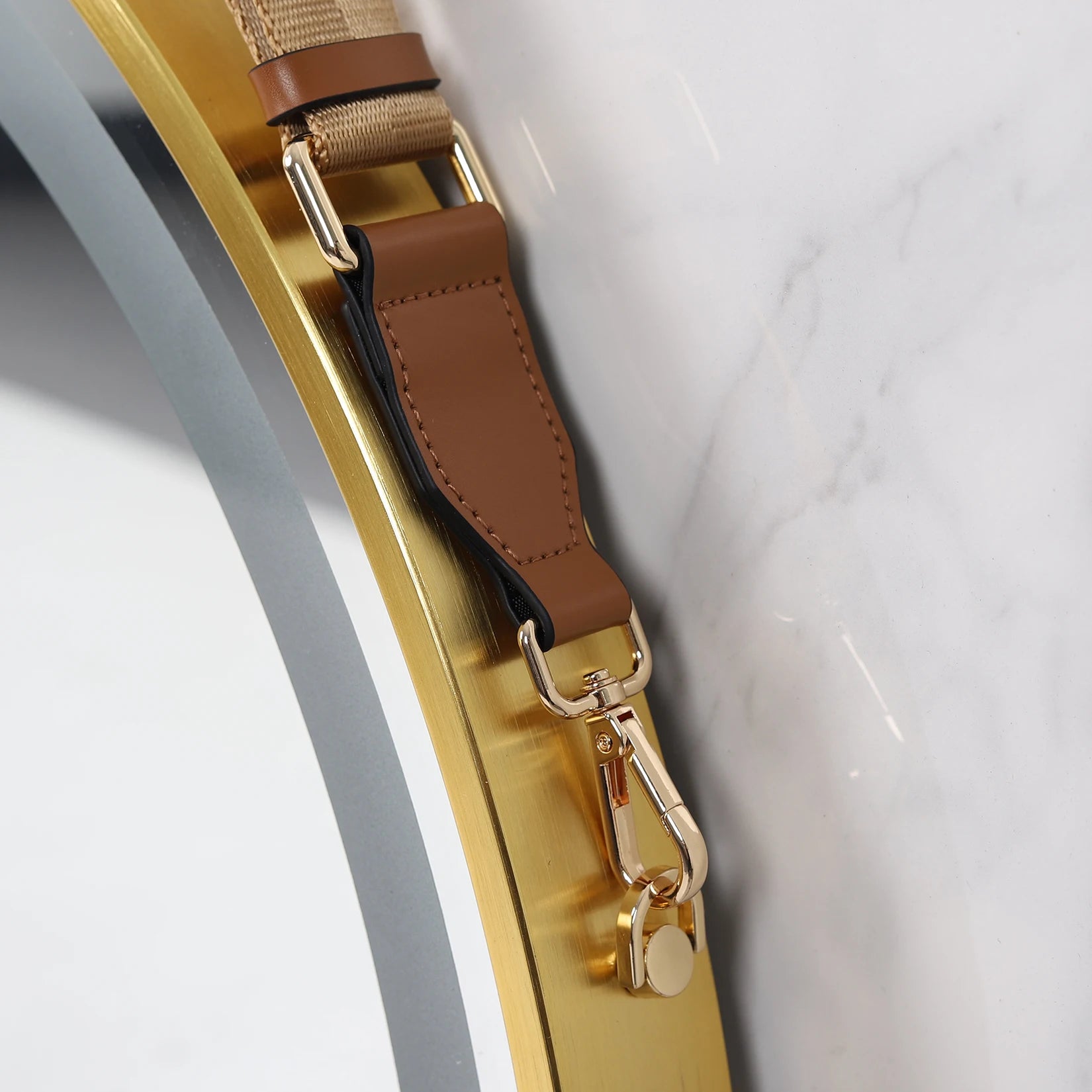 Round LED Illuminated Bathroom Mirror Hanging Wall Vanity Mirror Demister Dimmable Aluminum Fram HD Glass