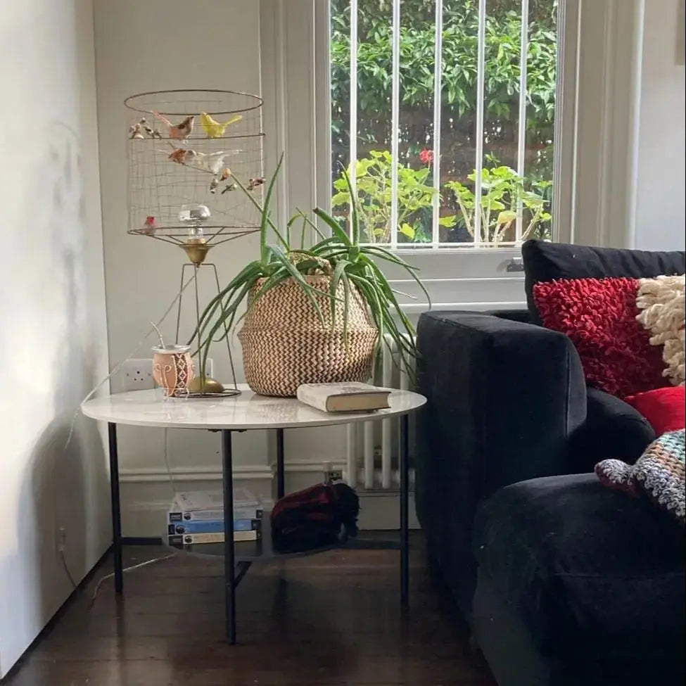 Round Marble Coffee Table, 2 Tier, Sofa Side End Table, Nightstand, Open Storage, Living Room Decor, Center Table, 32"
