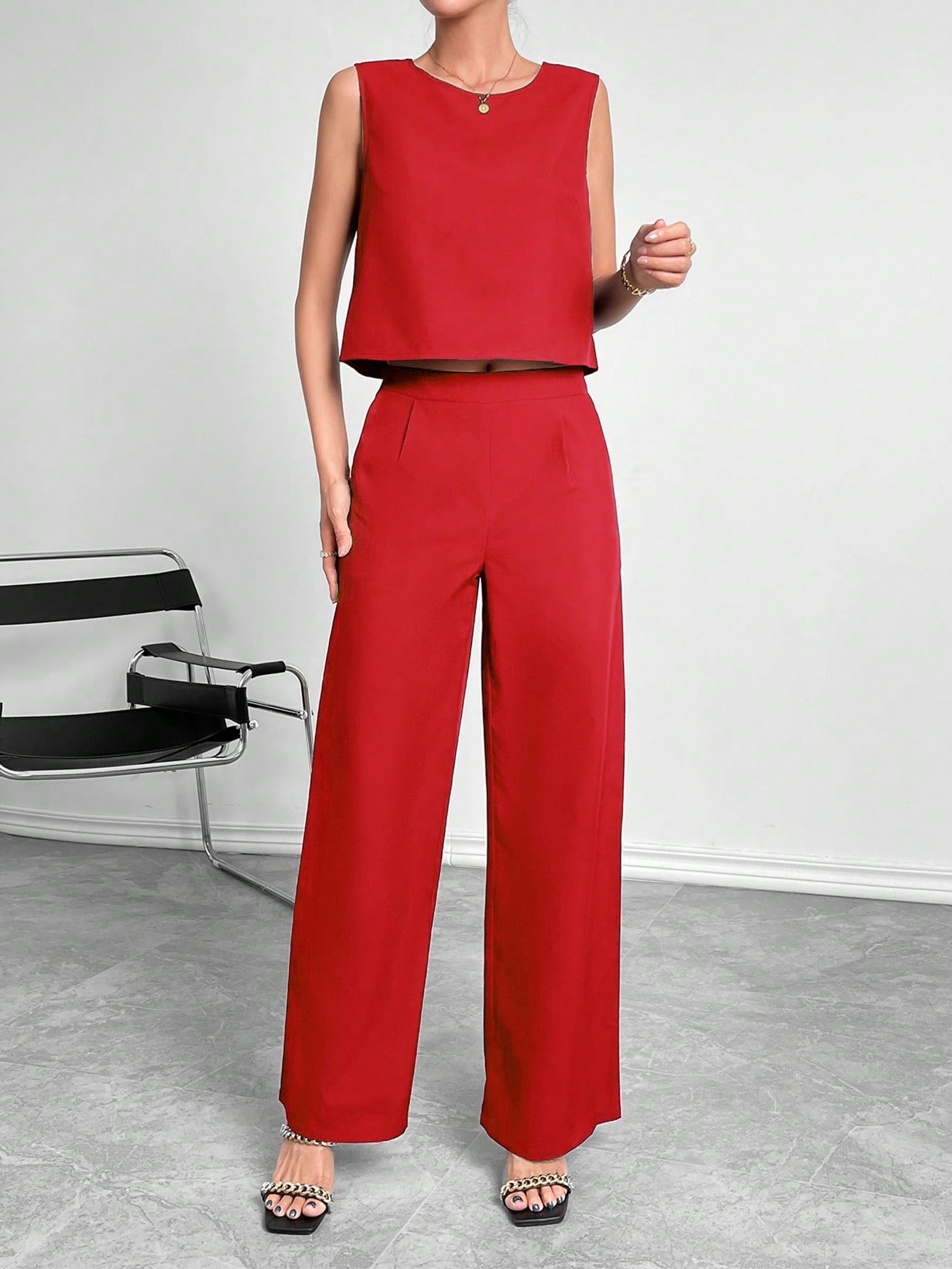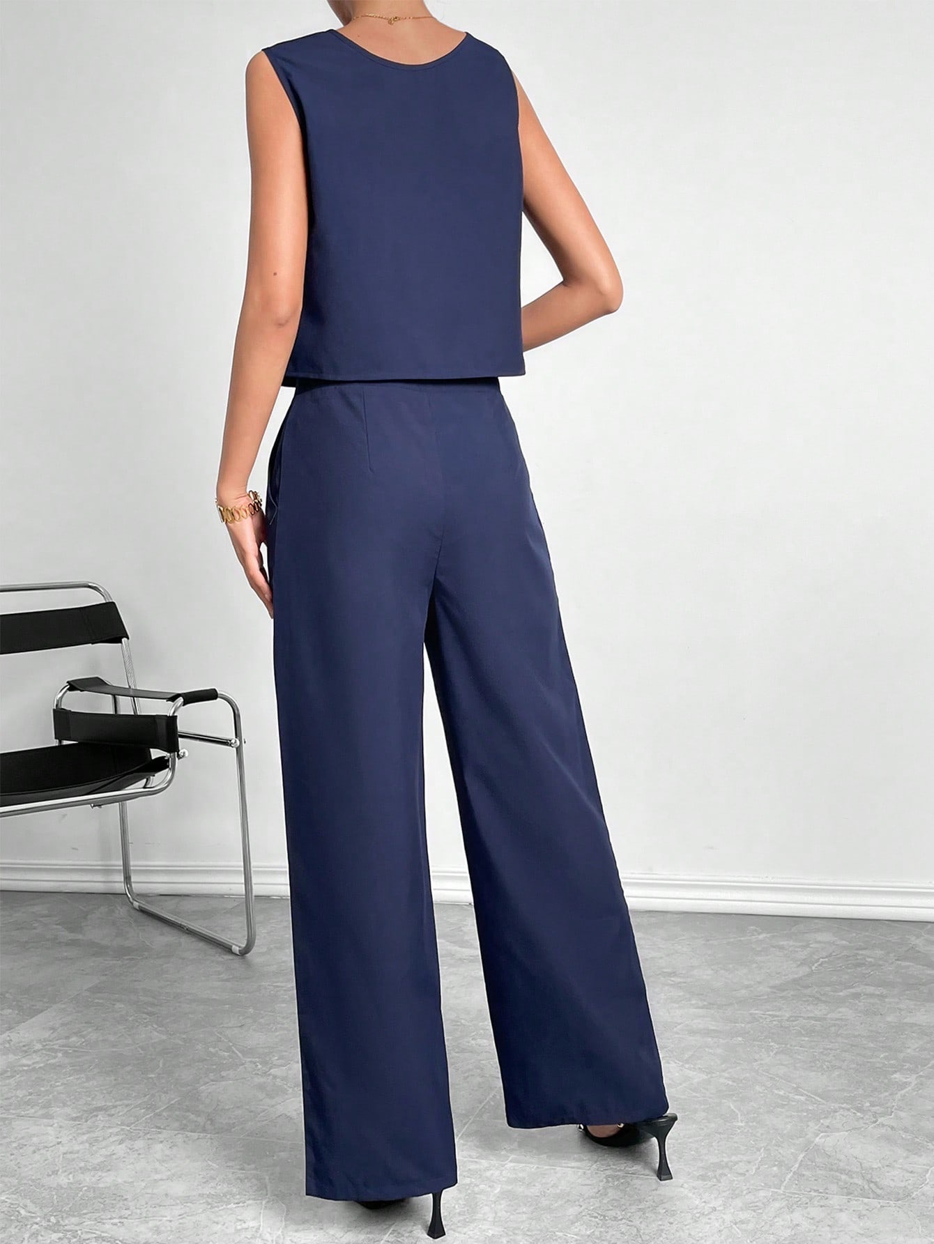 Round Neck Sleeveless Top Wide Leg Pants Two-piece Set