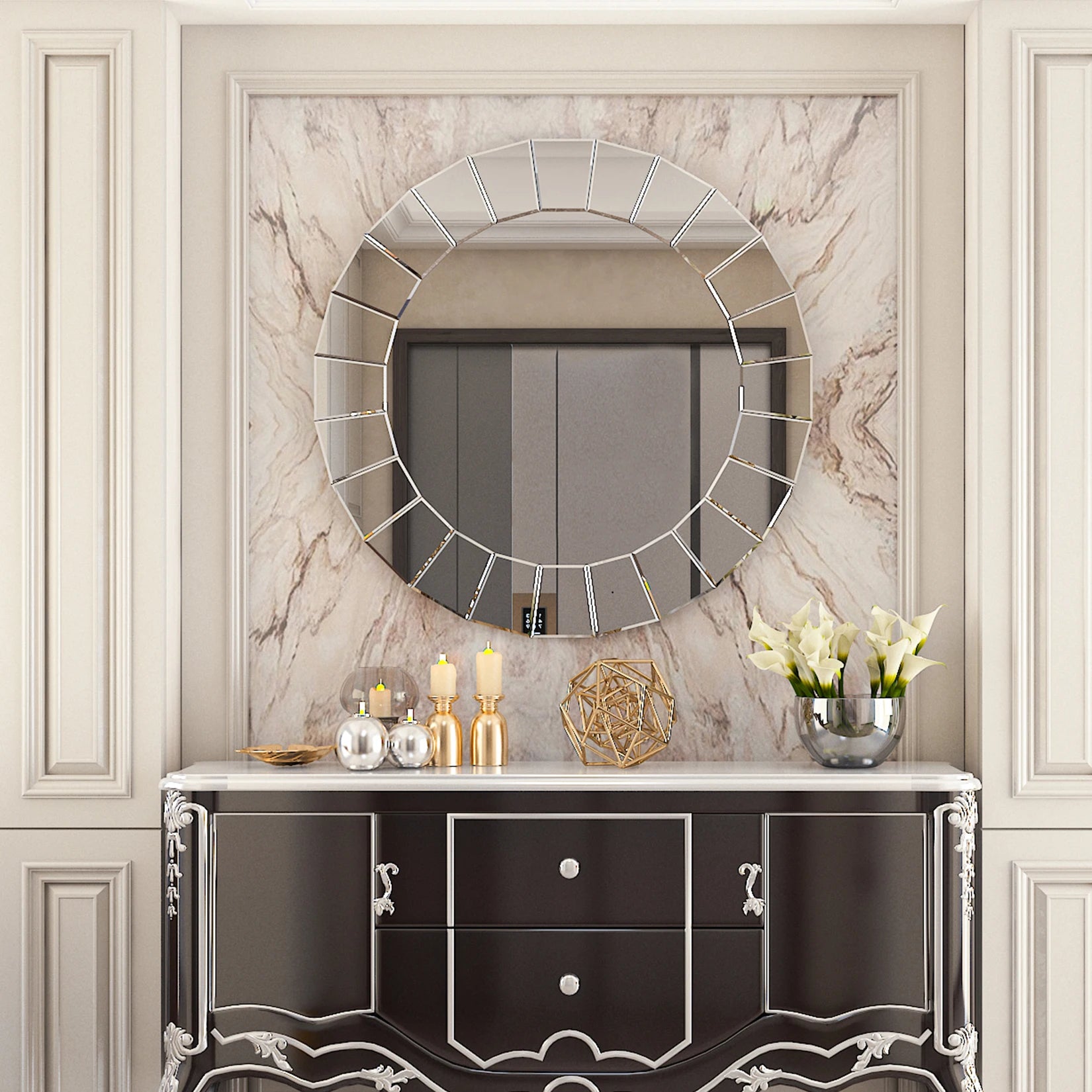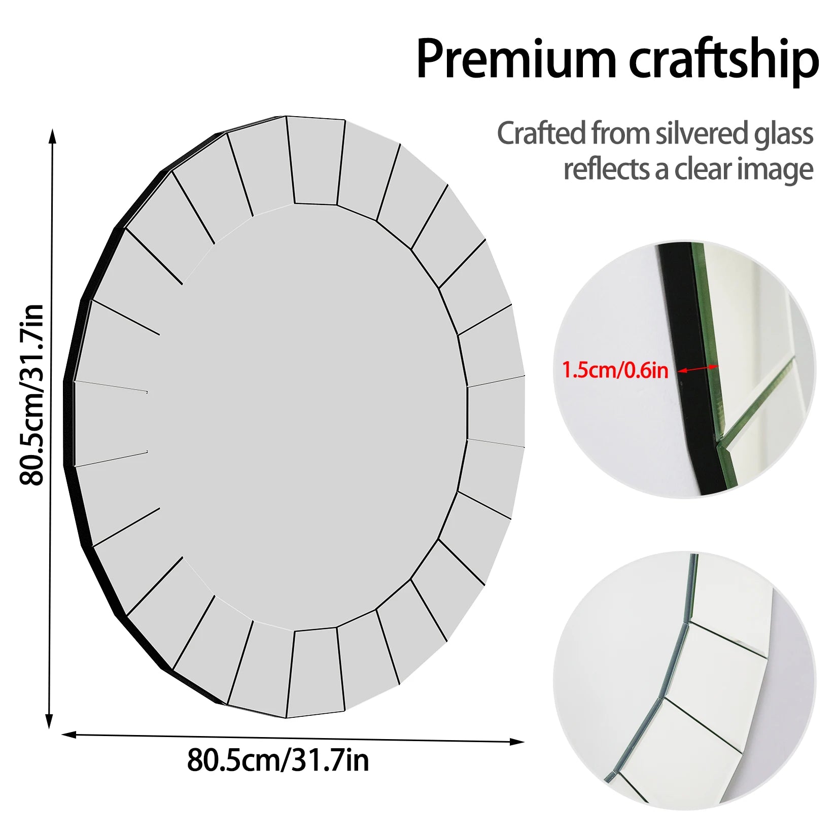 Round Silver Wall-mounted Mirrors for Hallway Living Room, Large Mirrors, Venetian Ornate Art Decor, 80cm