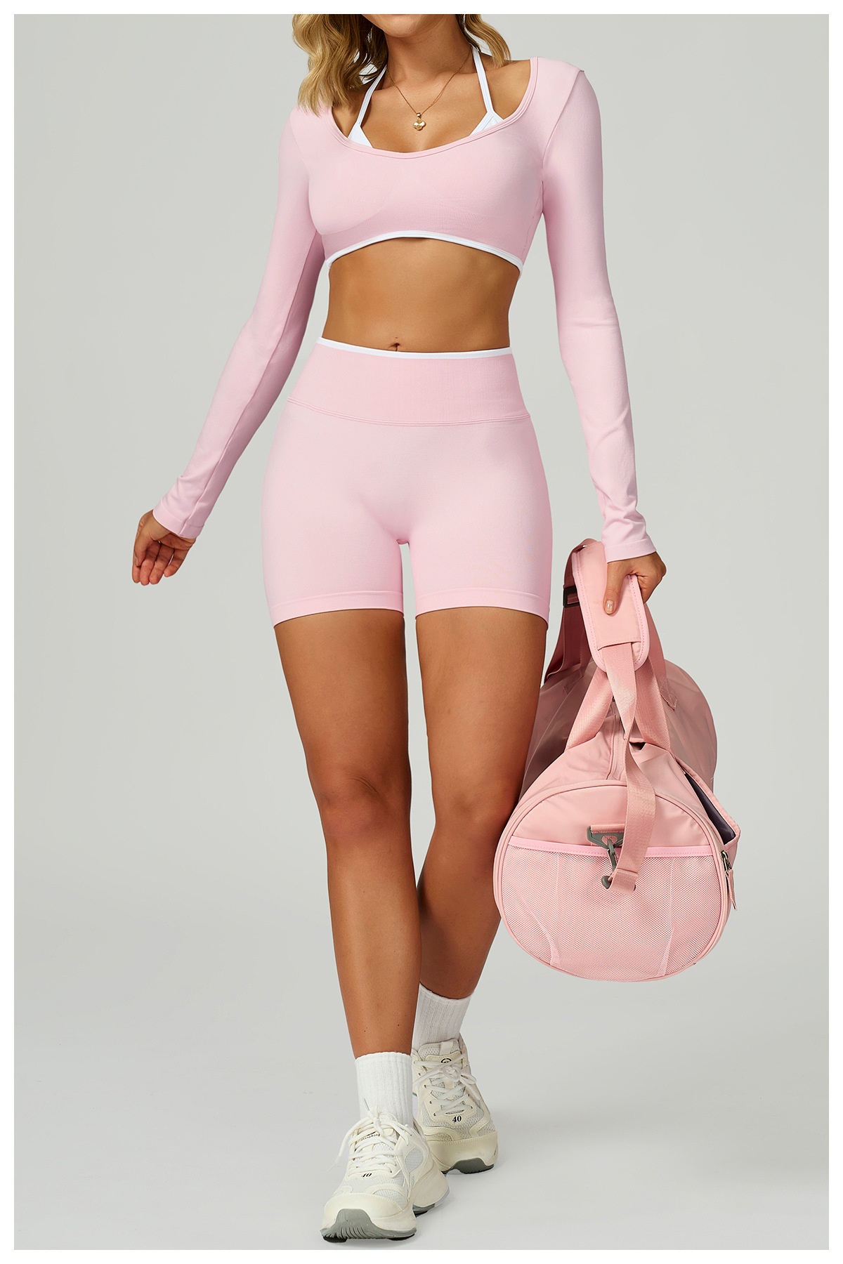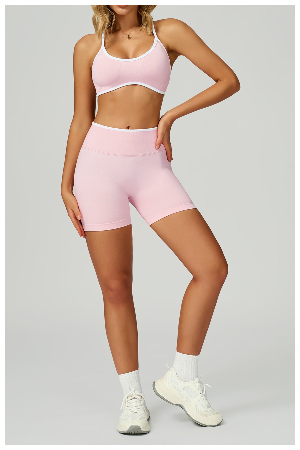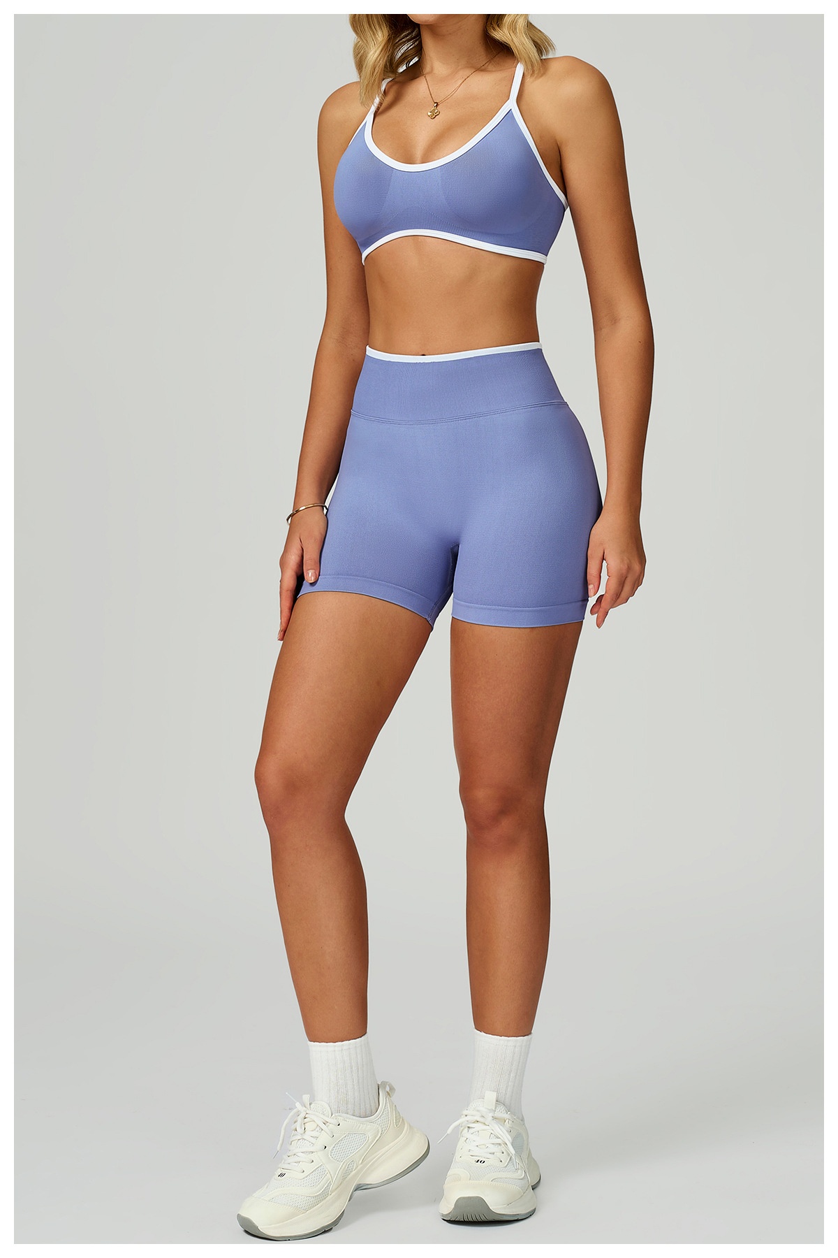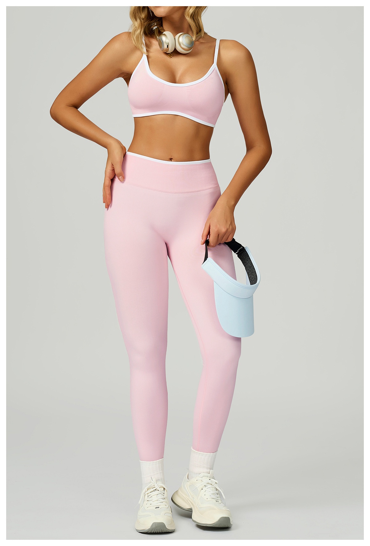 Seamless Color-blocking Yoga Set With Hollow Back And High-waist Fitness Wear