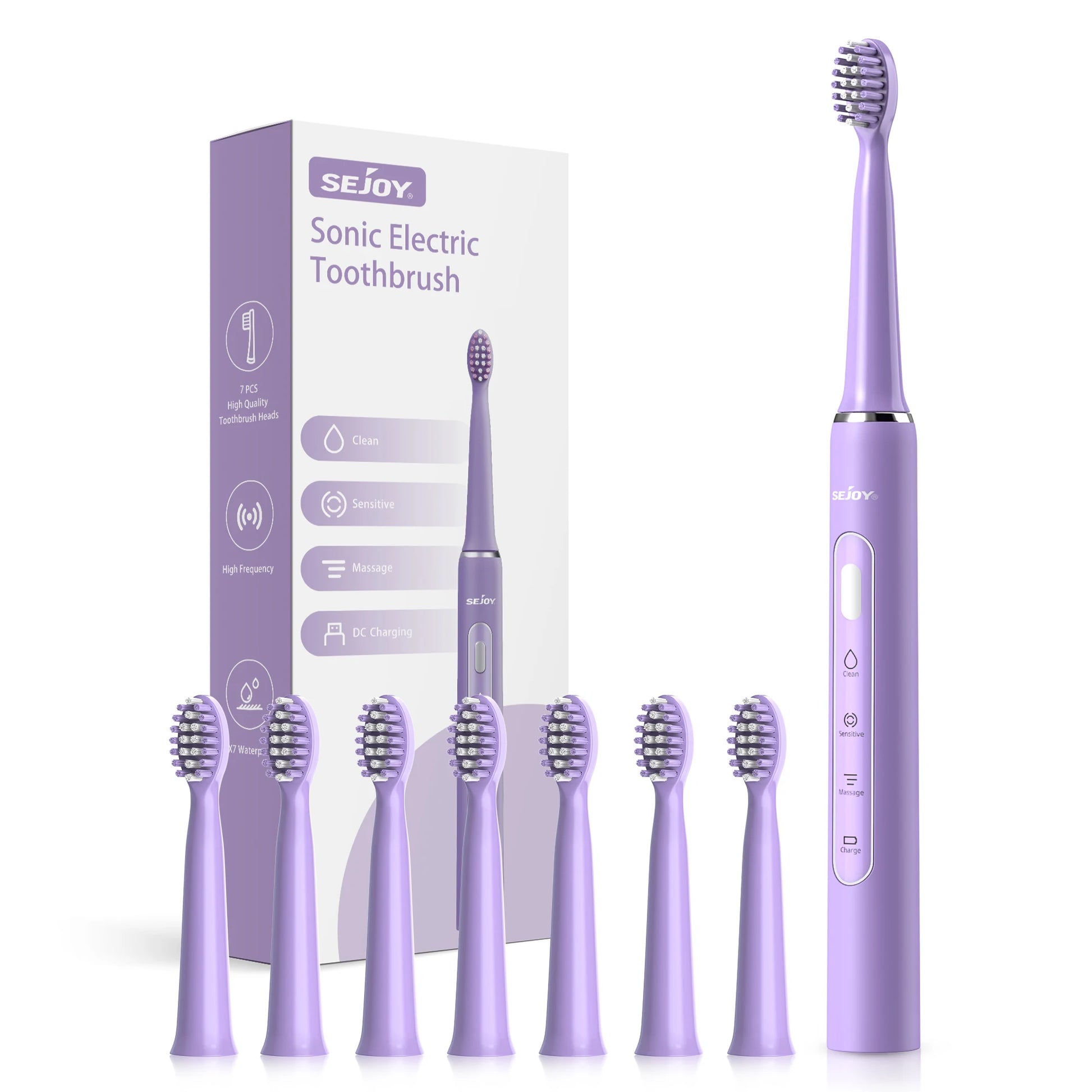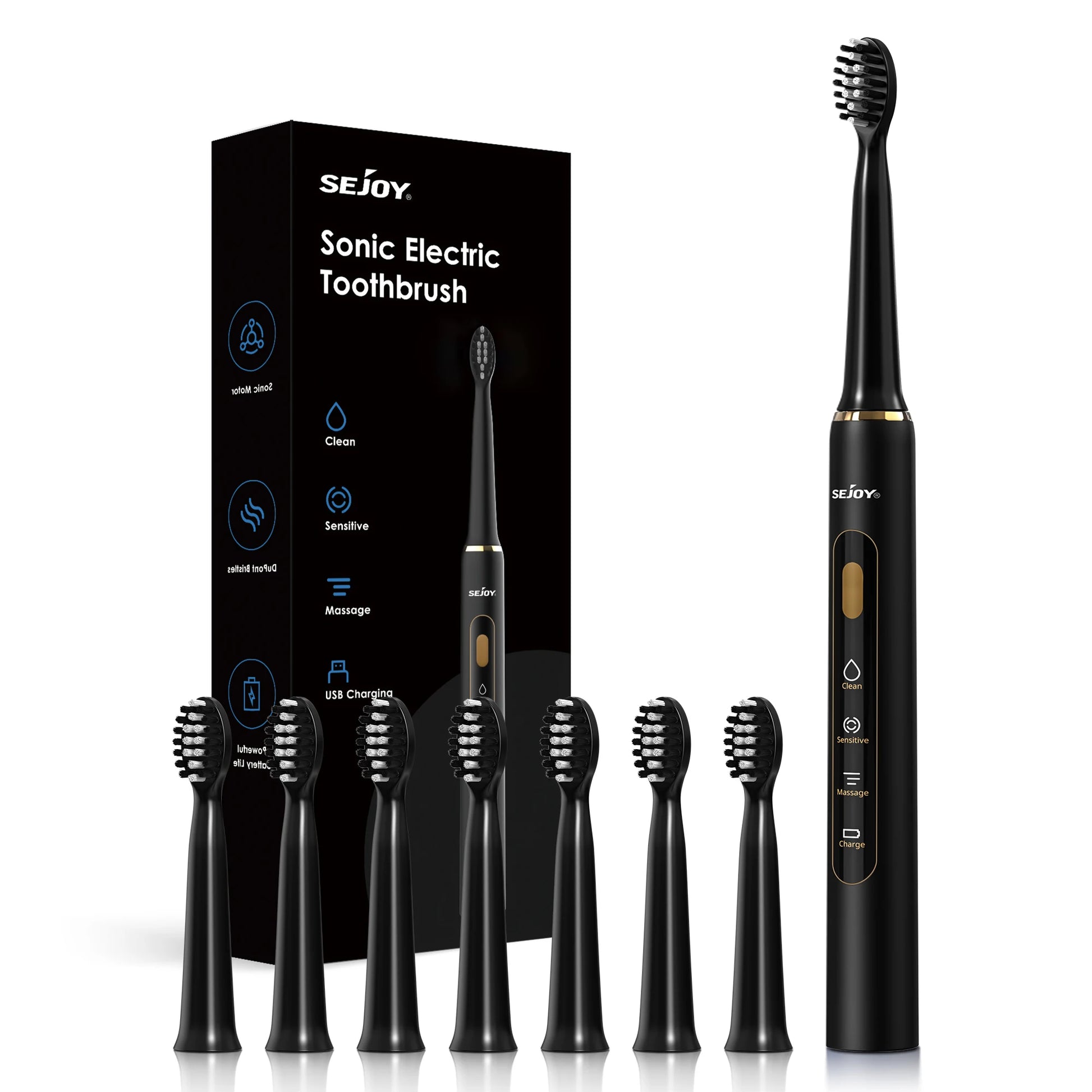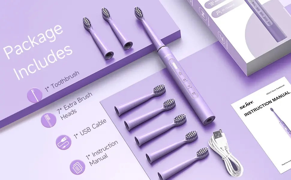 SEJOY Electric Sonic Tooth Brush for Adult USB Rechargeable Electric Toothbrush Washable with 7 pcs Replacement Heads